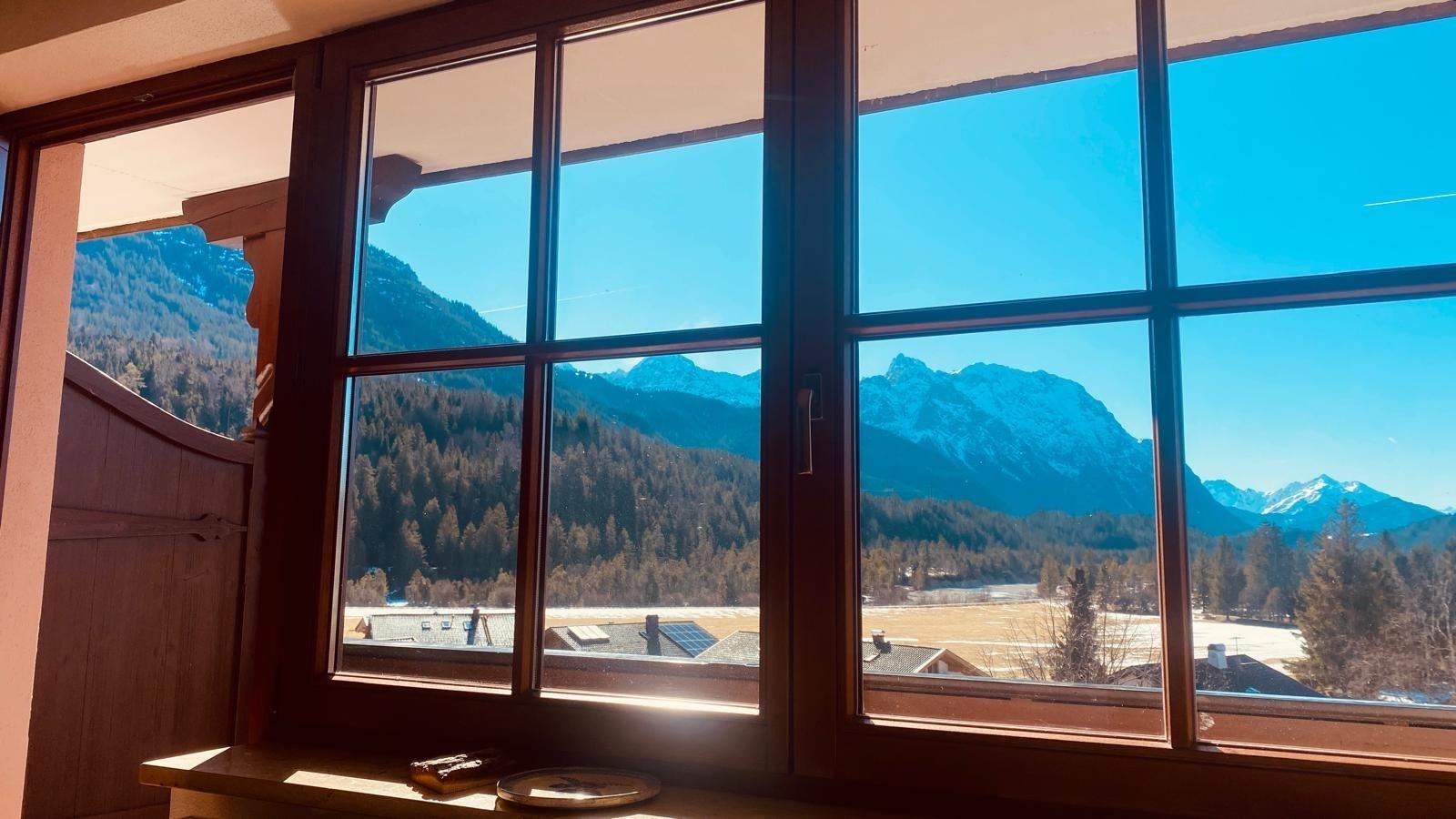 "Hier bekommst du den Bergblick, den andere nur als virtuellen Hintergrund haben. Balkon, Sonne, Ruhe – und das alles in echt. Warnung: Rückkehr in den Alltag erschwert!"