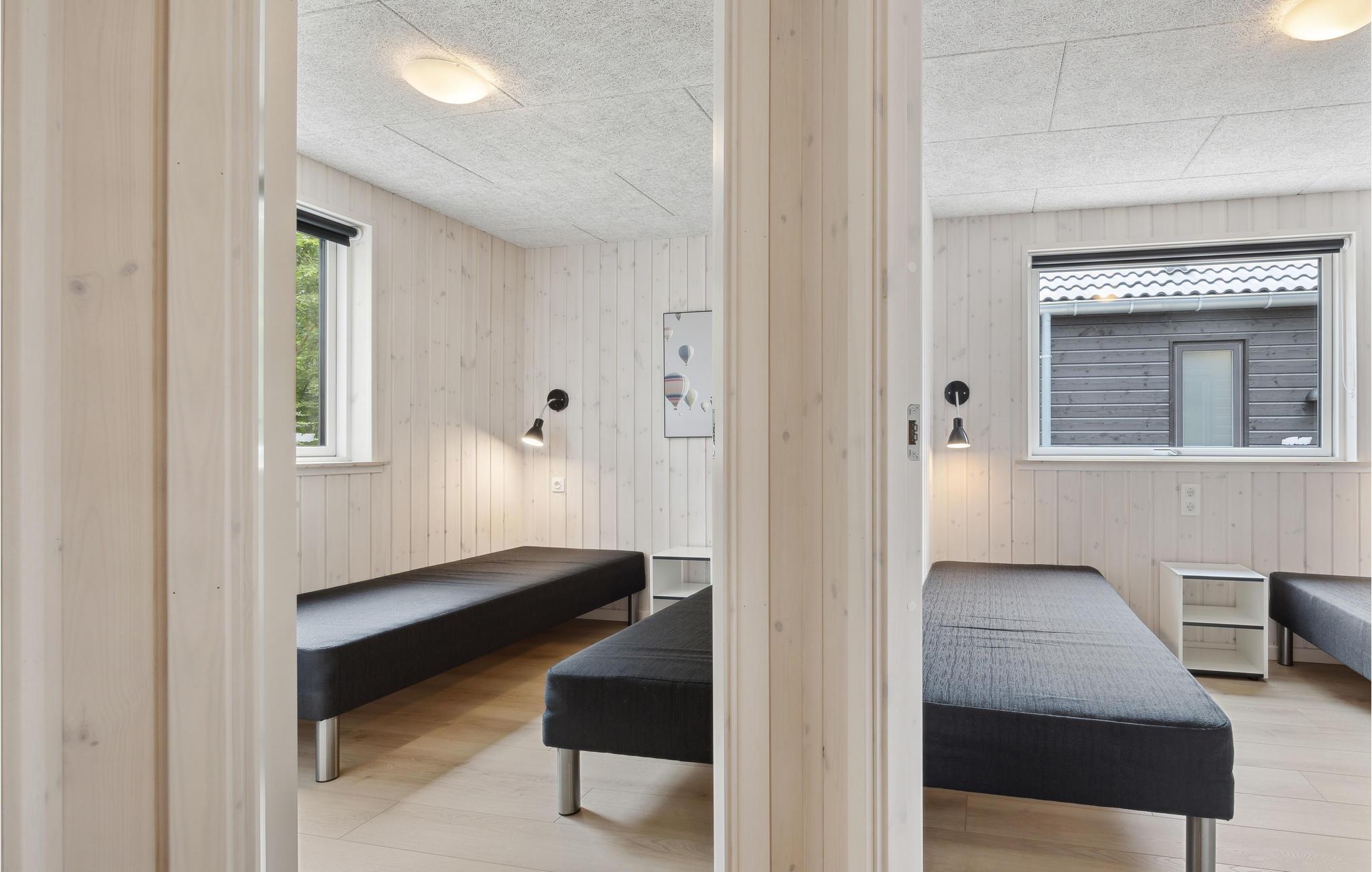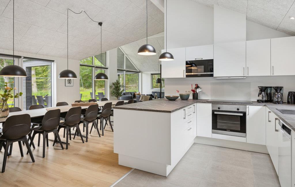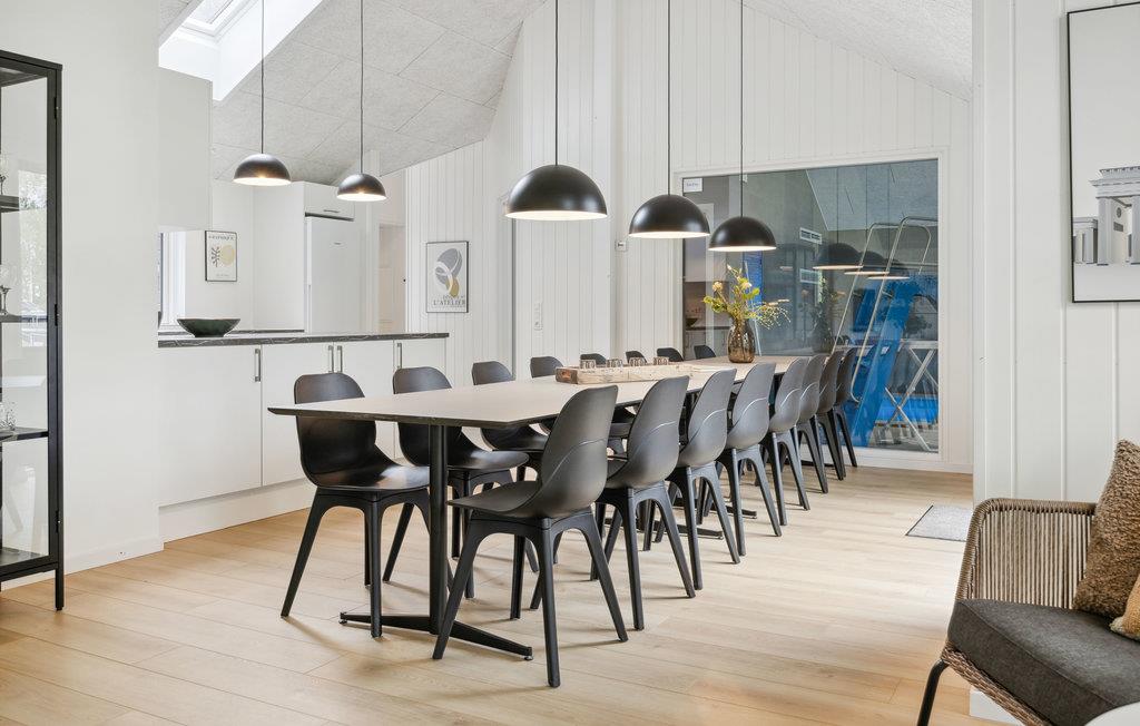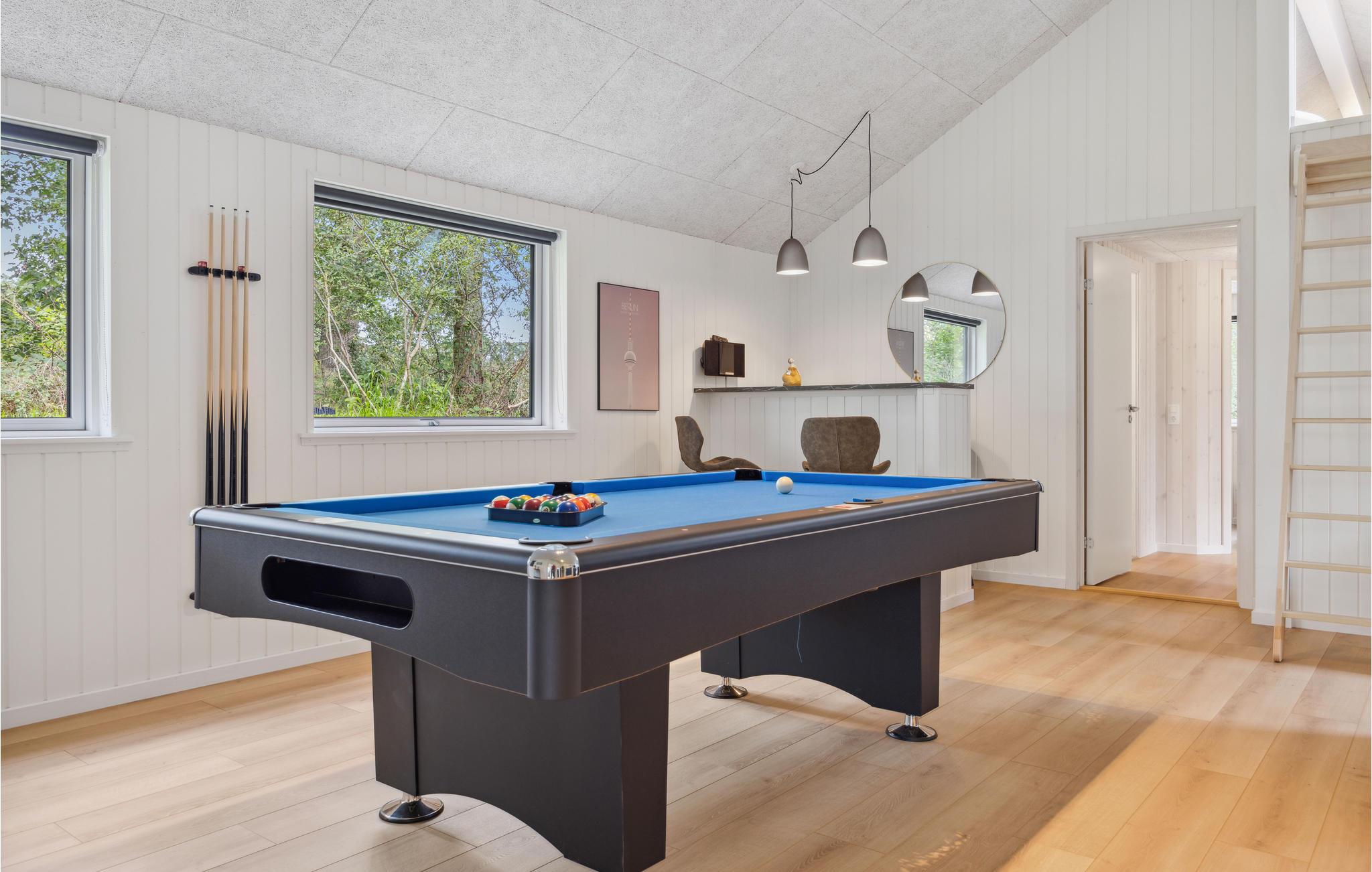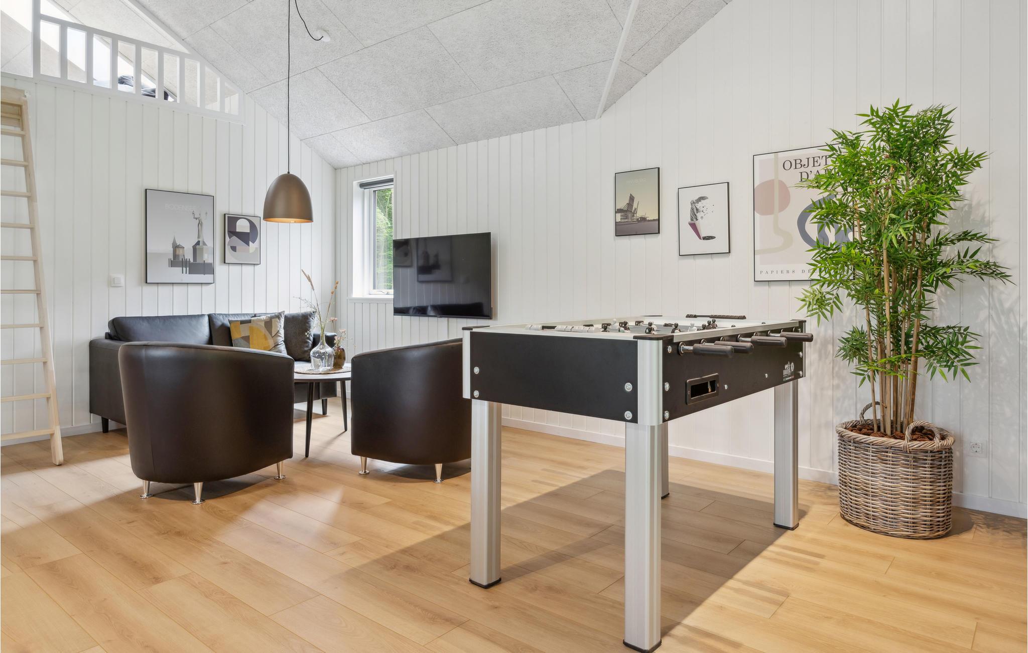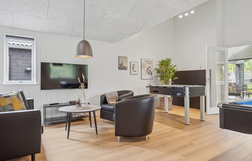 Dette moderne feriehuset ligger i en liten feriehuslandsby i nærheten av Krakow am See og ikke langt fra Krakowsjøen. Det har et lyst interiør av høy kvalitet og mange komfortable og familievennlige fasiliteter. Husets midtpunkt er den vakre stuen med åpen kjøkkenløsning og plass til å lage mat sammen. Deretter kan dere nyte deilige måltider sammen ved det store spisebordet. Utfordre hverandre i bordtennis, bordfotball eller dart i aktivitetsrommet, og nyt en kald forfriskning i baren innimellom. Det vakre bassenget med vannsklie innbyr til timevis med moro for store og små. Eller nyt en massasje i det store boblebadet for 6 personer og slapp deretter av i din egen badstue. Huset har seks soverom og en hems med fire madrasser, som er spesielt egnet for barn som ønsker å finne seg til rette der. De tre badene kompletterer tilbudet og gjør huset svært godt egnet for flere familier eller venner.