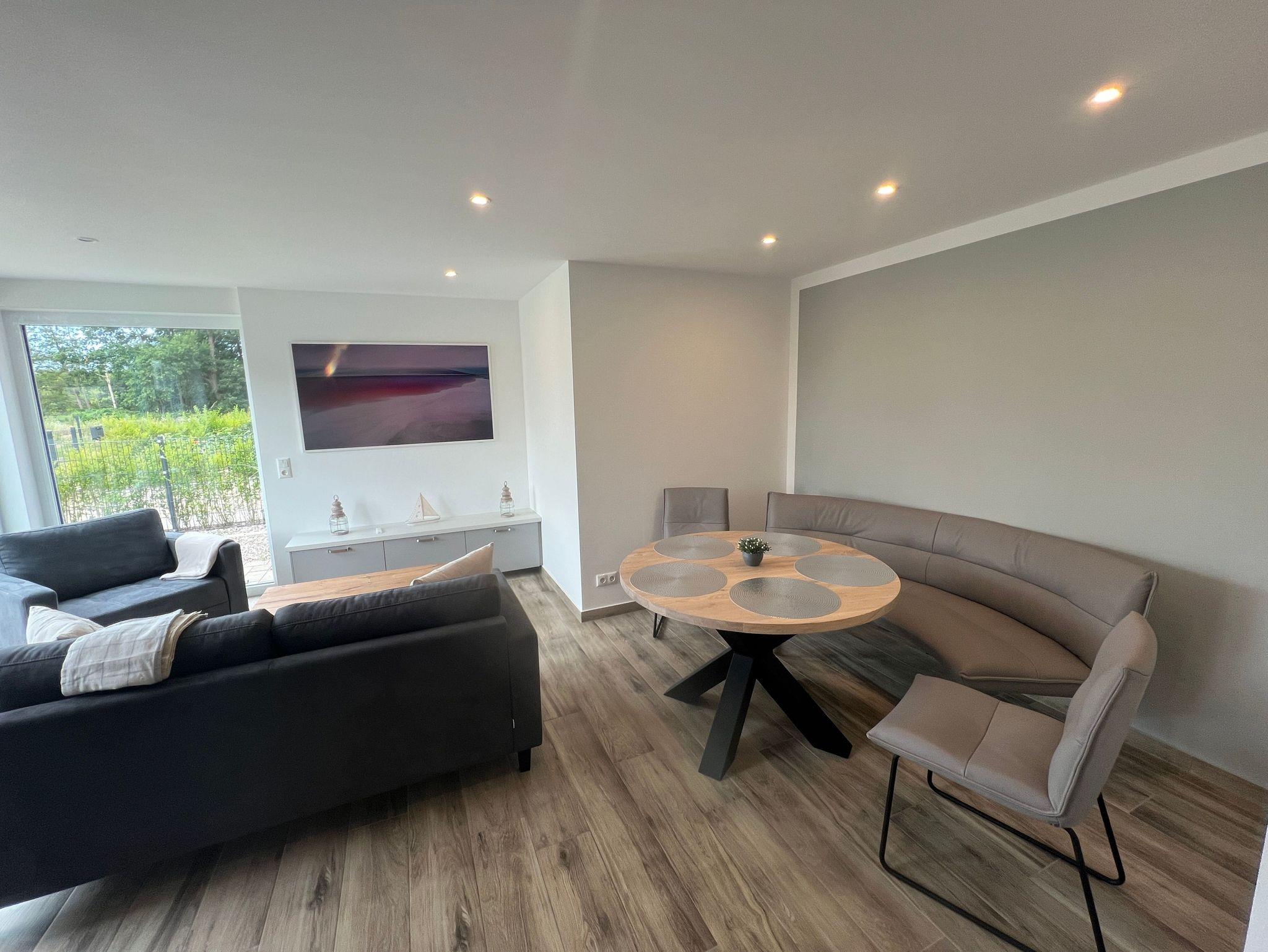 Dreh- und Angelpunkt des Ferienhauses ist der offen gestaltete Wohn- und Essbereich mit angeschlossener Küche. Die lichtdurchfluteten Räumlichkeiten sind farbschematisch hell gehalten und mit modernem Mobiliar eingerichtet. Gerade nach langen, aktivitätsreichen Tagen kommt man gerne nach Hause zurück und kann den Abend in guter Gesellschaft ausklingen lassen.