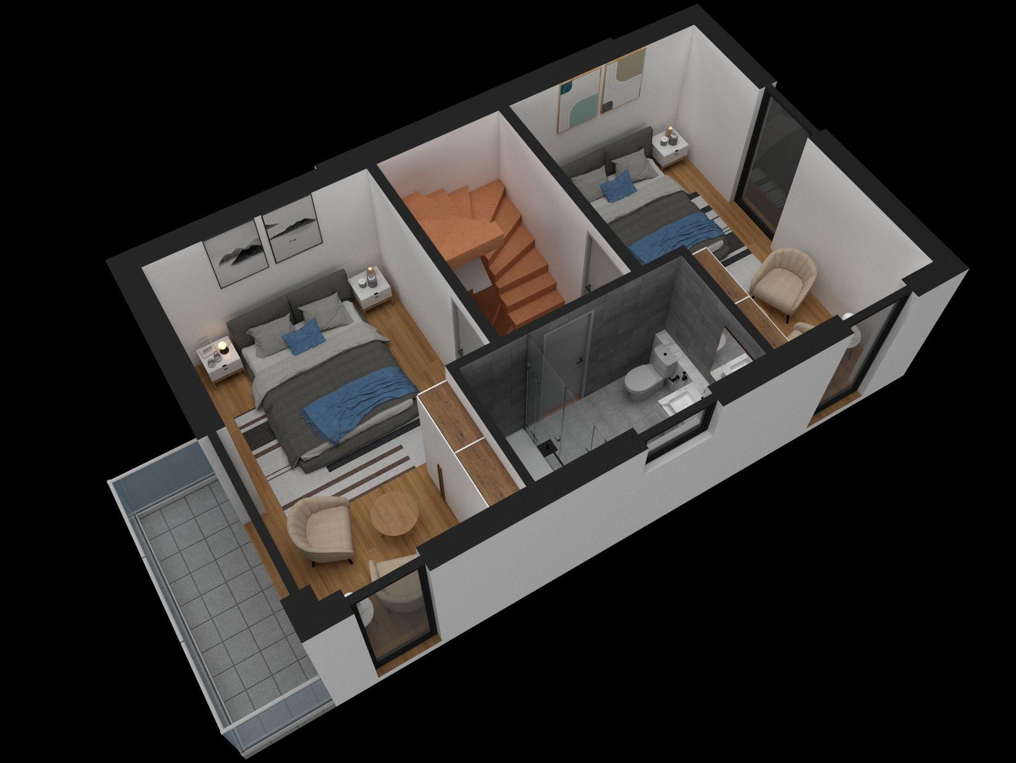 Ein Badezimmer mit ebenerdiger Dusche und der Hauswirtschaftsraum befinden sich ebenfalls im Erdgeschoss. Über eine Treppe gelangt man in das Obergeschoss. Die Schlafzimmer verfügen über ausreichenden Stauraum für Ihre Garderobe und einen kleinen Balkon auf der Westseite. Elektrische Rollläden helfen dabei, seligen Schlaf zu finden.