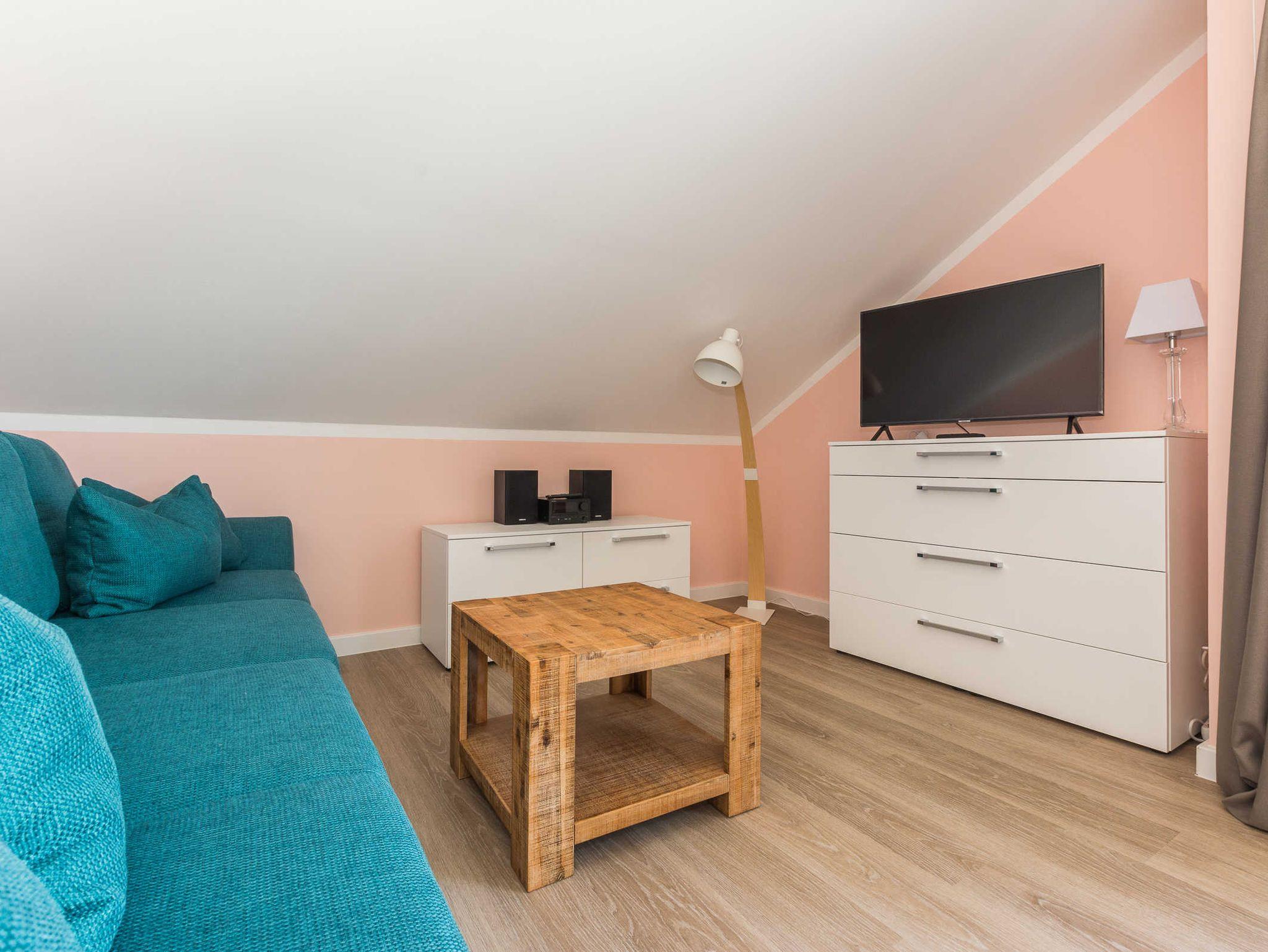 Dachschrägen verleihen den Schlafzimmern eine besonders gemütliche Atmosphäre. Beide Schlafzimmer sind mit jeweils einem hochwertigen Boxspringbett und Fernseher ausgestattet. Sie werden himmlisch schlafen.