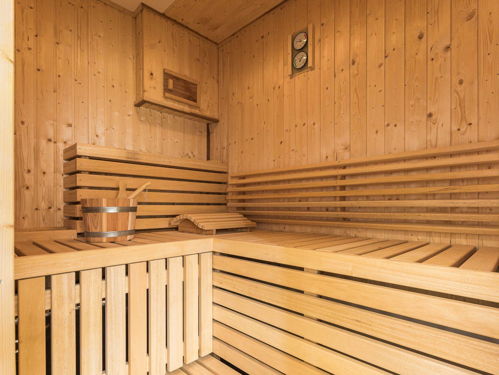 In der hauseigenen Sauna sind erholsame Stunden vorprogrammiert. Hier können Sie nach Herzenslust die Seele baumeln lassen. Das angrenzende Badezimmer ist mit einer Badewanne und einer verglasten Walk-in-Raindance-Dusche ausgestattet.