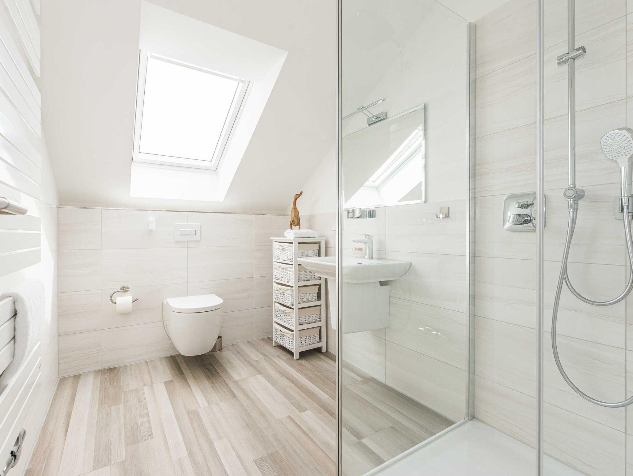 Tageslichtfenster, ebenerdige Wellnessdusche, WC, Waschtisch