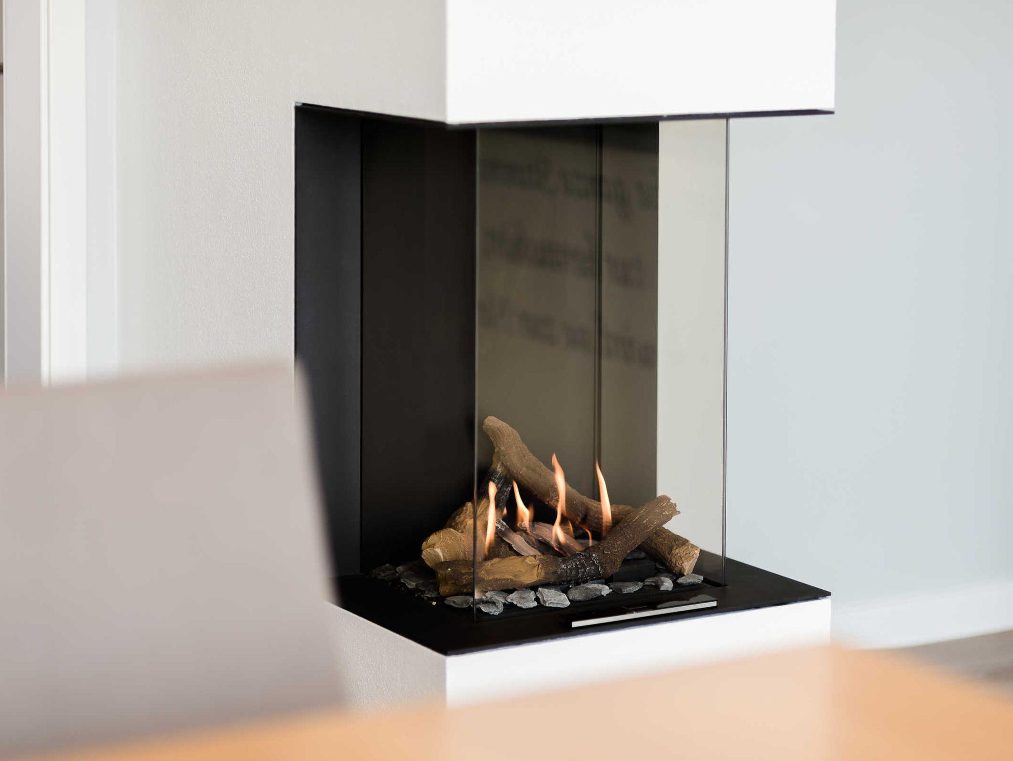Ein hochwertiger Gaskamin im Wohnbereich, den Sie bequem vom Wohlfühlsofa aus per Fernbedienung bedienen, sorgt für zusätzliche regulierbare Wärme zur Fußbodenheizung in allen Räumen des Erdgeschosses.