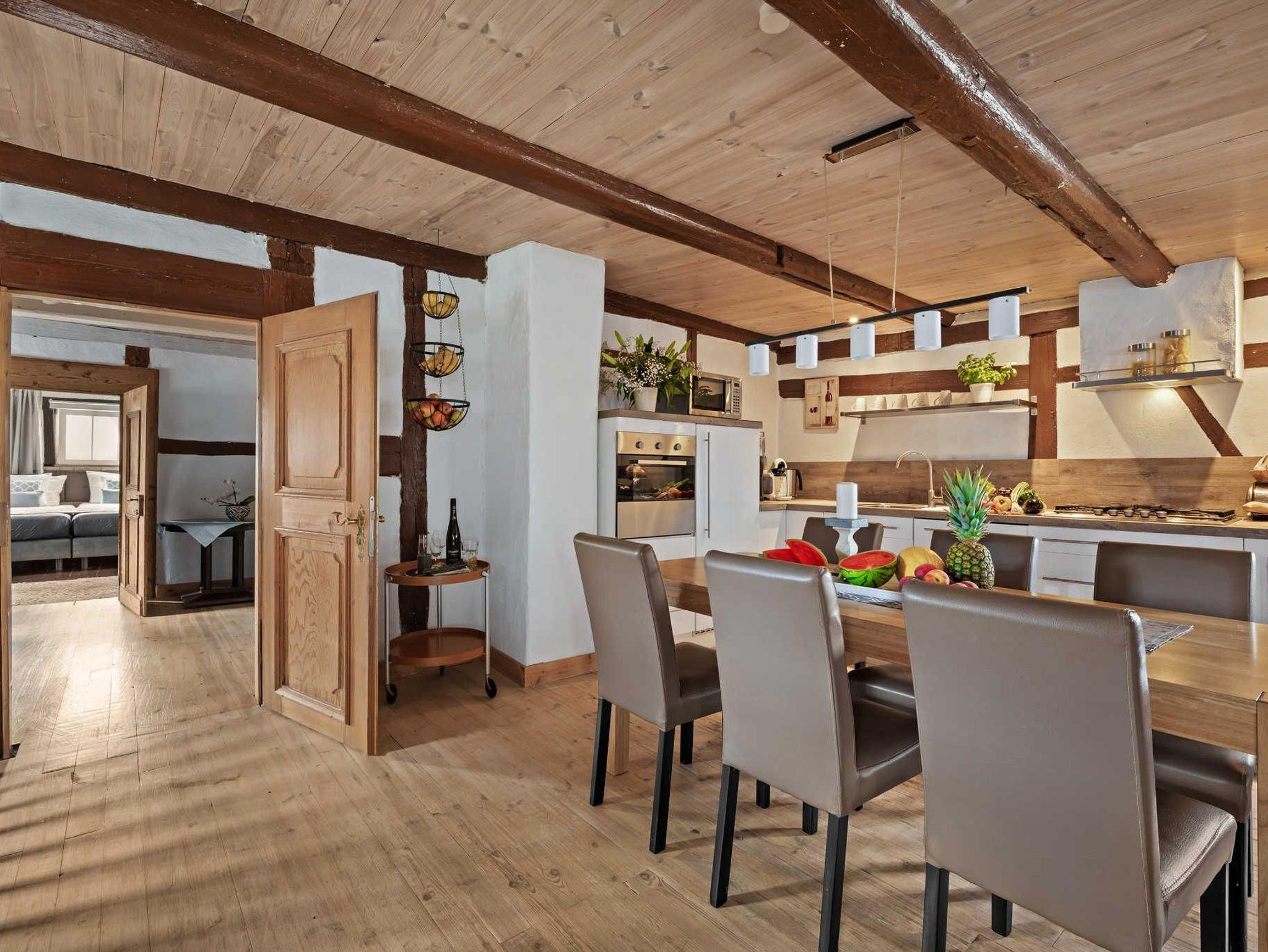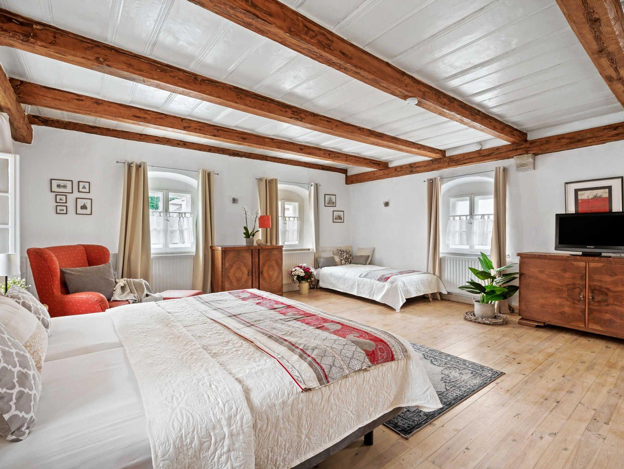 Das romantische Landhaus, gelegen in einem historischen Dreiseitenhof, bietet viel Platz für Urlaub mit Freunden oder Familie. Das Landhaus umfasst 150 m² auf zwei Etagen. Die Küche ist vollausgestattet mit einem Herd, Geschirrspüler, Backofen und ausreichend Kochutensilien. Die großzügigen Schlafzimmer sind komfortabel und modern eingerichtet. In dem Wohnzimmer befindet sich ein Kamin und bietet Platz für gemütliche Abende. Ein großer Flachbildfernseher mit SAT-TV steht zur Nutzung bereit. Internet mit WLAN ist vorhanden. Zu dem Haus Anna gehört eine Terrasse im Innenhof und ein Garten mit gemütlichen Holzmöbeln und Pavillon neben dem Haus . Haustiere sind willkommen.