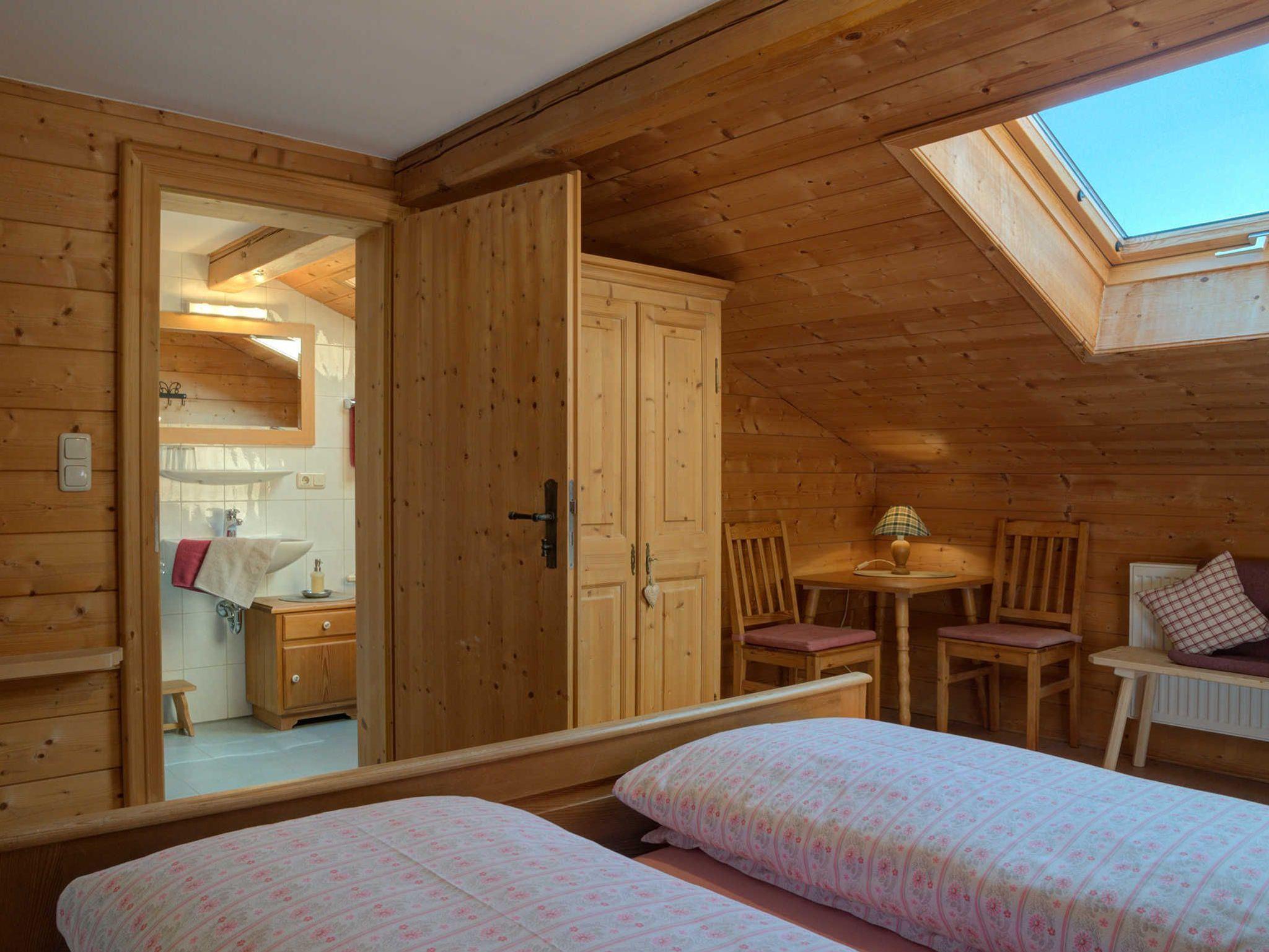 Ferienwohnung im 2. Stock mit viel Holz ausgestattet.