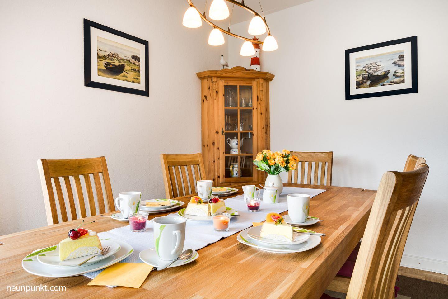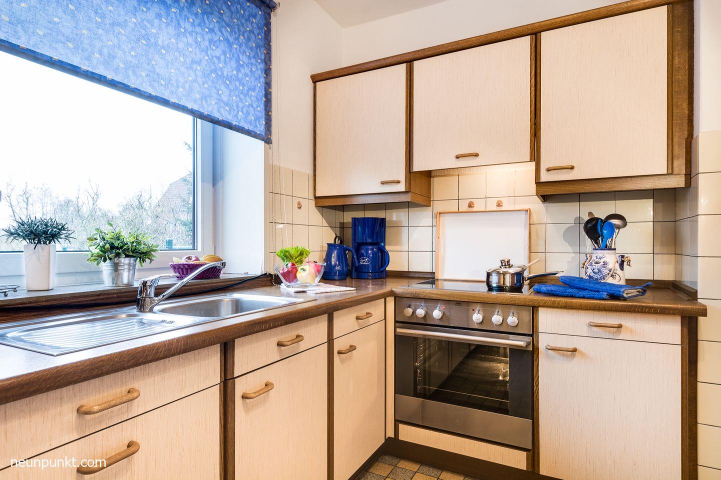 Der Wohn-/ Essraum hat einen Kaminofen für wohltuende Wärme und Behaglichkeit. Außerdem gibt es einen TV, DVD-Player, Stereoanlage und WLAN. Die Küche ist unter anderem mit einem Geschirrspüler, einer Waschmaschine und einem Backofen ausgestattet. Träumen Sie schön in den beiden Schlafzimmern: Eines ist mit einem Doppelbett (2x 90x200cm), eines mit 2 Einzelbetten (je 90x200cm) ausgestattet. Ein freundliches Duschbad komplettiert das gemütliche Ferienhaus.