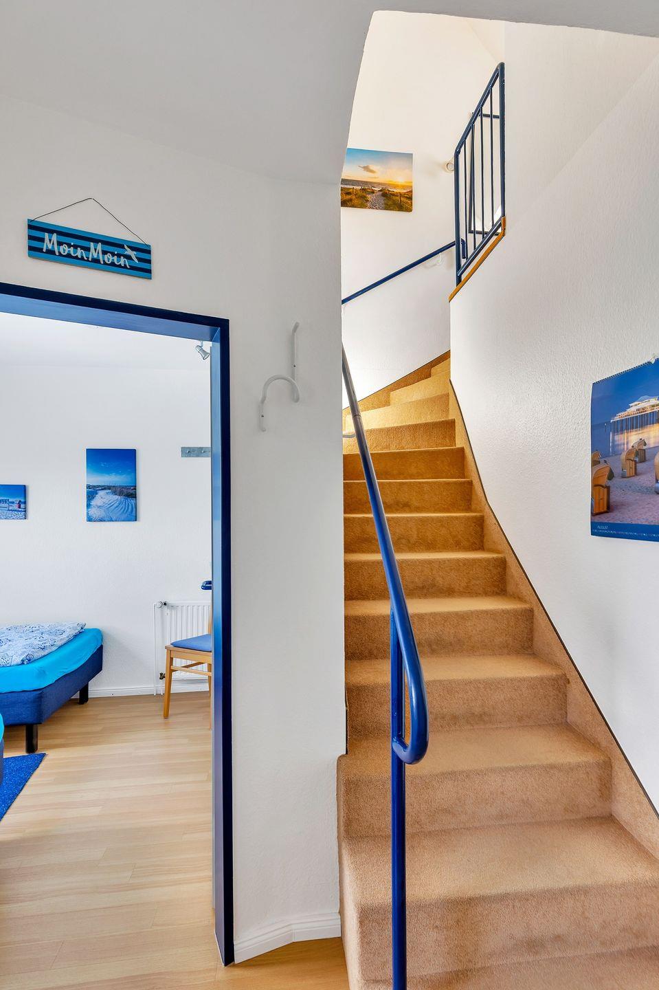 Ebenfalls auf dieser Etage befindet sich das Badezimmer, sowie ein Schlafzimmer mit zwei Einzelbetten (je 90 x 200 cm), die bequem zu einem Doppelbett zusammengeschoben werden können.