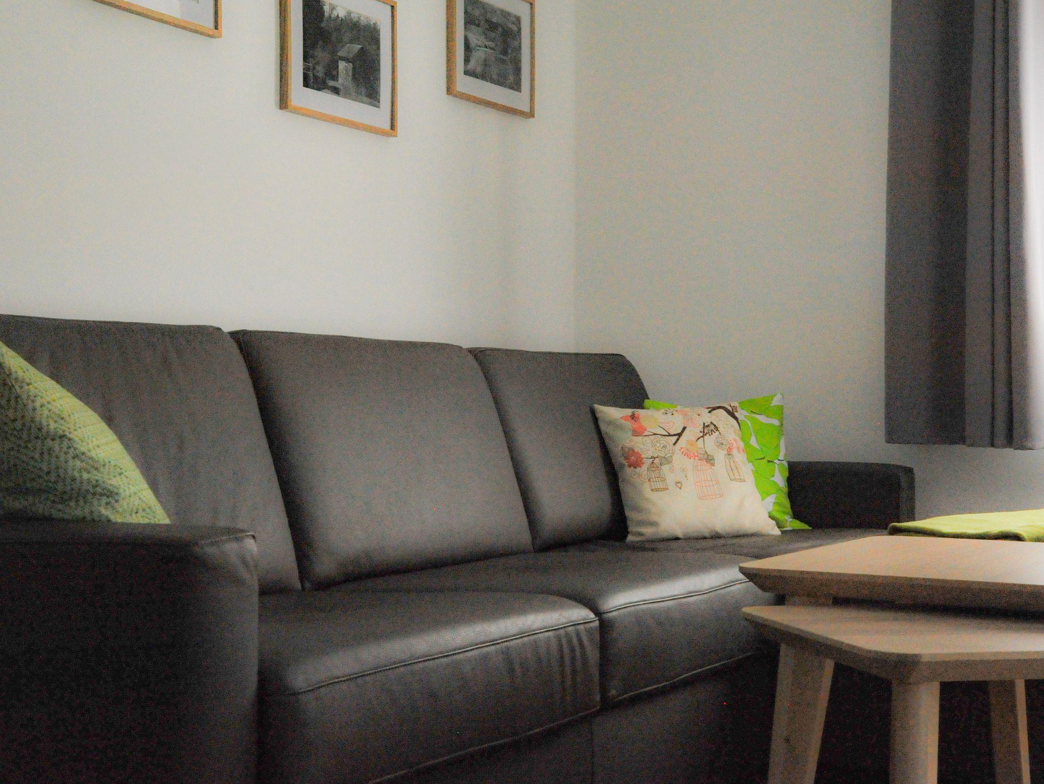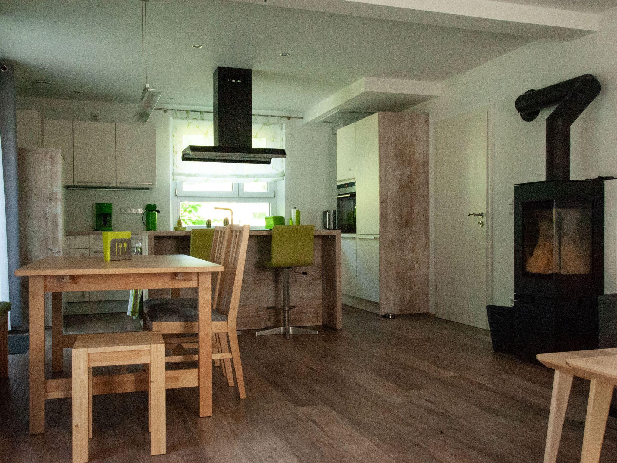 Diese Wohnung bietet auf 75 m² ganz viel: Ein großer Wohnraum ist das Herz der Ferienwohnung. Das große Ledersofa lässt sich in ein bequemes Doppelbett verwandeln. Am ausziehbaren Esstisch kann man alles genießen, was man vorher im geräumigen Küchenbereich an der Kücheninsel gekocht hat. Das Bad ist mit Waschtrockner und Dusche zum einen funktional, mit der Badewanne zum anderen auch Ort der Entspannung. Die Beleuchtung im Stil eines Sternenhimmels, eine Kerze und vielleicht ein Glas Sekt machen das Ganze perfekt. Das geräumige Schlafzimmer ist mit einem Doppelbett ausgestattet. Im Sommer ist die große Terrasse im Grünen ein traumhaftes Platzerl und im Winter wird’s drinnen mit Fußbodenheizung und Holzofen so richtig gemütlich. Feuerholz steht kostenfrei direkt vor dem Haus zur Verfügung.