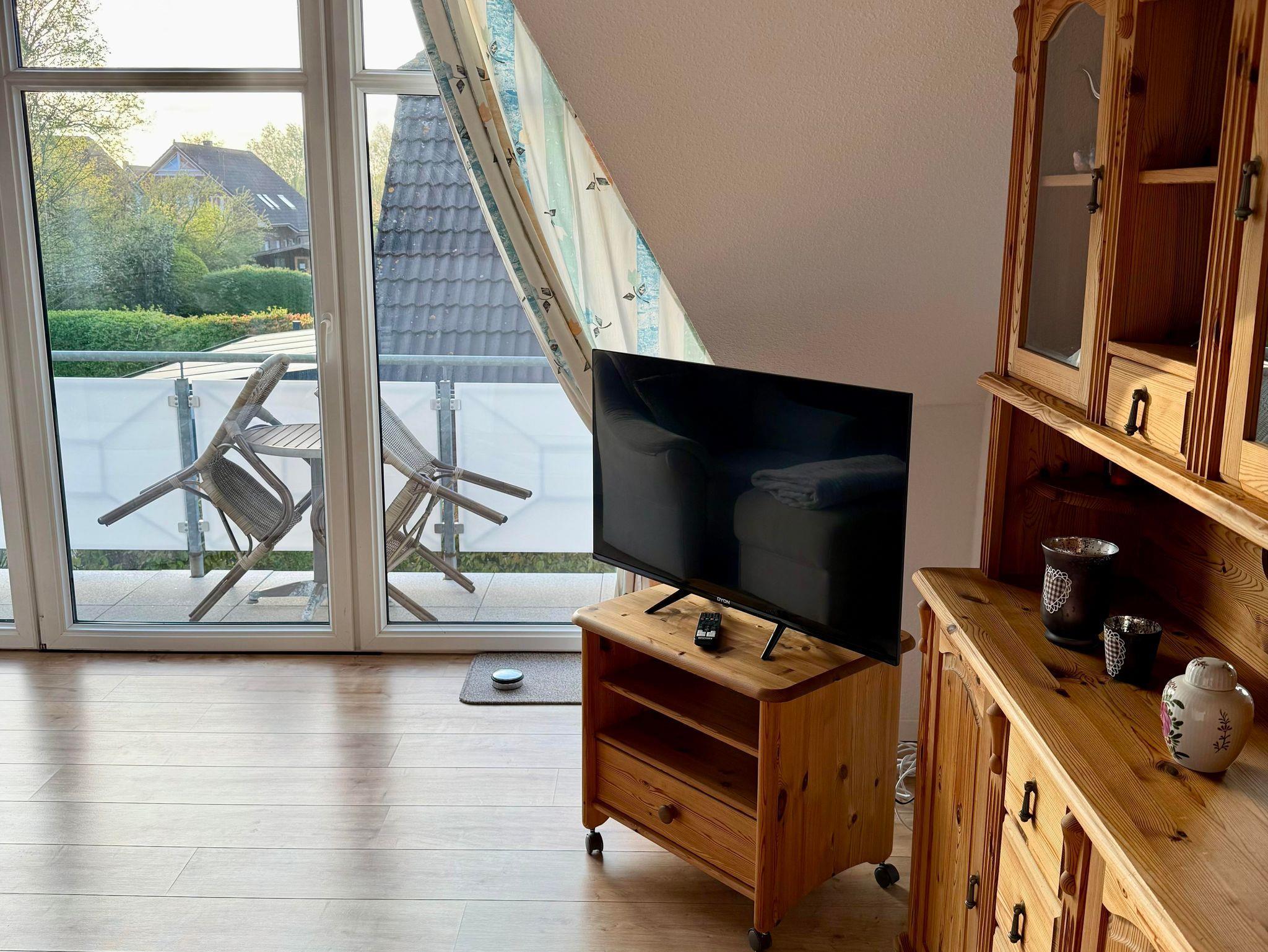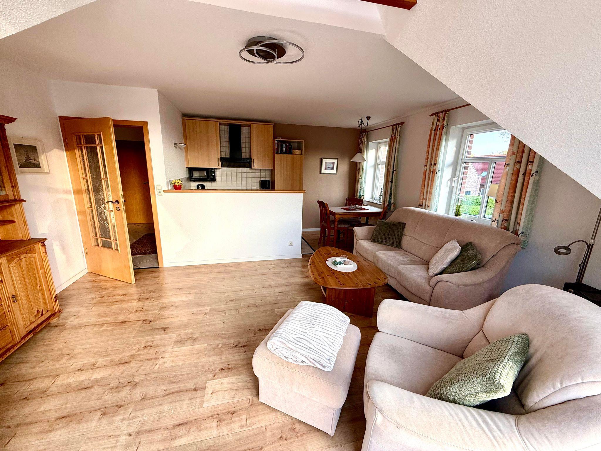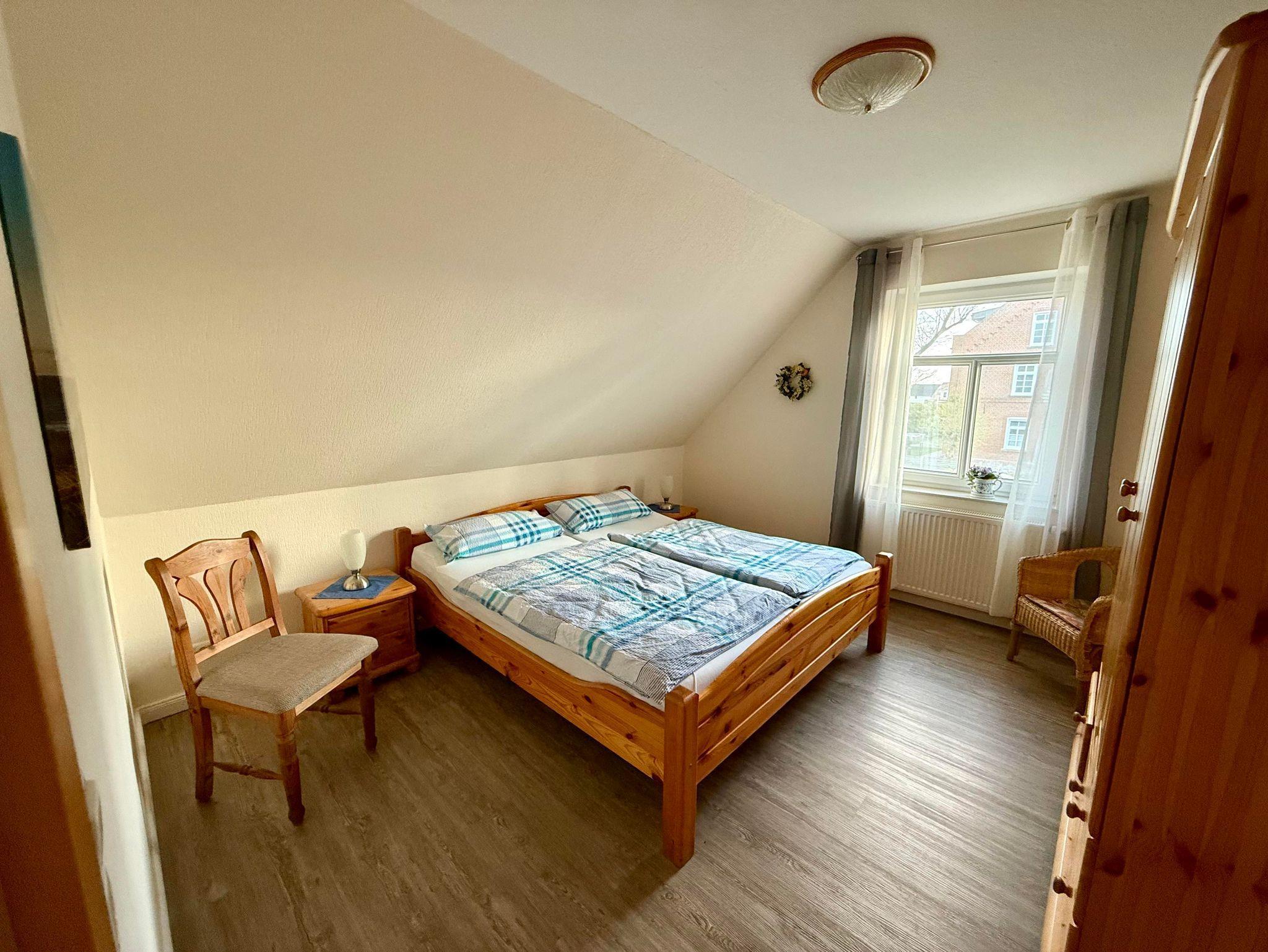 Helle, geräumige Ferienwohnung im OG. Das Haus (Bj. 1999) befindet sich in ruhiger Lage 5 bis 10 Gehminuten vom Ortskern entfernt. Die Wohnung besteht aus einem großen Wohn-/Essbereich mit Küche, einem Schlafzimmer mit Doppelbett und einem Duschbad. Zur Wohnung gehört ein Balkon (mit Gartenmöbel).