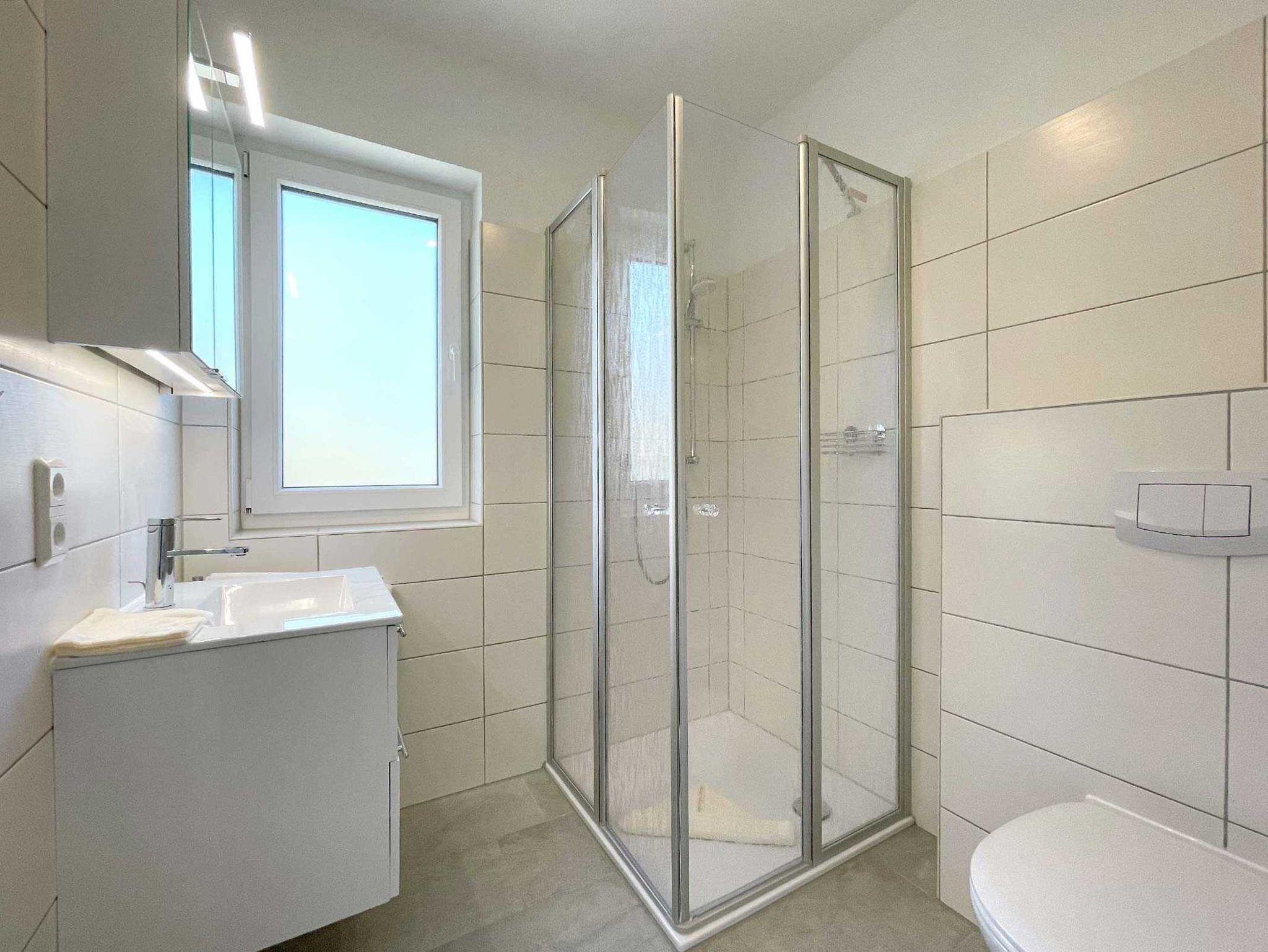 Komfortabel und hell ausgestattetes Doppelzimmer im Erdgeschoss mit eigener Terrasse. Große Fenster und Terrassenschiebetüren lassen viel Licht und Sonne in den Raum. Auf der eigenen Terrasse können Sie herrlich entspannen. Ein bequemes Doppelbett mit getrennten Matratzen bietet echten Schlafkomfort. Modernes Bad mit Dusche/WC und Fenster. Information und Unterhaltung erhalten Sie auf dem großen Smart-TV und das kostenlose WLAN verbindet Sie mit der digitalen Welt. Frühstück inklusive. Kaffeemaschine, Wasserkocher und ein kleiner Kühlschrank stehen im Haus zur Verfügung.