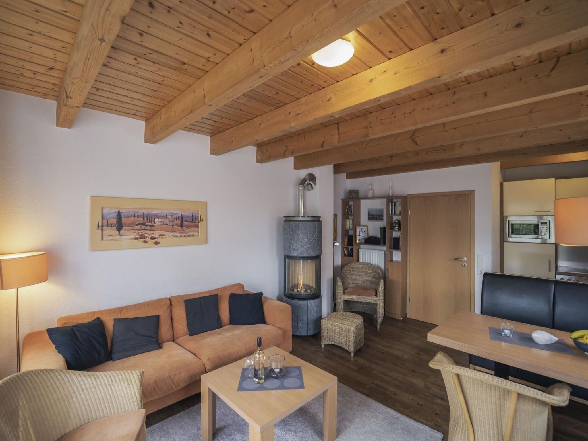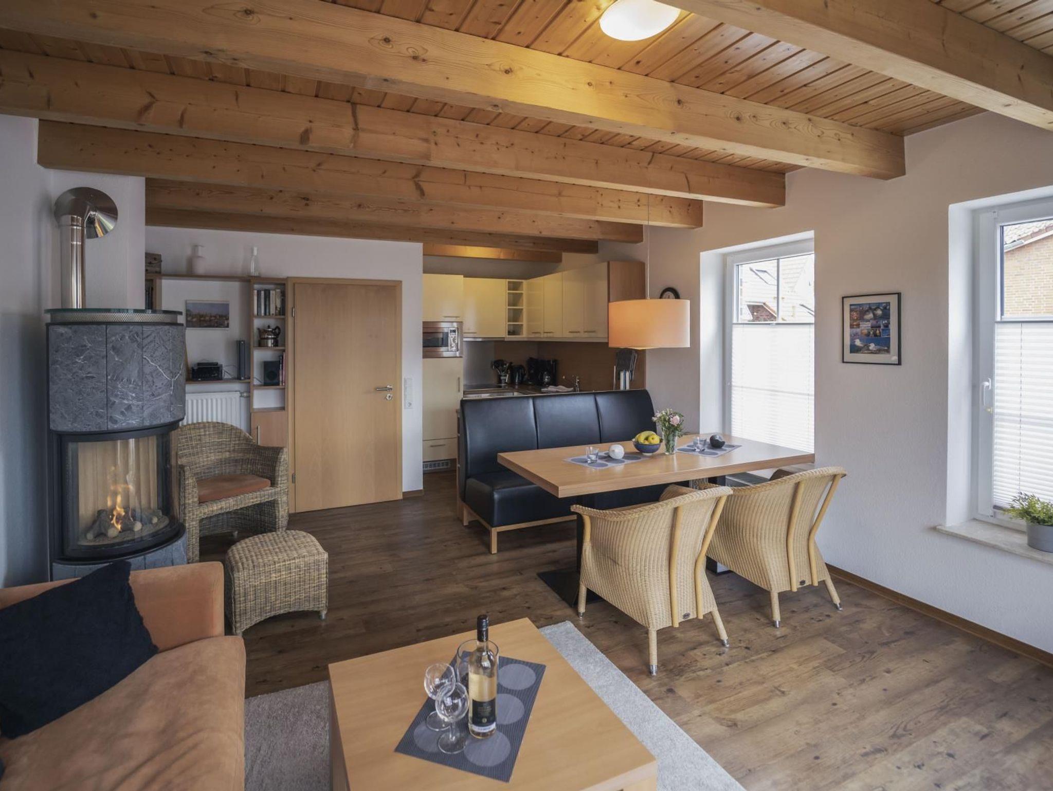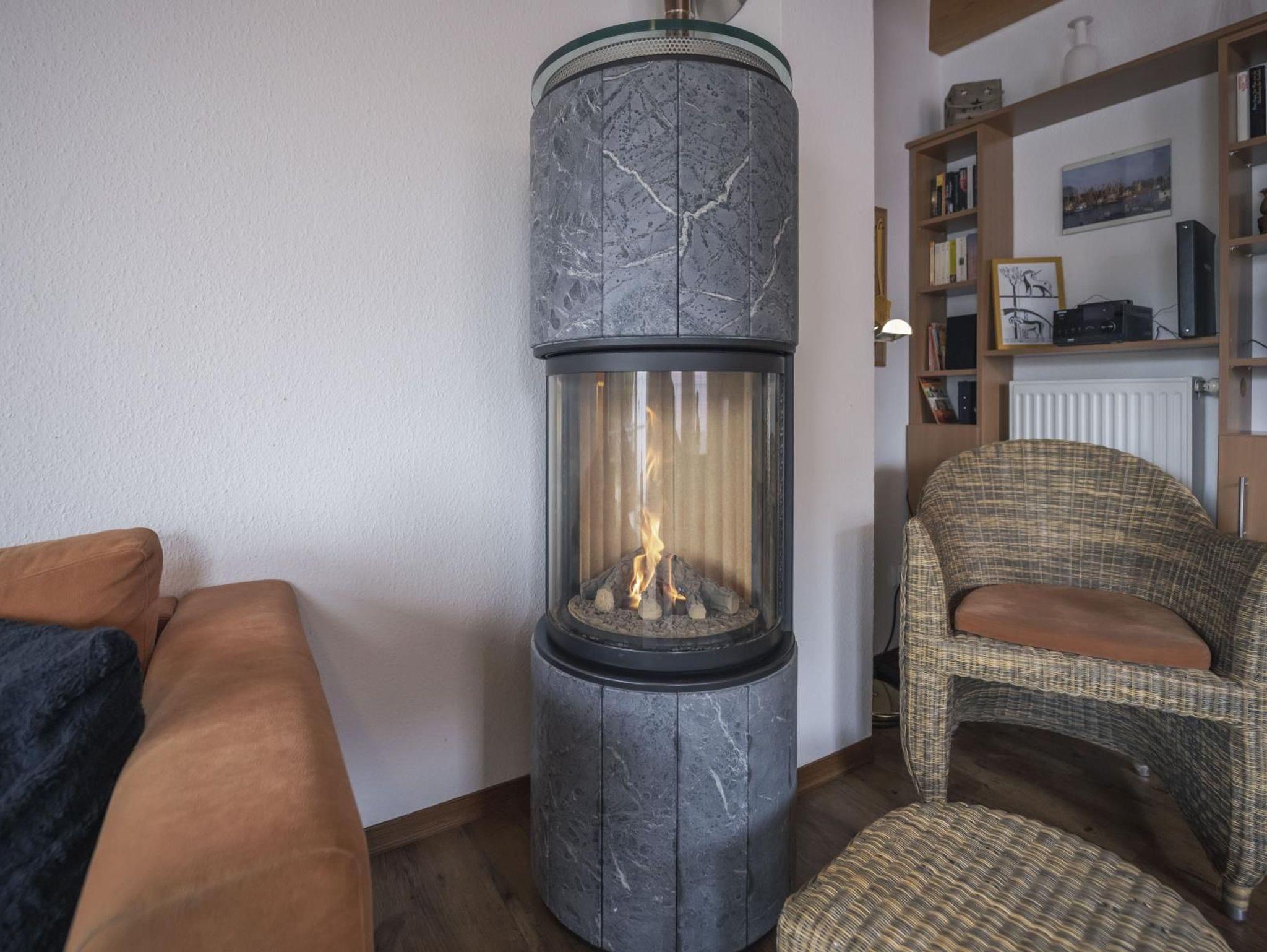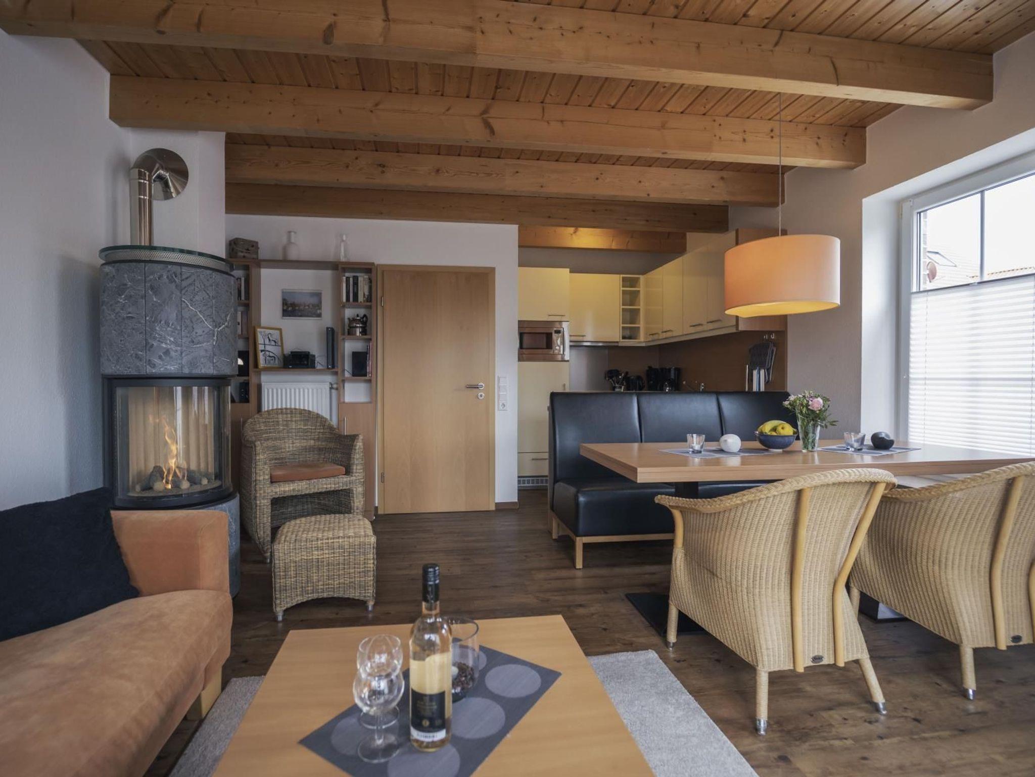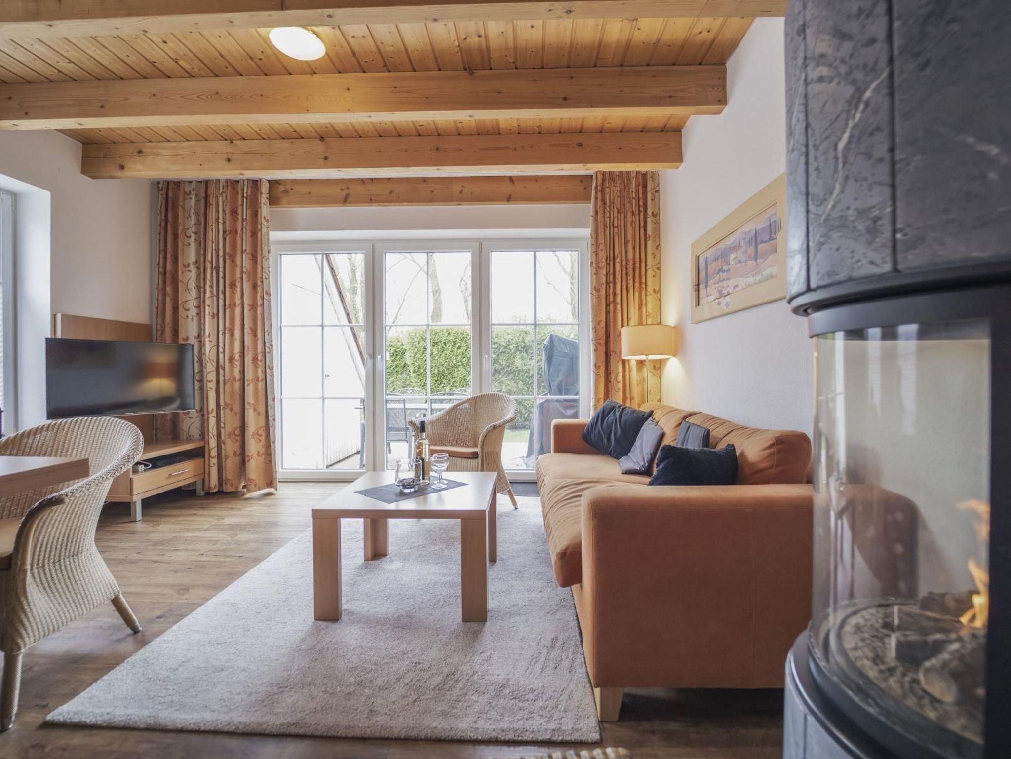 gemütliches Wohnzimmer mit einem Gas-Kaminofen (Sie regulieren die Flamme per Fernbedienung), hinter