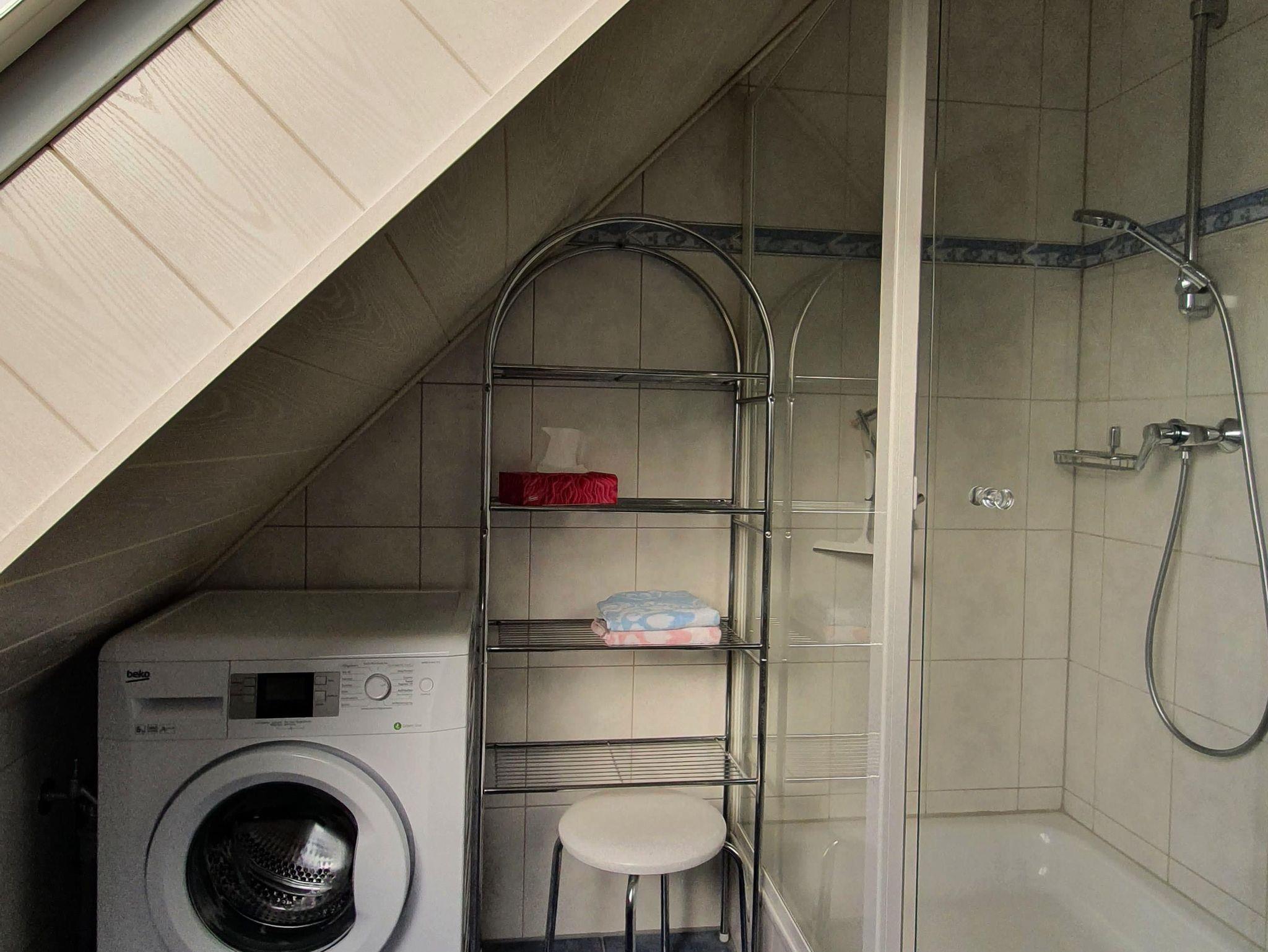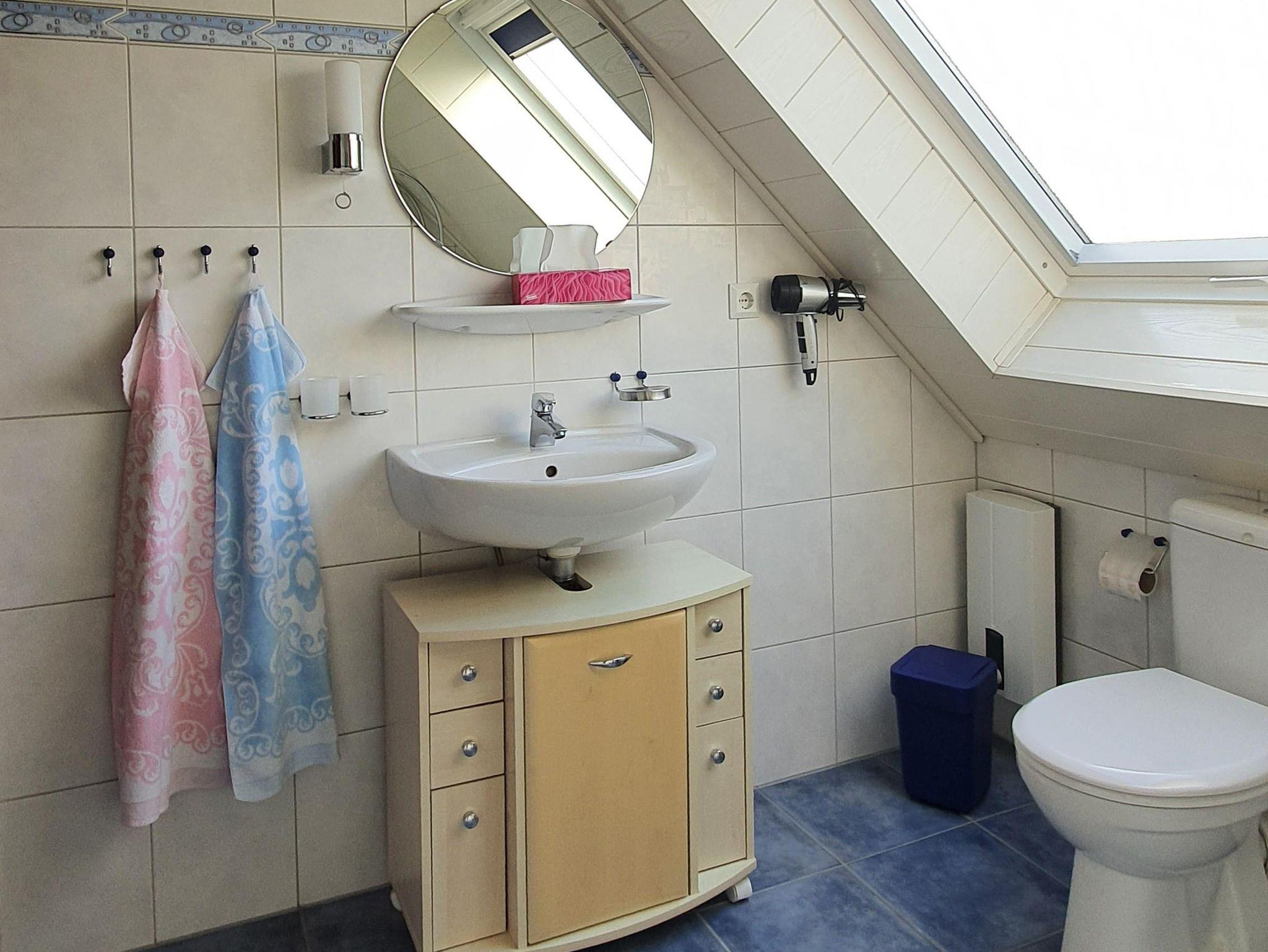 Die Wohnung im Obergeschoss (46 qm) verfügt über einen Balkon.