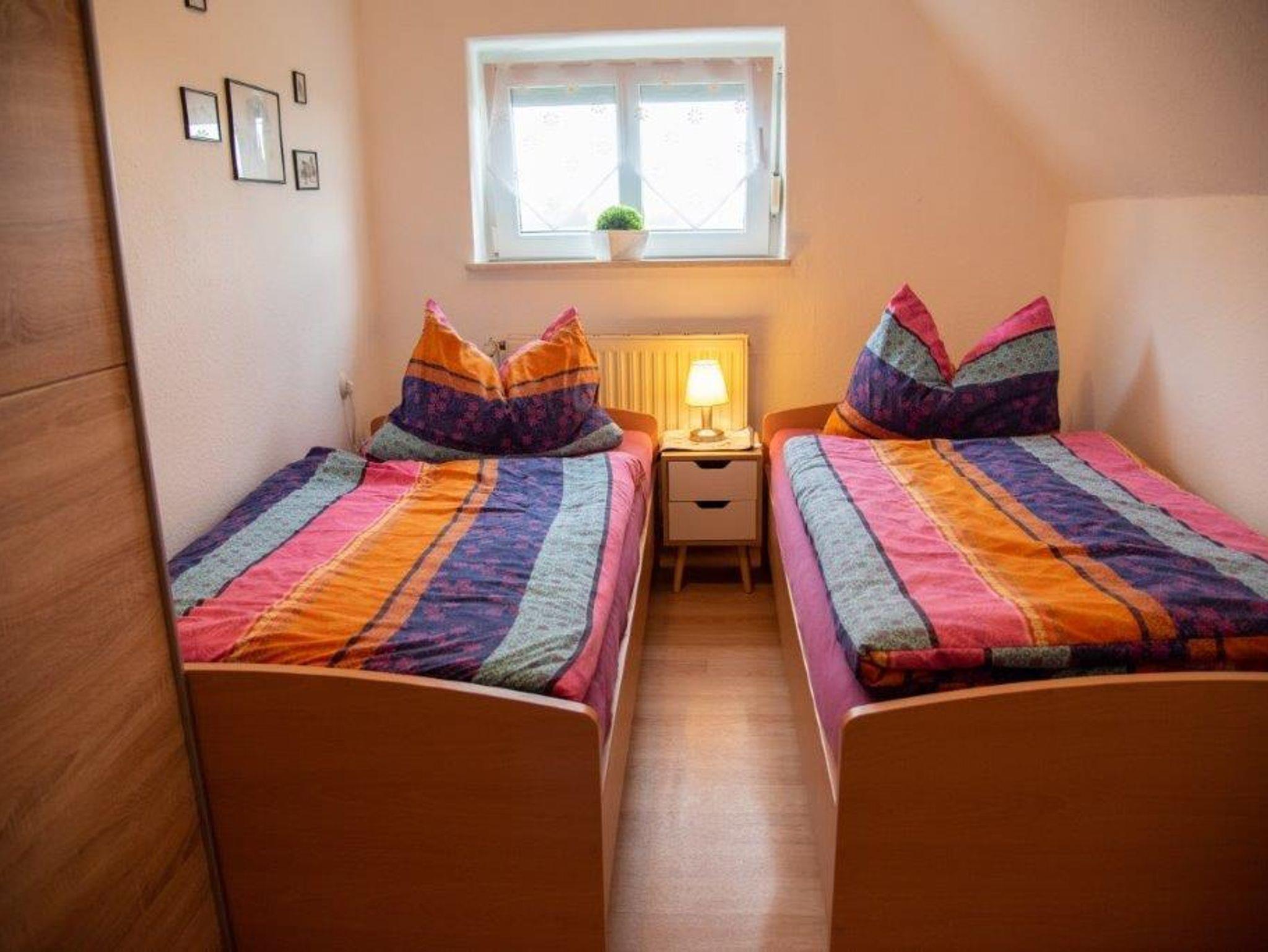 Geräumiges Ferienhaus in ruhiger Wohnlage für bis zu 8 Personen, 4 Schlafzimmer (zwei davon im Erdgeschoss mit Ehebett, zwei andere im Obergeschoss mit je zwei Einzelbetten), 2 Wohnzimmer, 1 Küchen, 2 x Du/WC, 1x Gäste WC, Sat-TV, 110 qm Wohnfläche, Garten, Terrasse, Parkplatz am Haus. Haustiere auf Anfrage - es wird eine extra Gebühr für Haustiere erhoben.