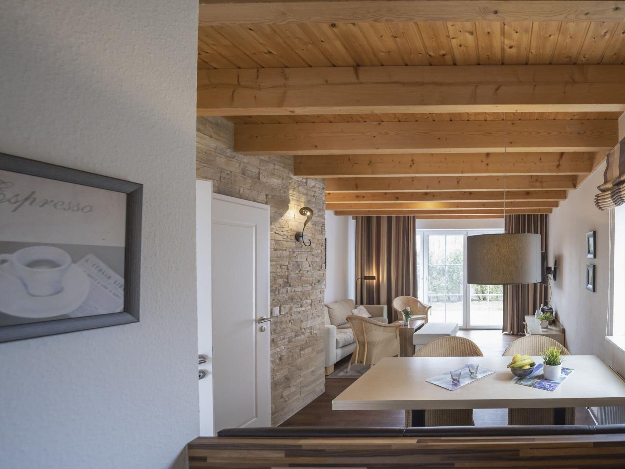 Die Bruchsteinwand und der Essplatz mit Polsterbank schaffen ein sehr stilvolles und gemütliches Ambiente für Ihre Mahlzeiten!