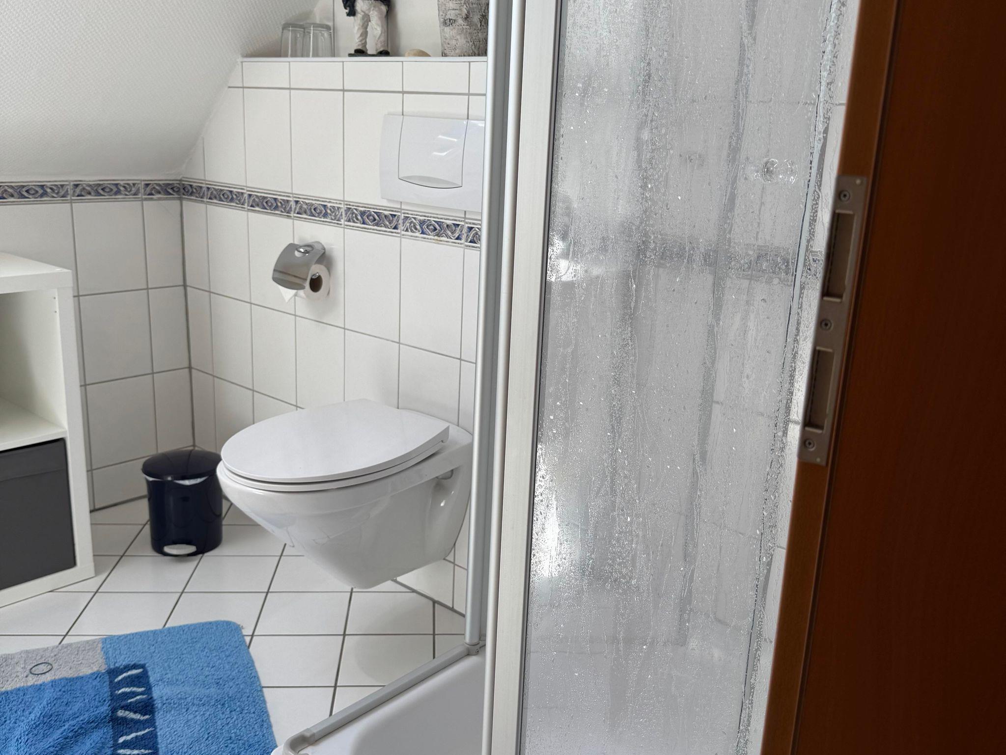 Helle, geräumige Ferienwohnung im OG. Das Haus (Bj. 1999) befindet sich in ruhiger Lage 5 bis 10 Gehminuten vom Ortskern entfernt. Die Wohnung besteht aus einem großen Wohn-/Essbereich mit Küche, einem Schlafzimmer mit Doppelbett und einem Duschbad. Zur Wohnung gehört ein Balkon (mit Gartenmöbel).