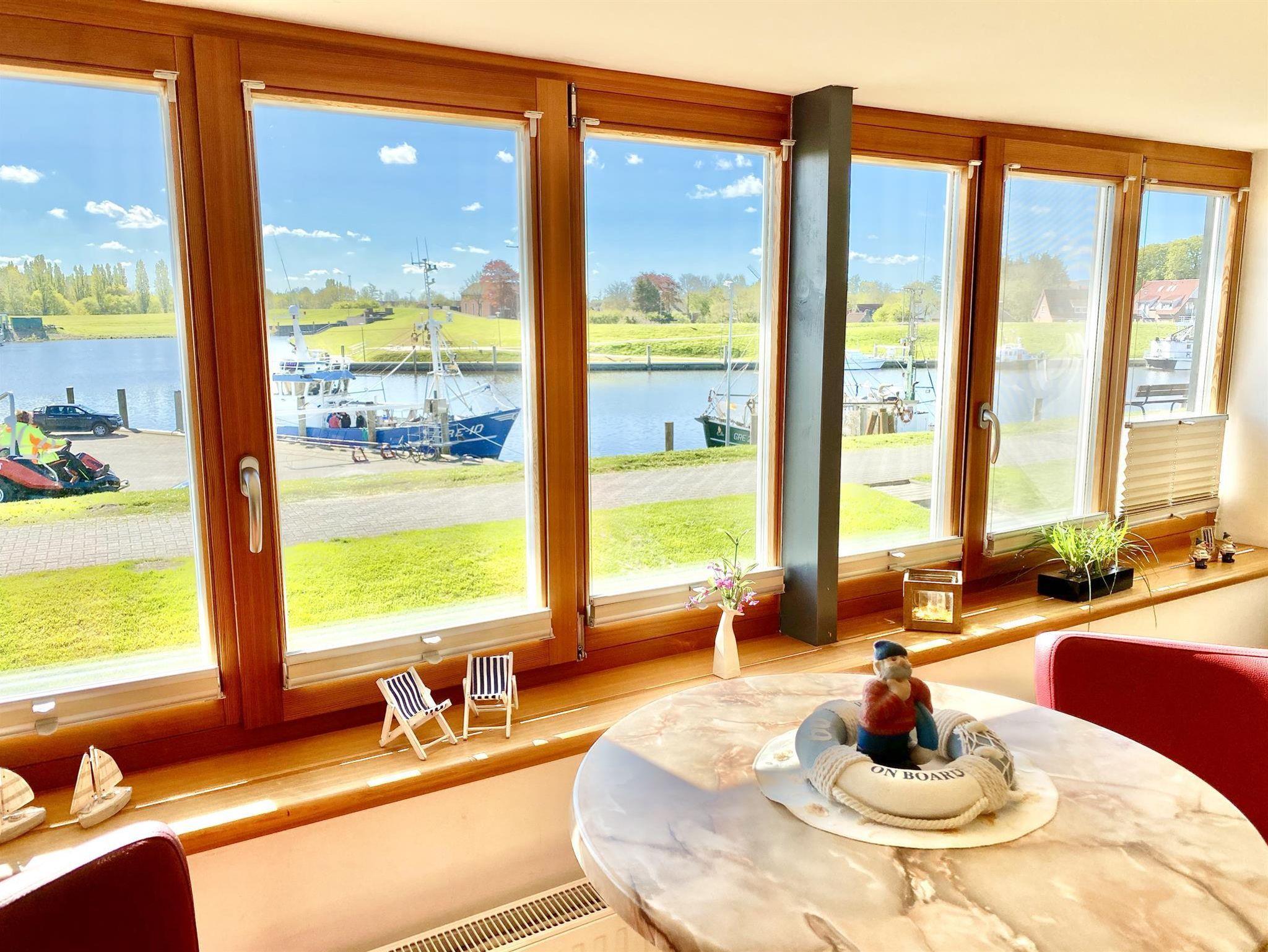 Die Wohnung 1 hat eine Wohnfläche von 60 m² und besteht aus einer Wohnküche mit einer Einbauküche, einem Schlafzimmer mit TV, einem Badezimmer und einem Wohnzimmer mit einer zusätzlichen Schlafgelegenheit. Aus dem Wohnzimmer heraus haben Sie einen wunderschönen Blick auf den Yachthafen mit den vielen Segelbooten und auf den malerischen Fischereihafen mit der größten Krabbenkutterflotte an der norddeutschen Küste.