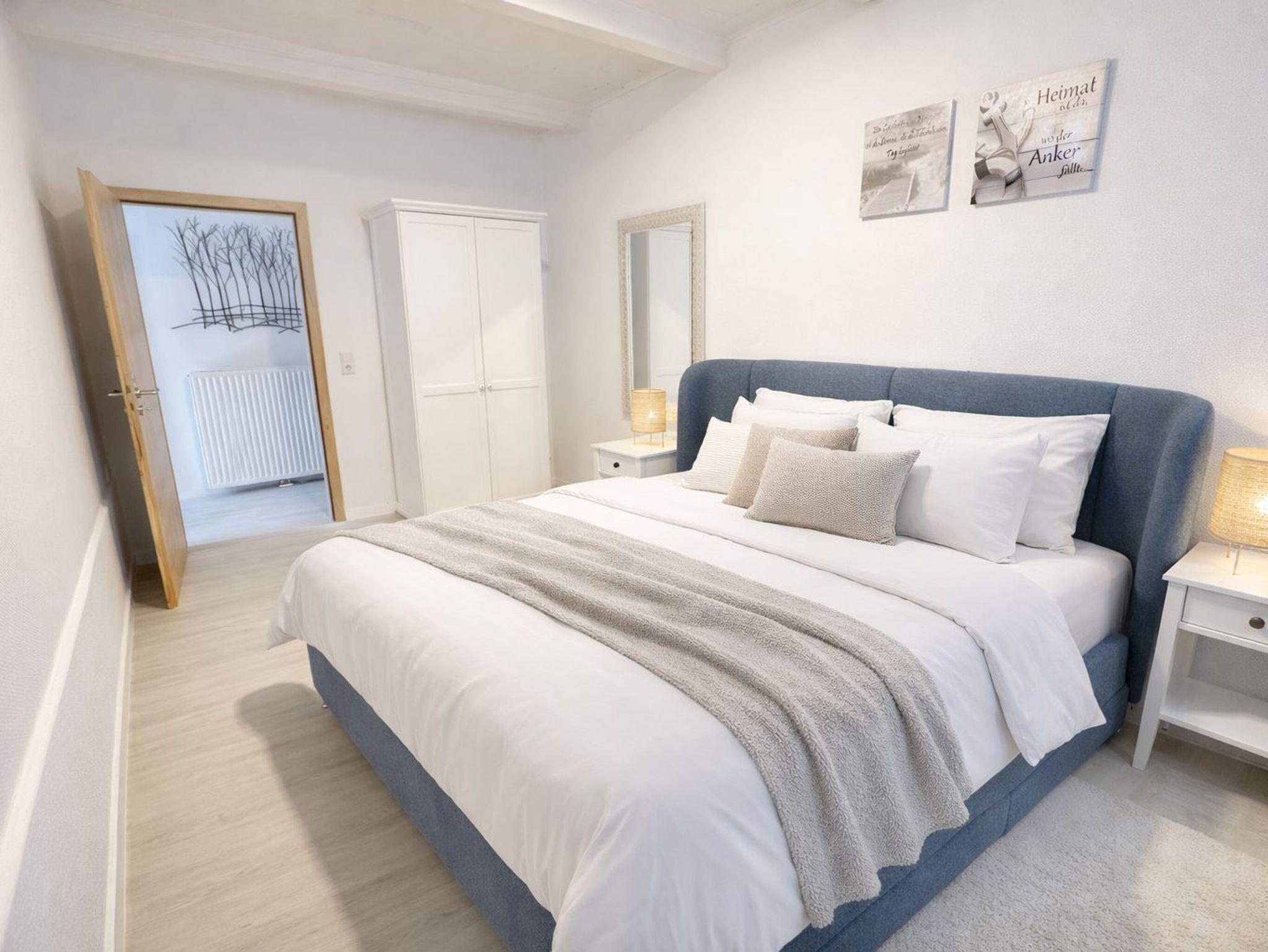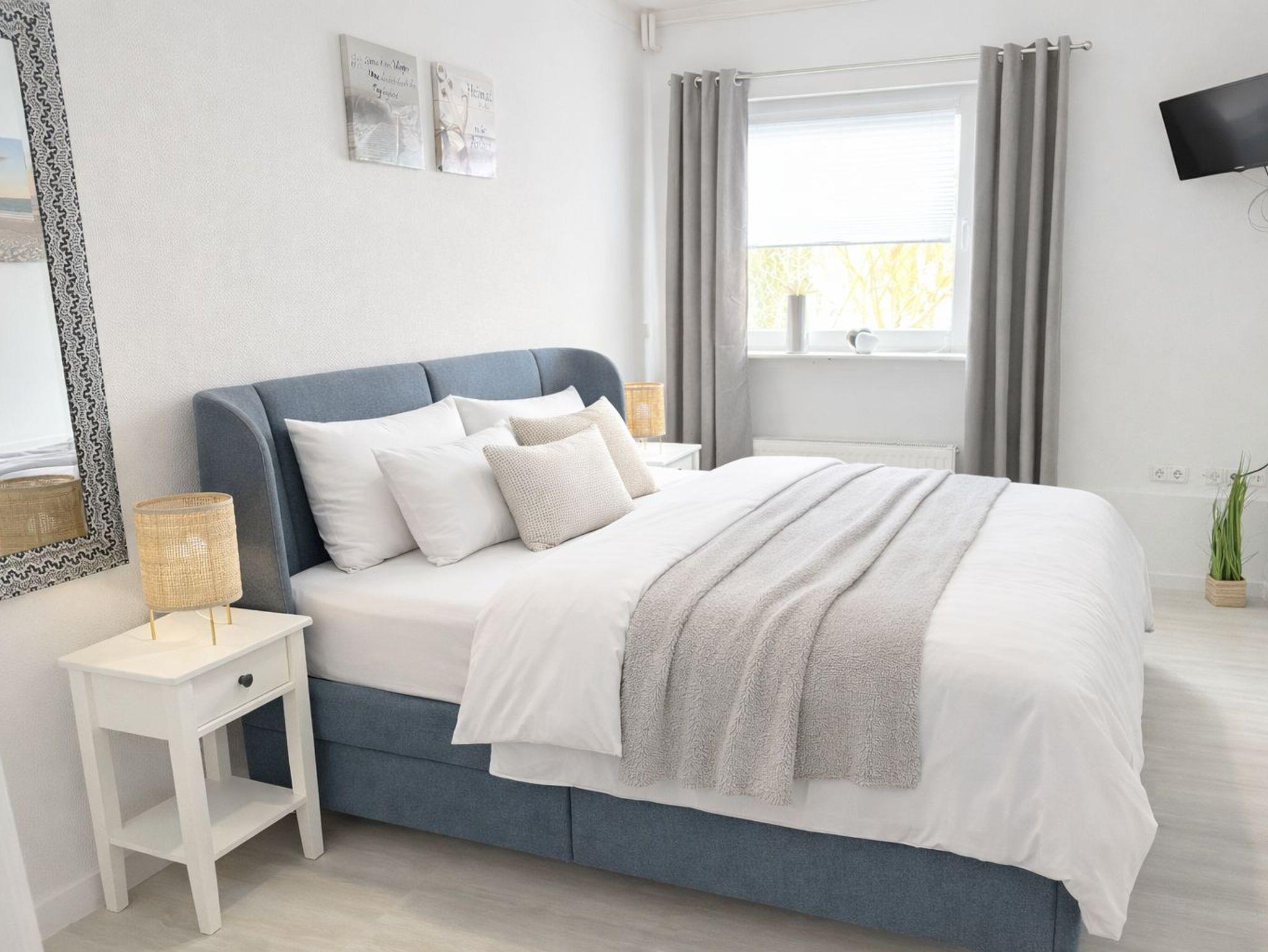 Das Schlafzimmer hat ein großes Doppelbett in 180x200 cm und einen neuen Smart-TV.