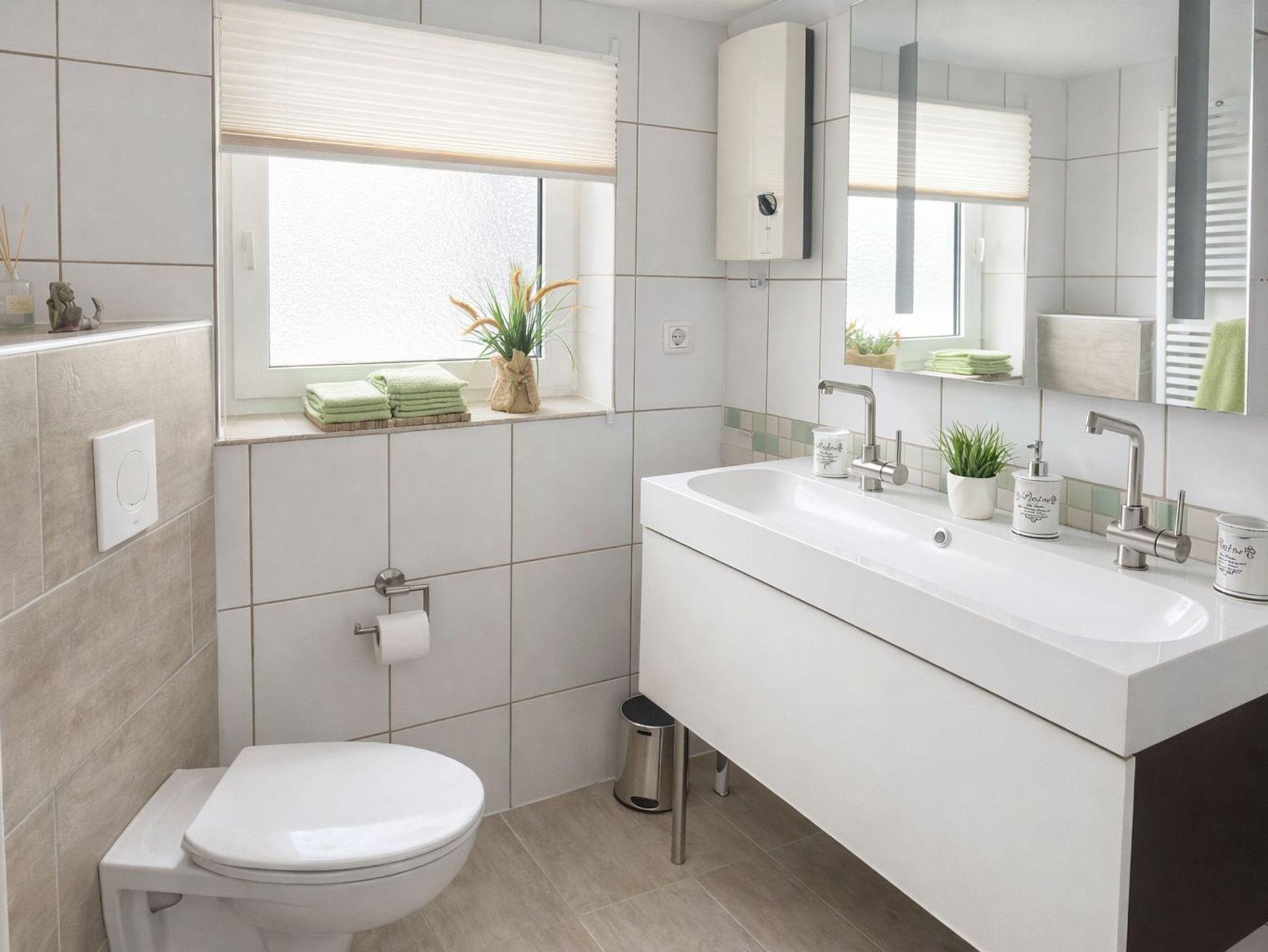 Das Bad hat eine bodentiefe Dusche und ist mit Handtüchern ausgestattet.