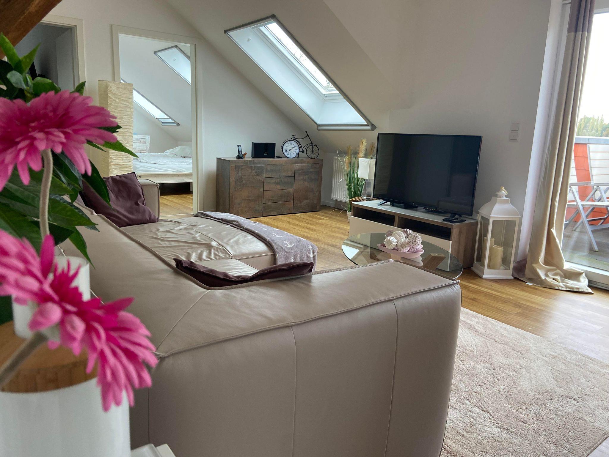 Bei der Nichtraucher-Ferienwohnung Manslagt handelt es sich um eine Dachgeschosswohnung (77 qm zzügl. 23 qm Schrägen als Nutzfläche)
