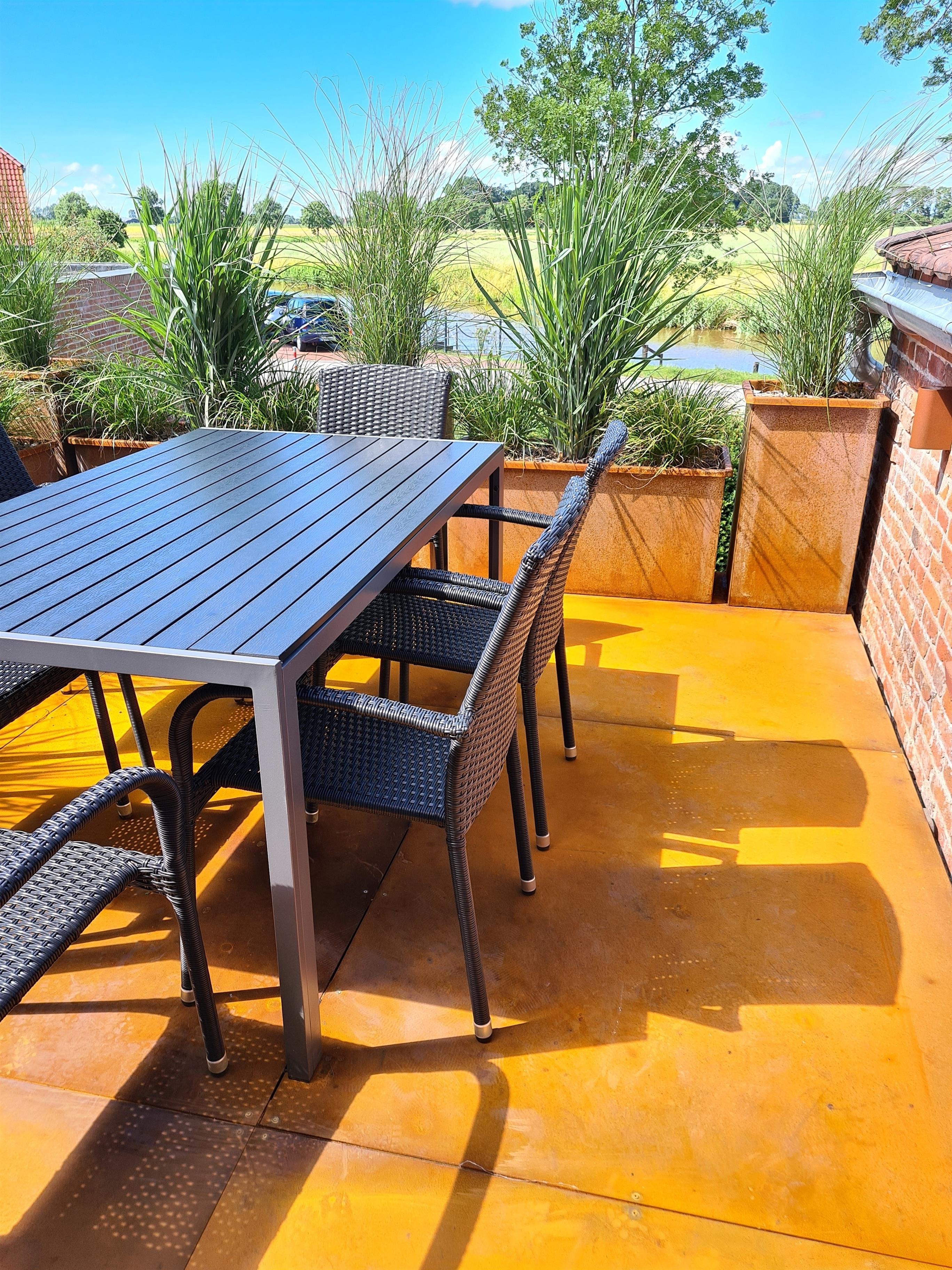 Eine windgeschützte Terrasse und ein eingezäunter Garten vervollständigen dieses Feriendomizil.