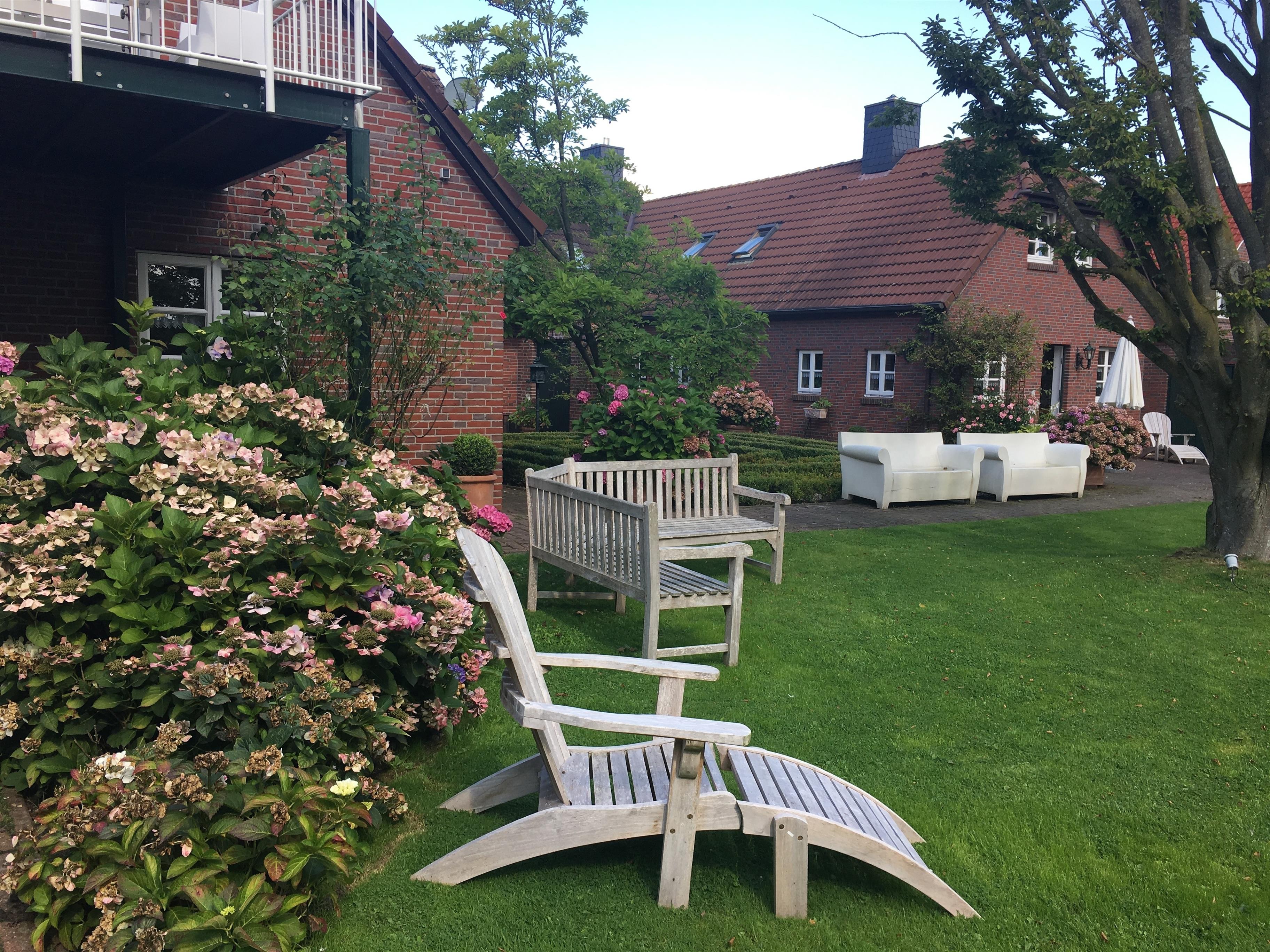 Darüber hinaus steht Gästen der riesige Landhaus-Garten (2000 qm) zur Verfügung: mit Sonnenliegen und Sonnenschirmen - aber auch Schattenplätzen, wenn die Sonne mal zu heiß scheint.