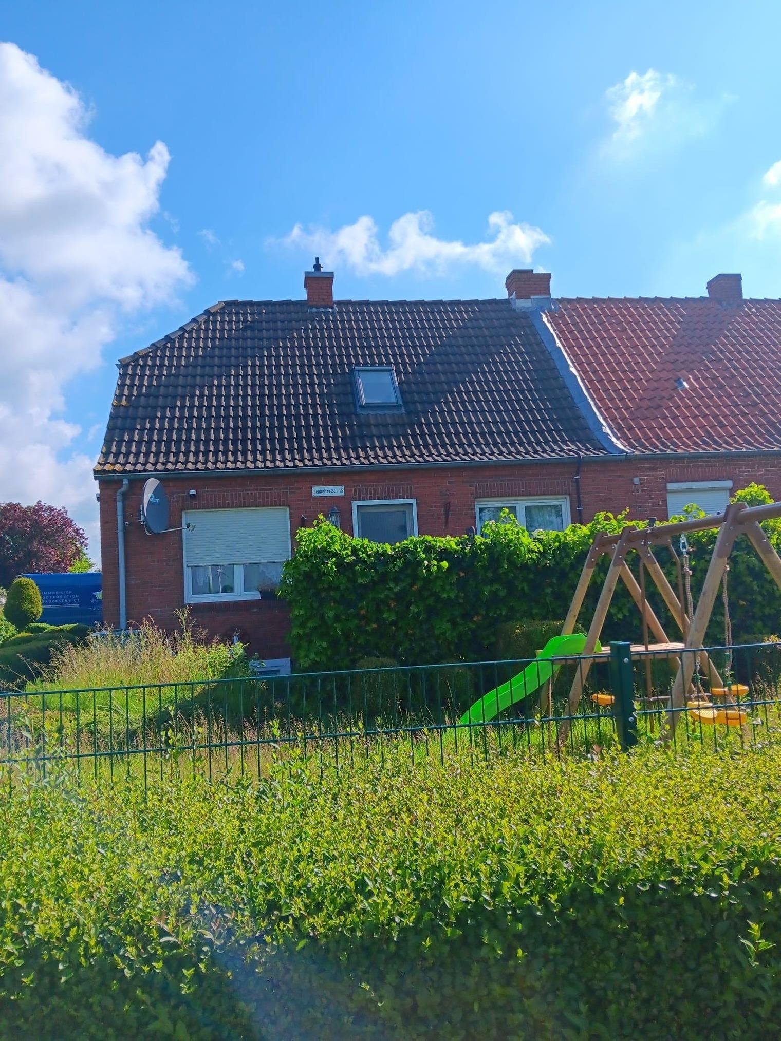 Terrasse, Rasen, Spiel- und Liegewiese, Gartenmöbel, Klettergerüst, Tischtennisplatte, 2 PKW-Stellplätze, umzäuntes Gartengrundstück