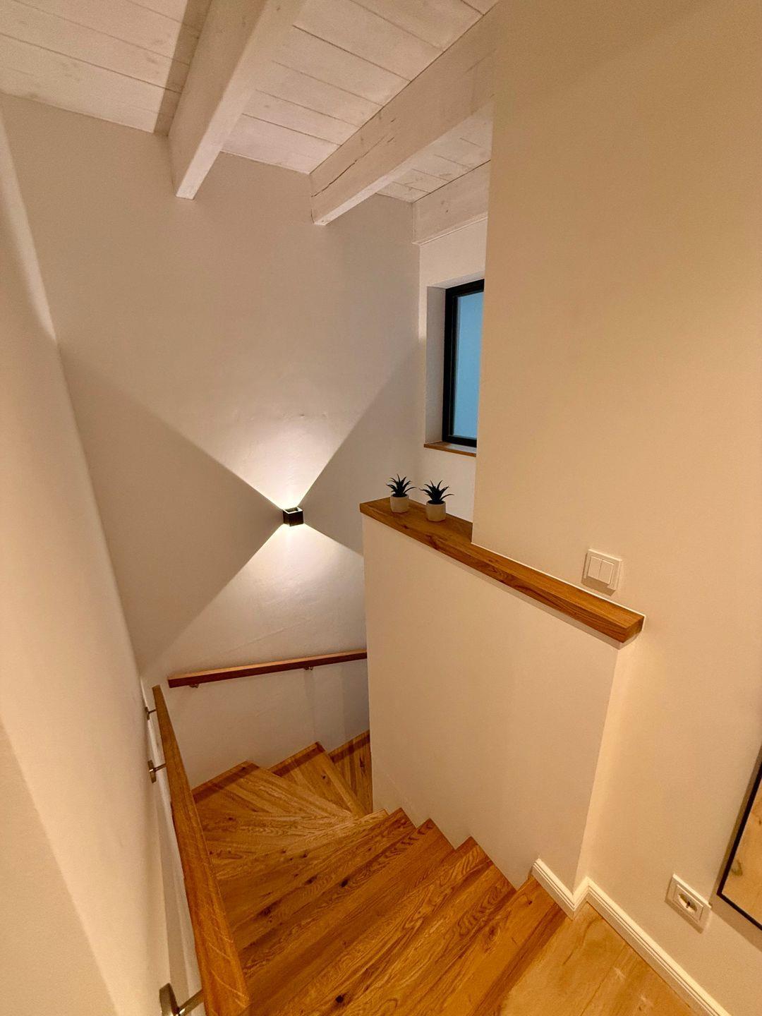 Die Wohnung erstreckt sich über 2 Ebenen. Im offen gestalteten Erdgeschoss werden sich Kochliebhaber über eine voll ausgestattete große und moderne U-Küche, einen großen Essbereich mit rustikalem Esstisch und einen gemütlichen Wohnbereich mit einem 50 Zoll Smart-TV, der über alle gewünschten Streaming Dienste verfügt, sowie einer JBL Musikbox, freuen.