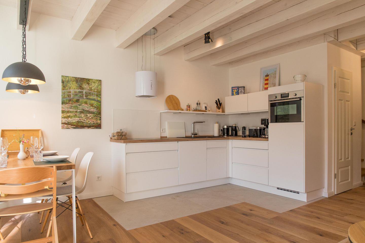Im Erdgeschoss befinden sich Wohnbereich, offene Küche und Gäste-WC: