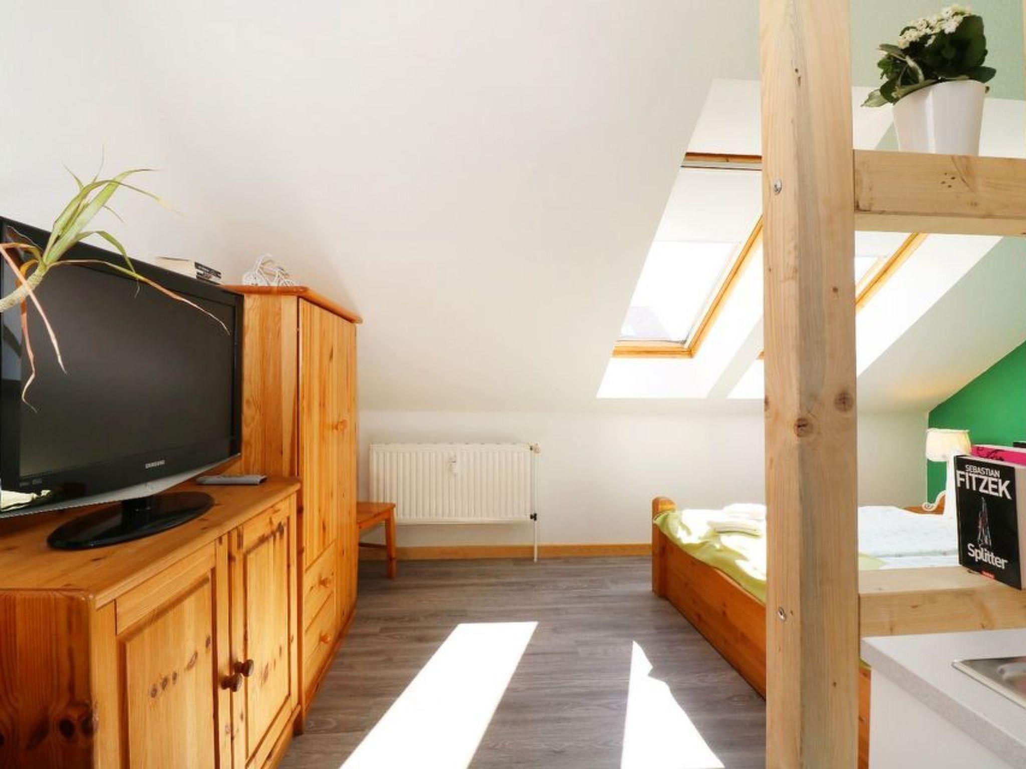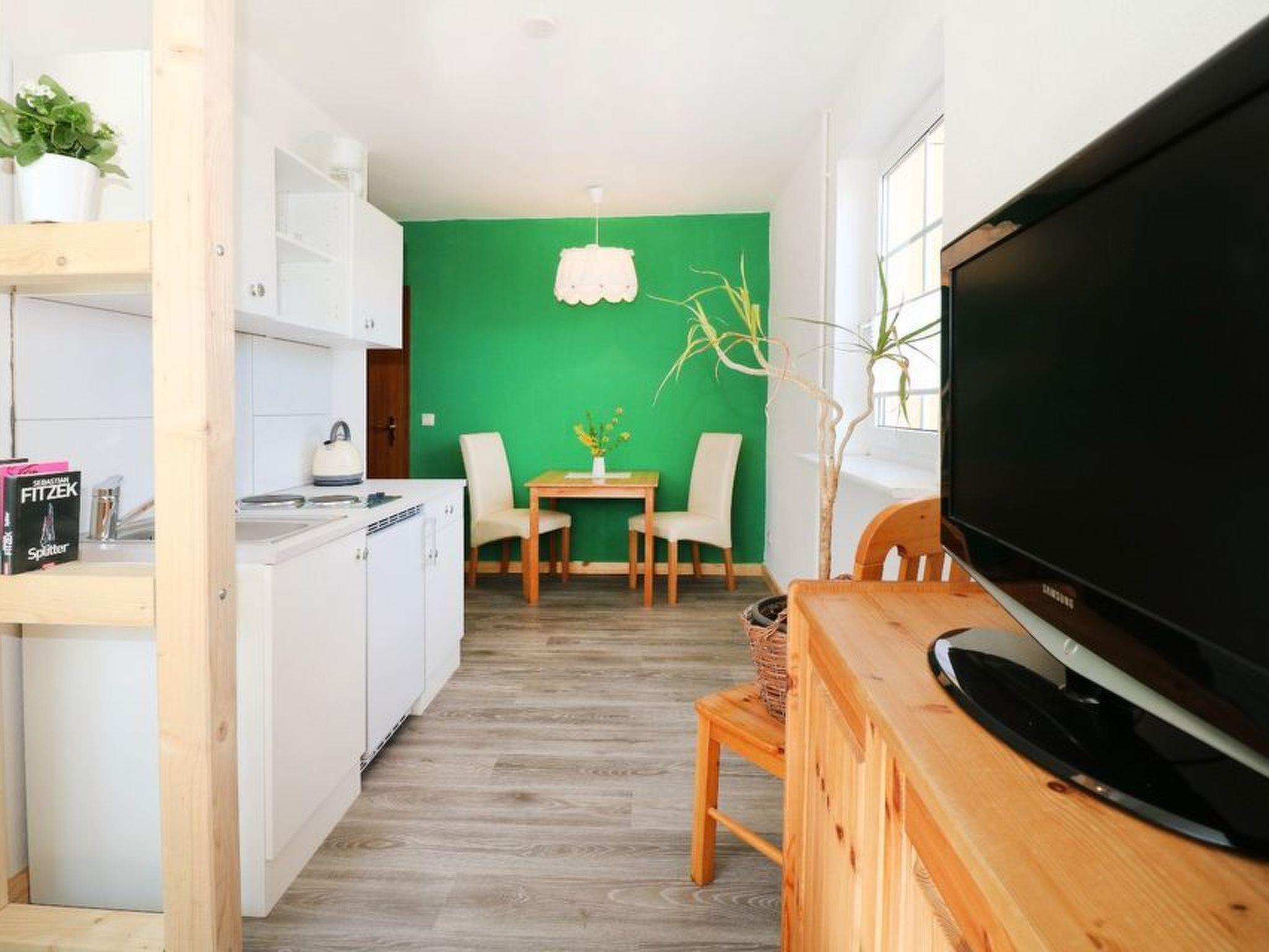 The property in which the flat is located is a former holiday park, which we took over three years ago and in which we have invested a lot of time and work. In the course of this we have also lovingly remodelled this flat. There is a 1.60 metre double bed, a mini-kitchen and a dining table with three seats in one room and a bathroom with a shower.