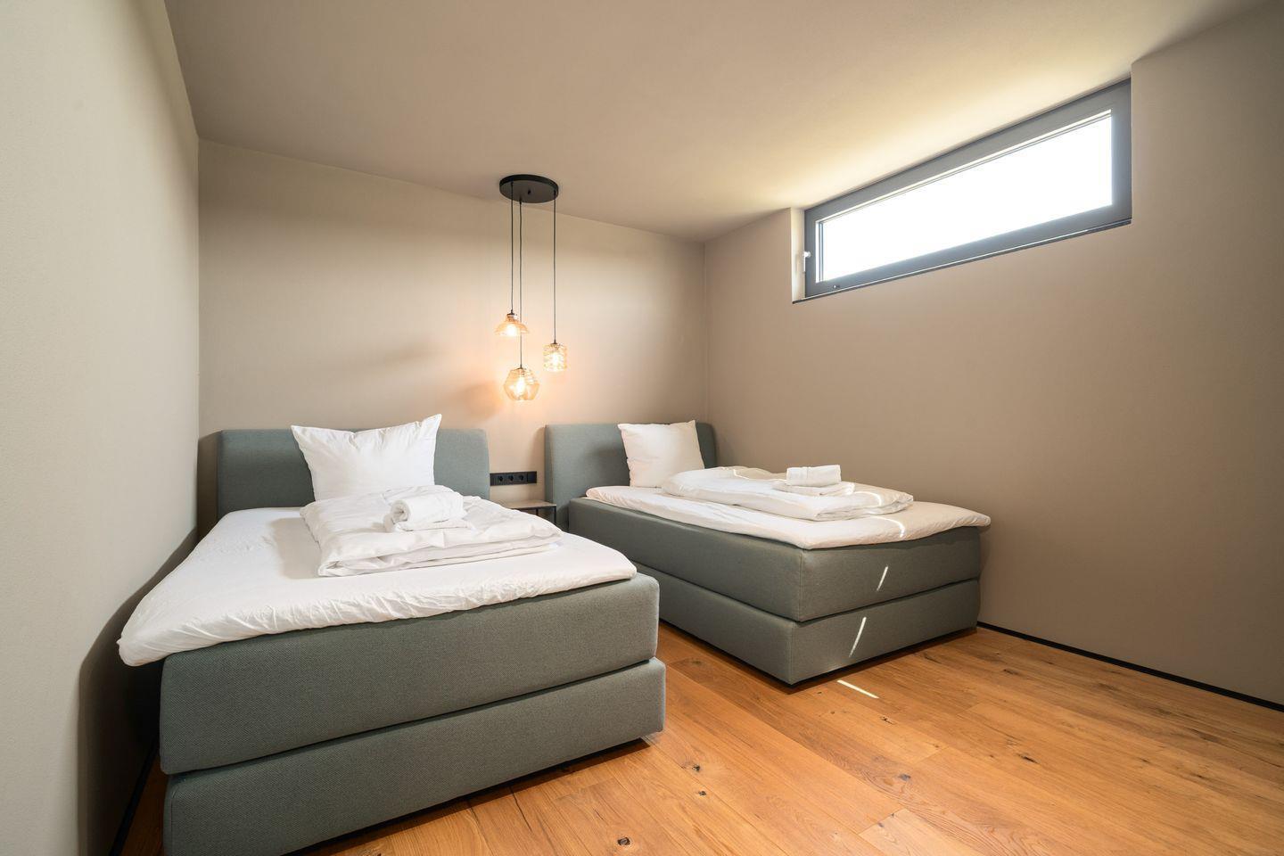 Die Unterkunft verfügt über 6 großzügige Zimmer, darunter fünf separate Schlafzimmer, die jeweils für erholsame Nächte konzipiert sind. Fünf moderne Badezimmer mit bodengleichen Duschen, hochwertigen Badutensilien sowie ein zusätzliches Gäste-WC sorgen für Privatsphäre und Komfort, selbst bei einer größeren Gruppe. Der offene Wohn- und Essbereich lädt durch seine klaren Linien und das umfassende Platzangebot zum Verweilen ein. Die Sofaecke, Sessel, eine Vielzahl an Staumöglichkeiten und der Kaminofen schaffen eine behagliche Atmosphäre, die durch die Fußbodenheizung und die Klimaanlage zu jeder Jahreszeit abgerundet wird.