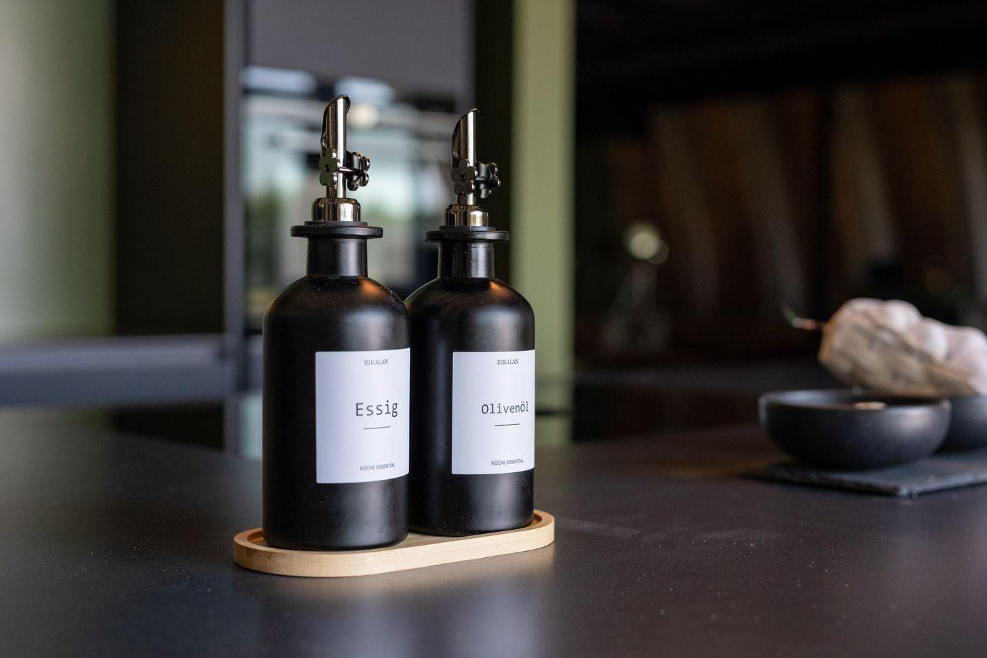 Die hervorragend ausgestattete, offene Küche lässt keine Wünsche offen und ist direkt mit dem Wohnzimmer verbunden. Sie finden hier neben Herd (Induktion), Backofen, Mikrowelle, Kühlschrank und extra Gefrierschrank auch Spülmaschine, Toaster, Wasserkocher, Kaffeemaschine und zahlreiche Küchenutensilien. Geschirr, Besteck, Gewürze sowie Reinigungstücher sind ebenfalls vorhanden, sodass Ihnen für die Zubereitung gemeinsamer Mahlzeiten und geselliger Abende alle Möglichkeiten offenstehen. Der großzügige Esstisch bietet ausreichend Platz für die gesamte Reisegruppe.