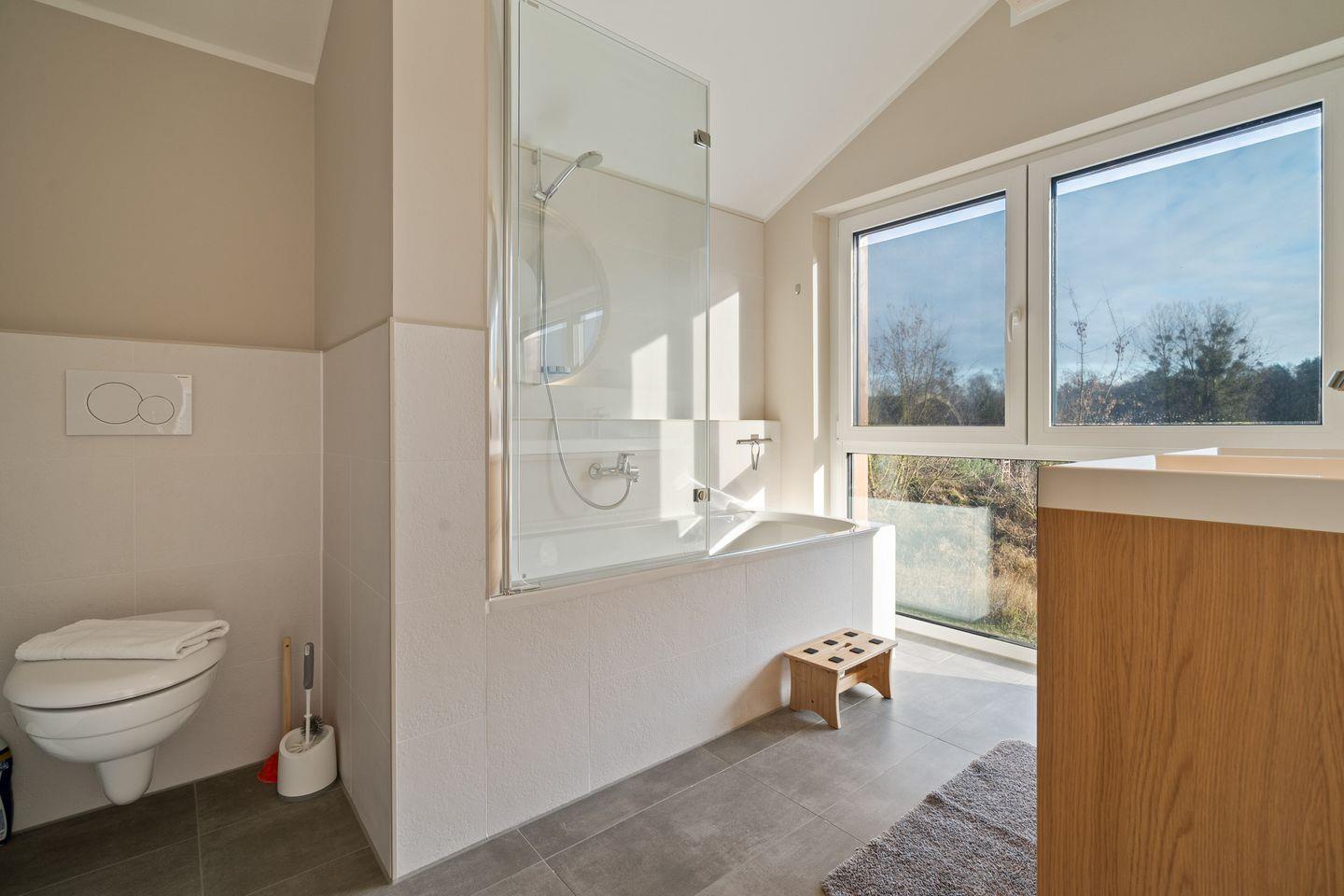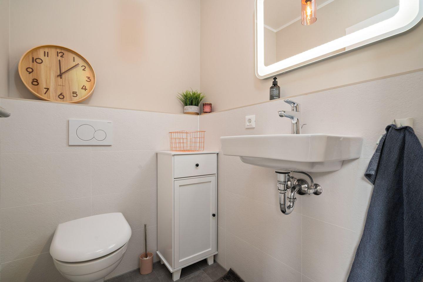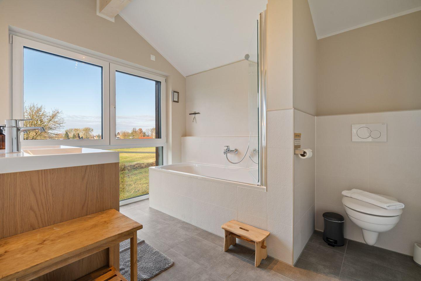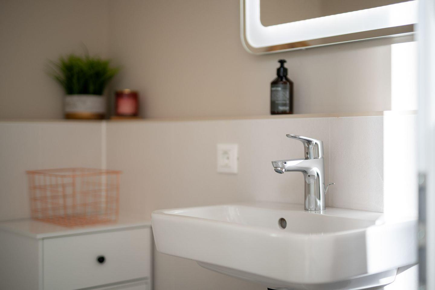 Insgesamt vier separate Schlafzimmer, alle mit pflegeleichtem Vinylboden ausgestattet, sorgen für angenehme Rückzugsmöglichkeiten und bieten zusammen acht Schlafgelegenheiten. Die Schlafzimmer eignen sich sowohl für Erwachsene als auch Kinder; ein Babyreisebett und hohe Sicherheitsstandards, darunter Treppengitter und Fliegengitter, machen das Ferienhaus besonders familienfreundlich. Drei moderne Badezimmer – davon eines mit einer bodengleichen Dusche, Badewanne und Bidet – sowie ein zusätzliches Gäste-WC bieten hohen Komfort. Ein weiteres Plus ist die vorhandene Fußbodenheizung, die für wohlige Wärme sorgt.