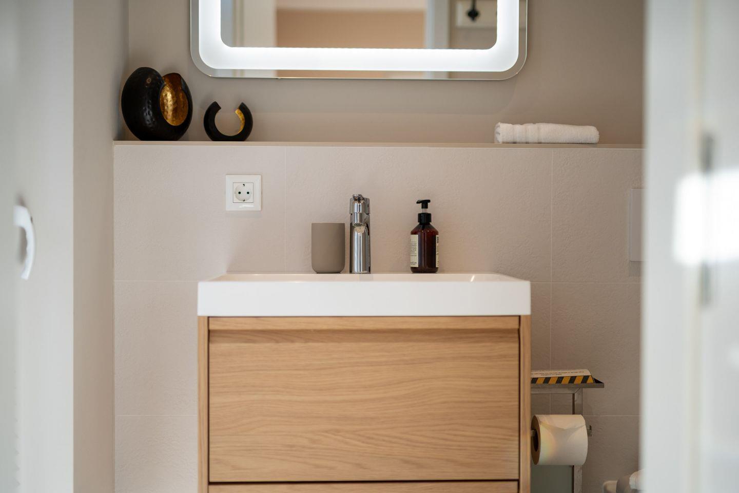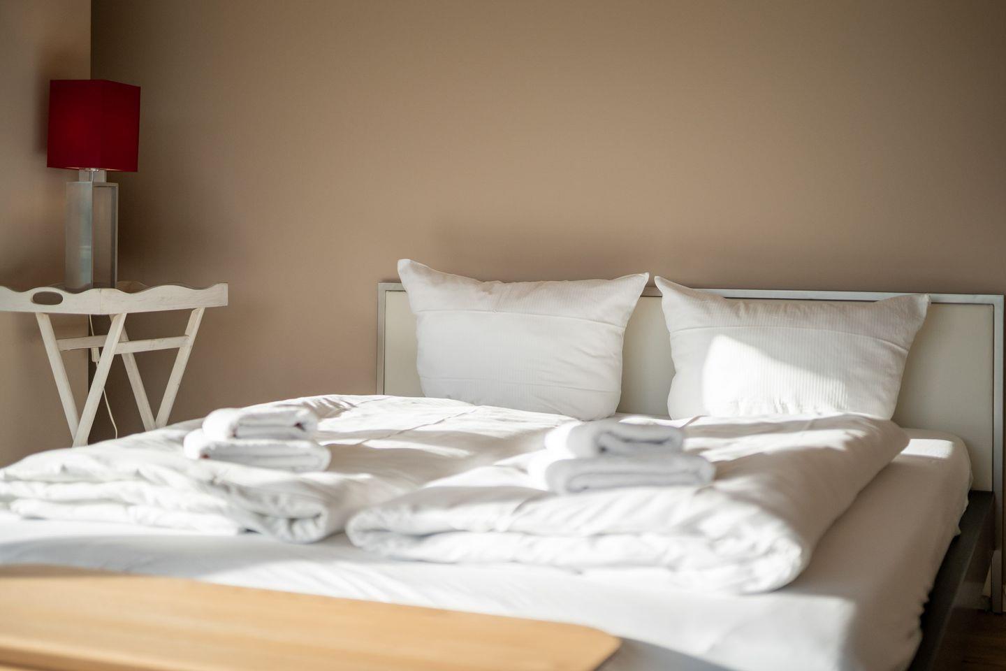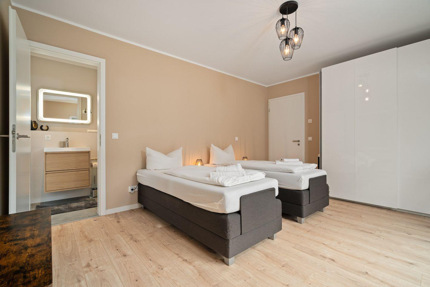 Moderne Annehmlichkeiten wie schnelles Internet ab 100 Mbit/s (WLAN), großer TV und Beamer bieten erstklassige Unterhaltungsmöglichkeiten. Für den reibungslosen Alltag stehen Ihnen Waschmaschine und Trockner zur Eigennutzung zur Verfügung, ebenso wie Wäscheständer und Staubsauger. Ein kontaktloser Check-in sowie umfassende Sichtschutzvorrichtungen an allen Fenstern gewährleisten Komfort und Privatsphäre während Ihres Aufenthalts.