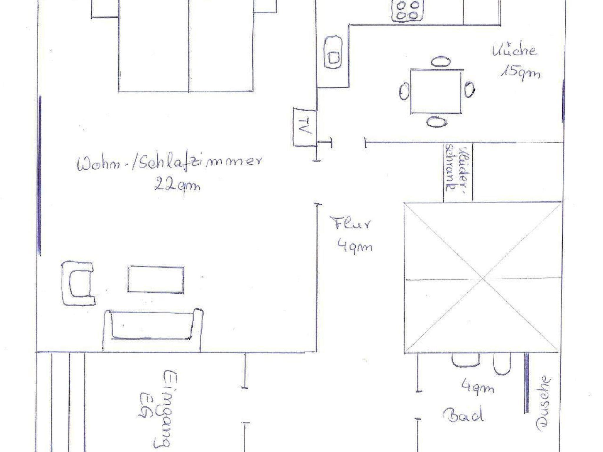 Wonderful holiday flat on 45m². Enjoy your stay in our lovingly furnished holiday flat, which has a large living room/bedroom of approx. 22m², 1 large eat-in kitchen, 1 hallway, 1 bathroom and a separate entrance. the living and sleeping area is furnished with high-quality solid wood furniture and a Rolf Benz leather suite. The cosy eat-in kitchen invites you to linger. The bathroom, like the entire flat, has been tastefully modernised.