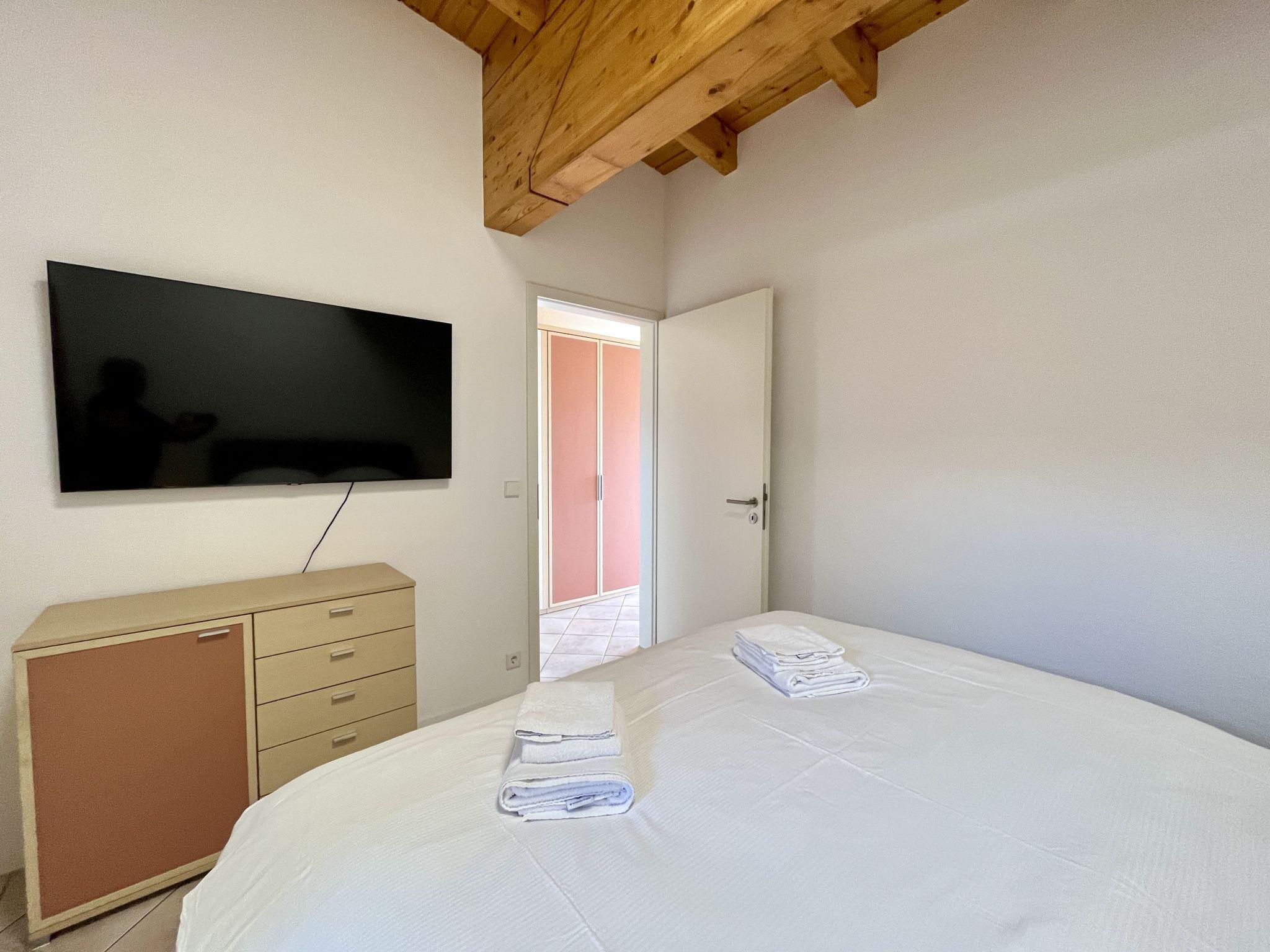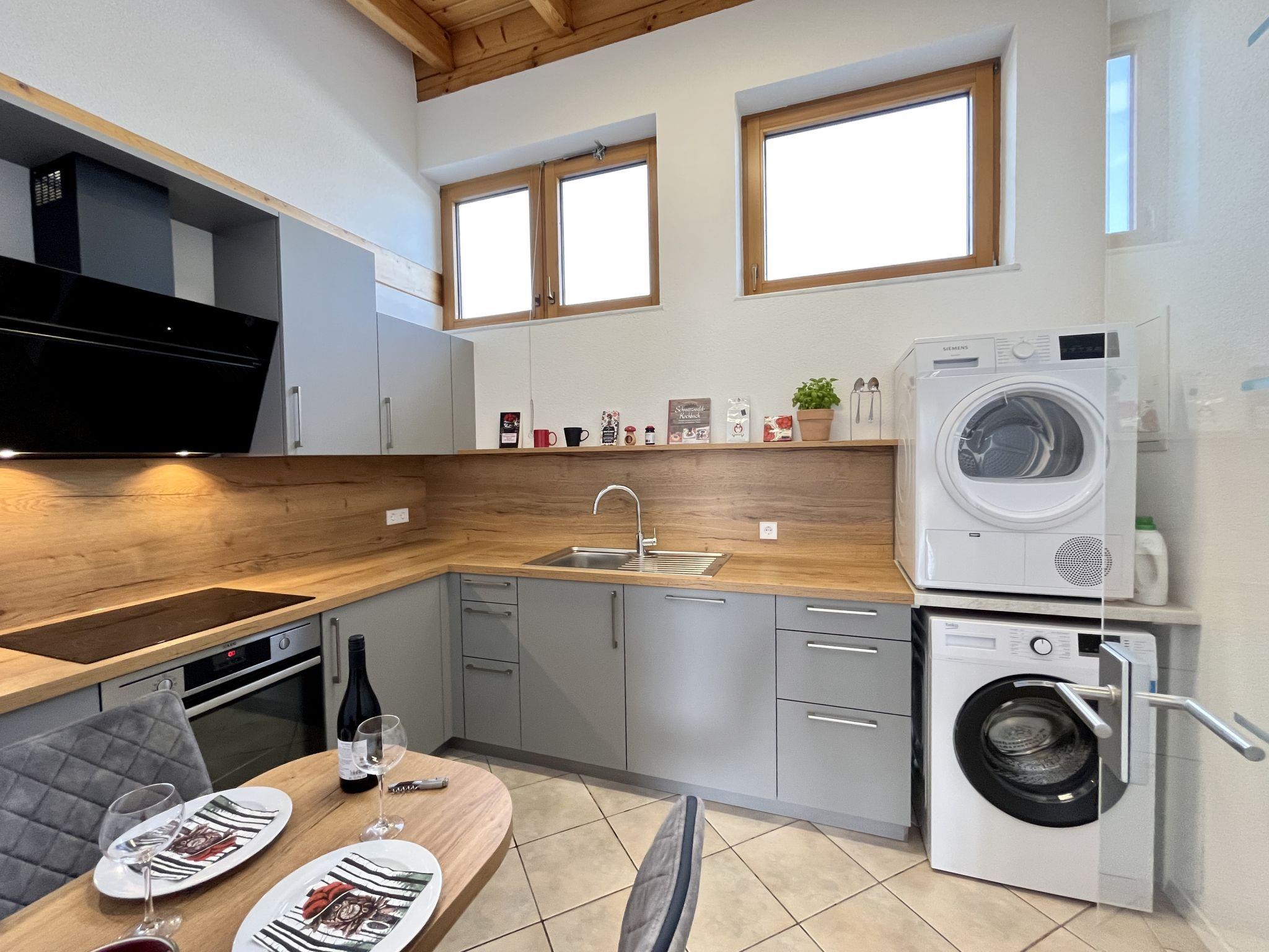 "Feingeist", 2-room apartment 55 m2, on the upper ground floor. Bright, fully renovated in 2025, beautiful and modern furnishings: entrance hall. Living/sleeping room with 1 sofabed (130 cm, length 200 cm), satellite TV (flat screen). 1 double bedroom with 1 double bed (160 cm, length 200 cm), satellite TV (flat screen). Kitchen (oven, dishwasher, 4 ceramic glass hob hotplates, toaster, kettle, electric coffee machine) with small dining table. Shower/WC. Electric heating, underfloor heating. Solar power. Terrace furniture, sitting area. Facilities: washing machine, dryer, hair dryer. Internet (WiFi, free). Parking at the house. Please note: non-smokers only. Private entrance, smoke alarm, fire extinguisher.