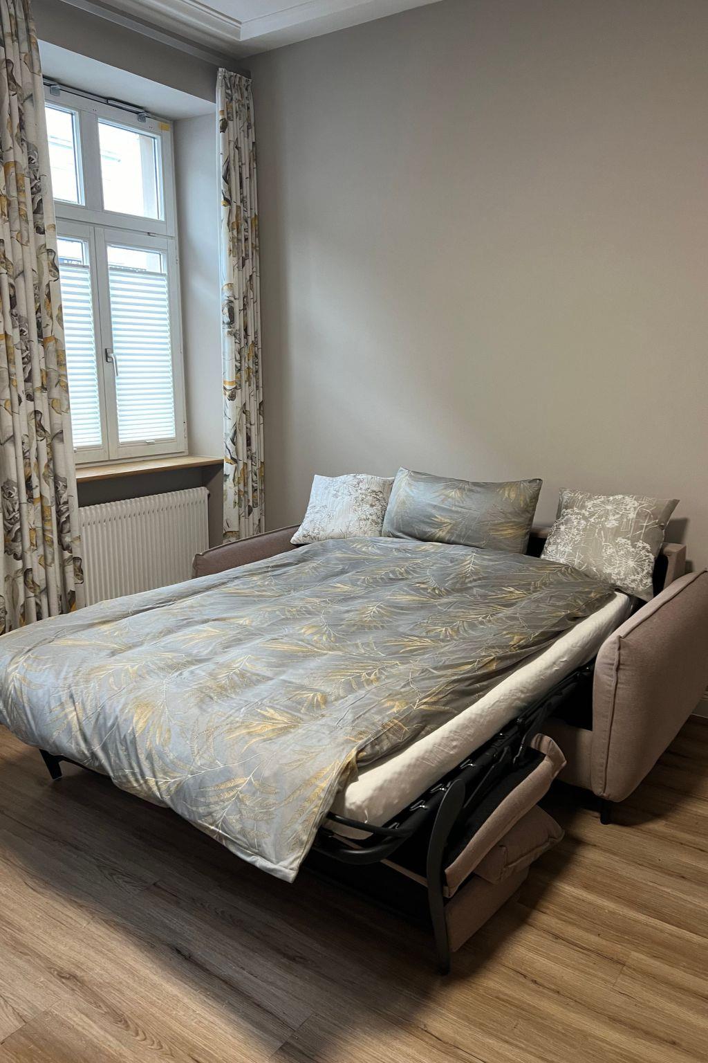 A cosy bedroom, a large living room with equivalent sleeping facilities, as well as a modern kitchen and a modern bathroom (with shower and WC) make it the perfect retreat for families, couples or small groups.