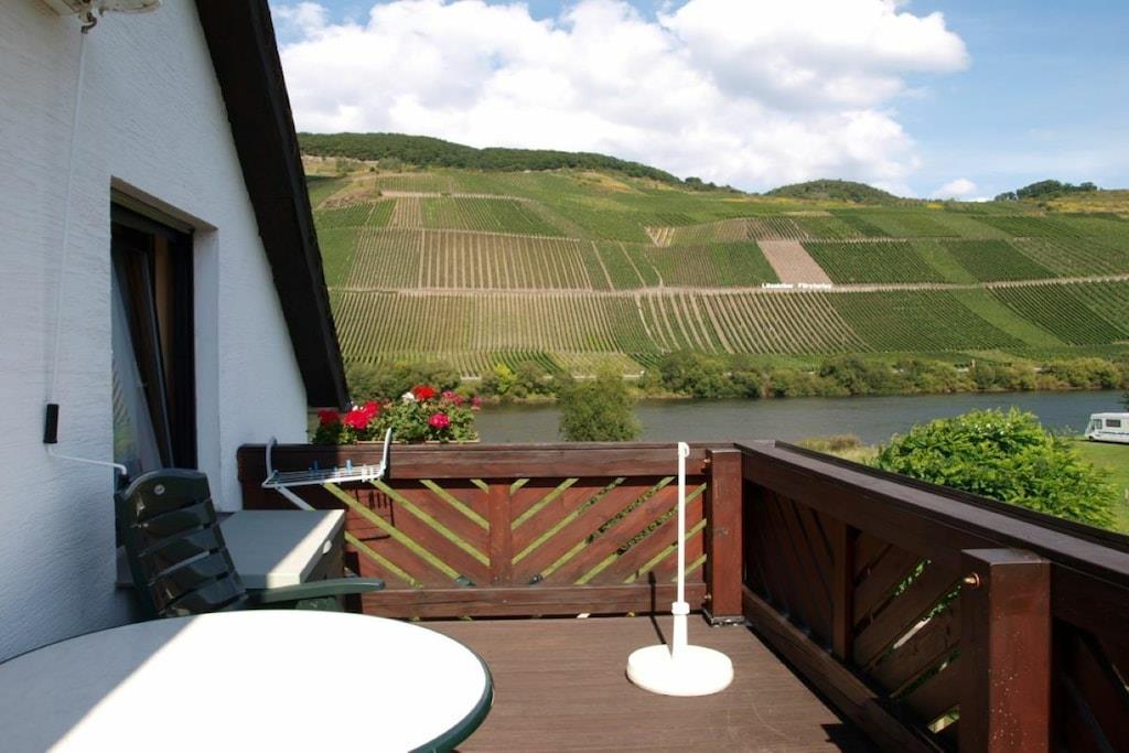 Den koselige ferieleiligheten (ca. 50 kvm) tilbyr nok plass til 2 eller 3 personer med en stor balkong (ca. 12 kvm) med sittegruppe. Herfra har du utsikt over Mosel og vingårdene overfor. Ferieleiligheten ligger rett ved Mosel sykkelsti. Hos oss finner du avslapning på den beste beliggenheten. Ferieleilighet med romslig parkeringsplass og låst sykkel/motorsykkelgarasje. Internett-tilkobling. Brødservice.