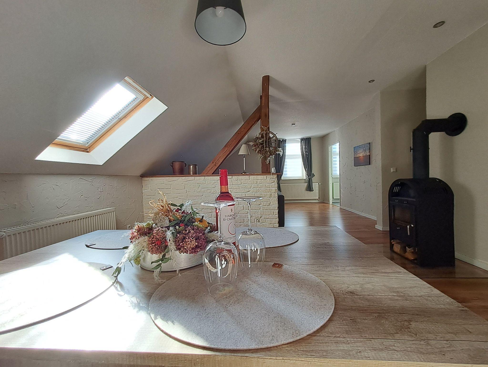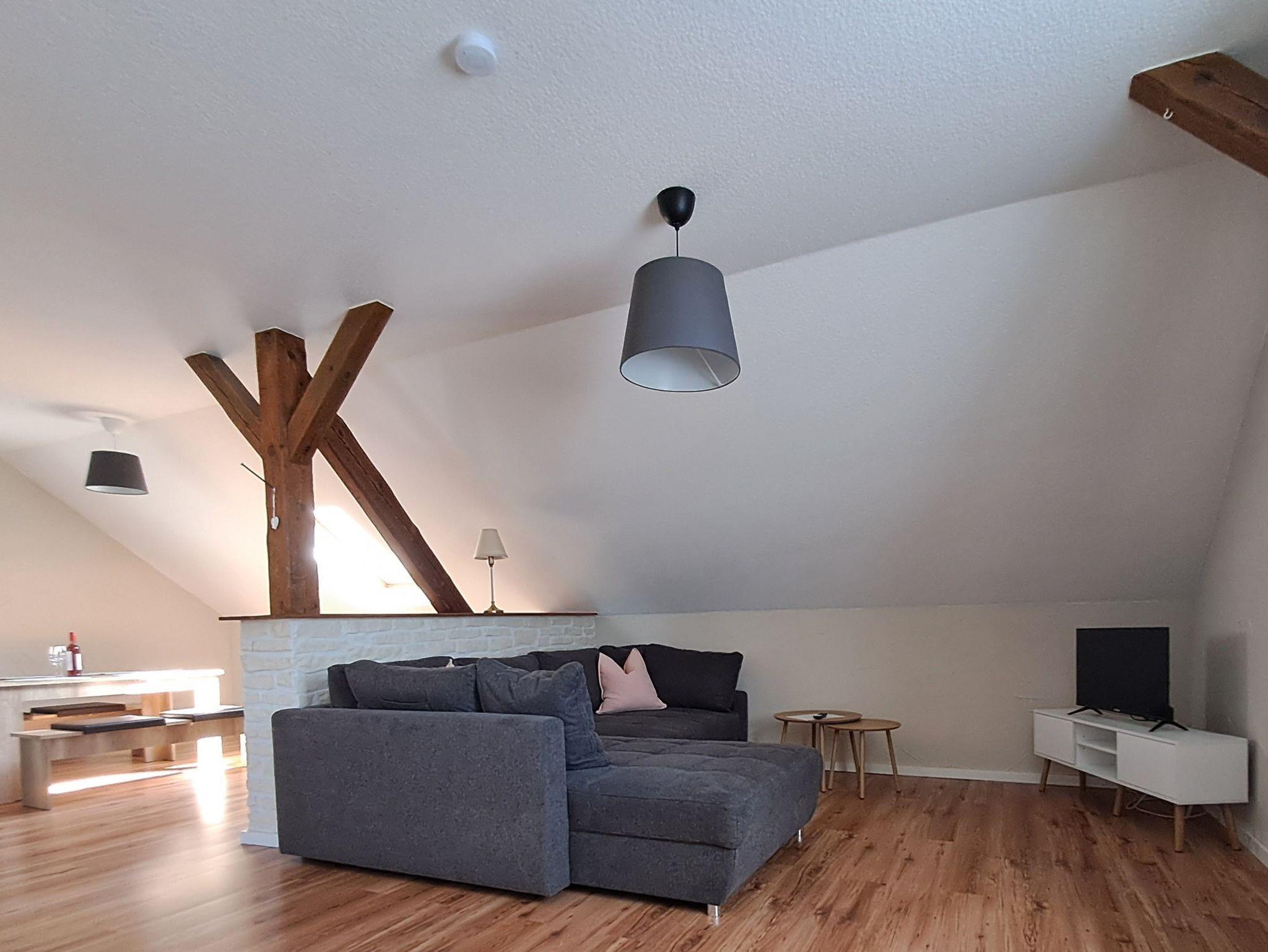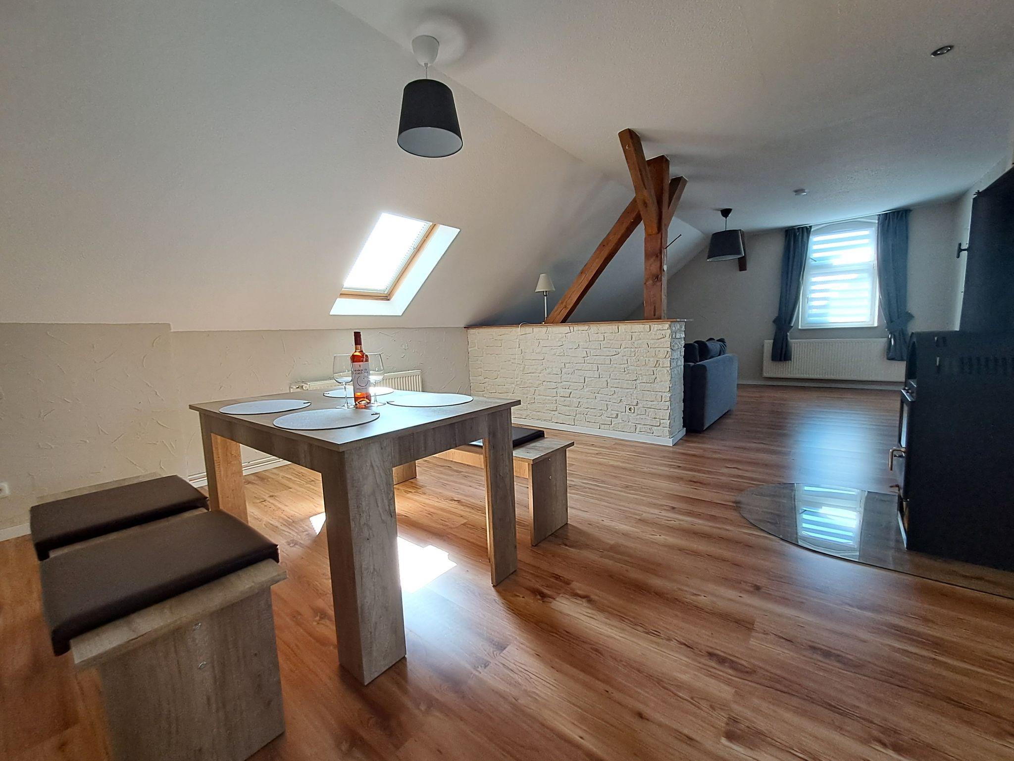 Ruhige dörfliche Lage. Die Ferienwohnung befindet sich im OG des Bauernhauses, welche über eine Treppe zu erreichen ist. Sitzmöglichkeiten gibt es direkt im vorderen Eingangsbereich, sowie eine überdachte Sitzecke mit Blick in den Garten, welche zum verweilen oder grillen einläd.