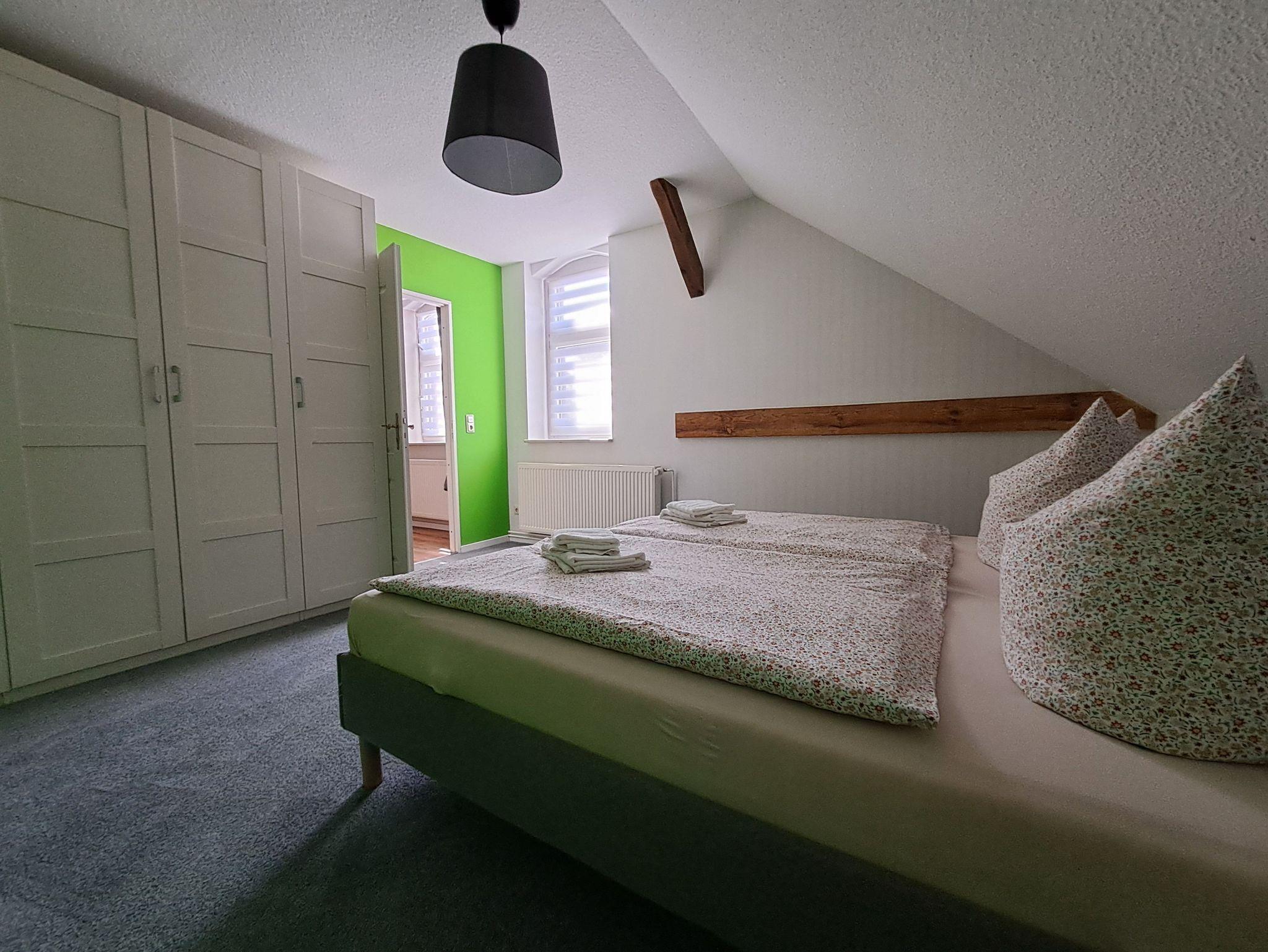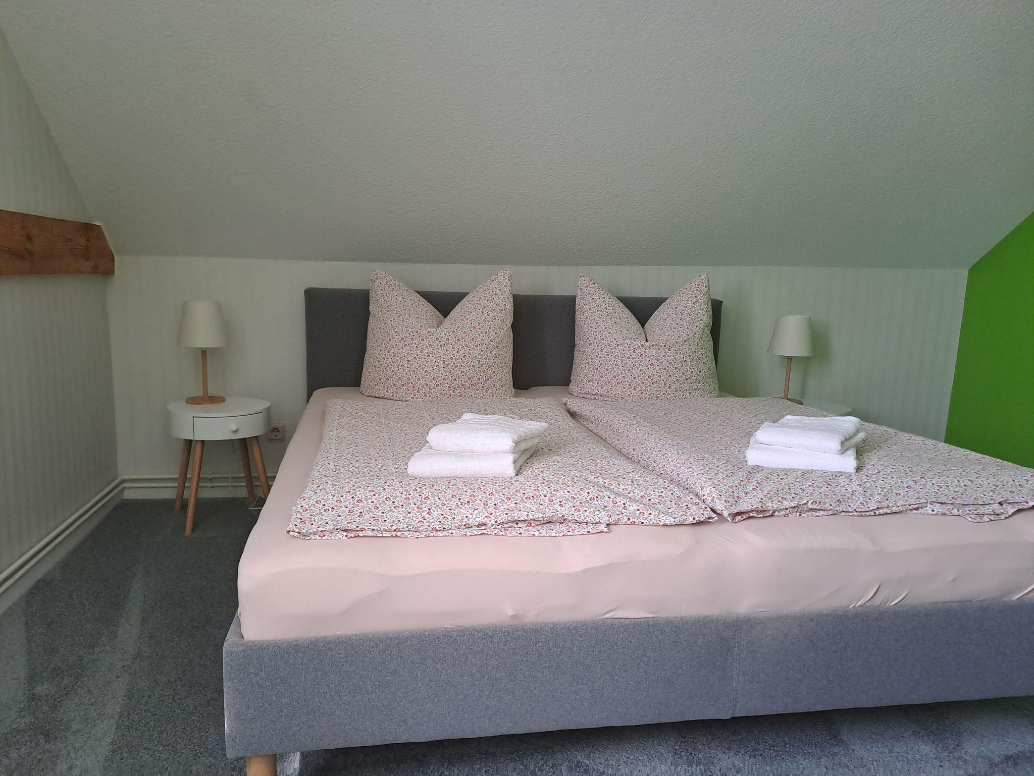 Doppelbett im Schlafzimmer, gemütliches Boxspringsofa im Wohn/Essbereich als Aufbettungsmöglichkeit.