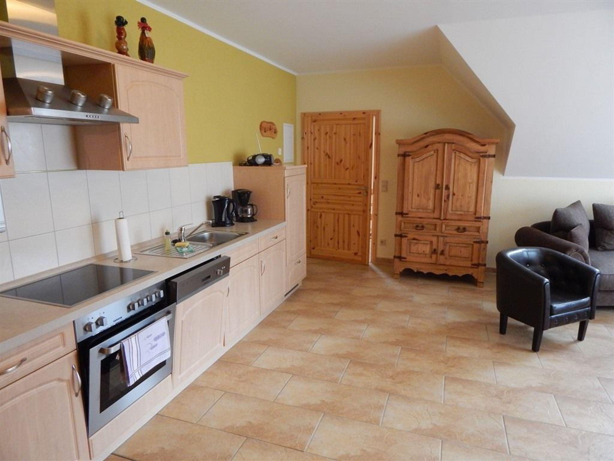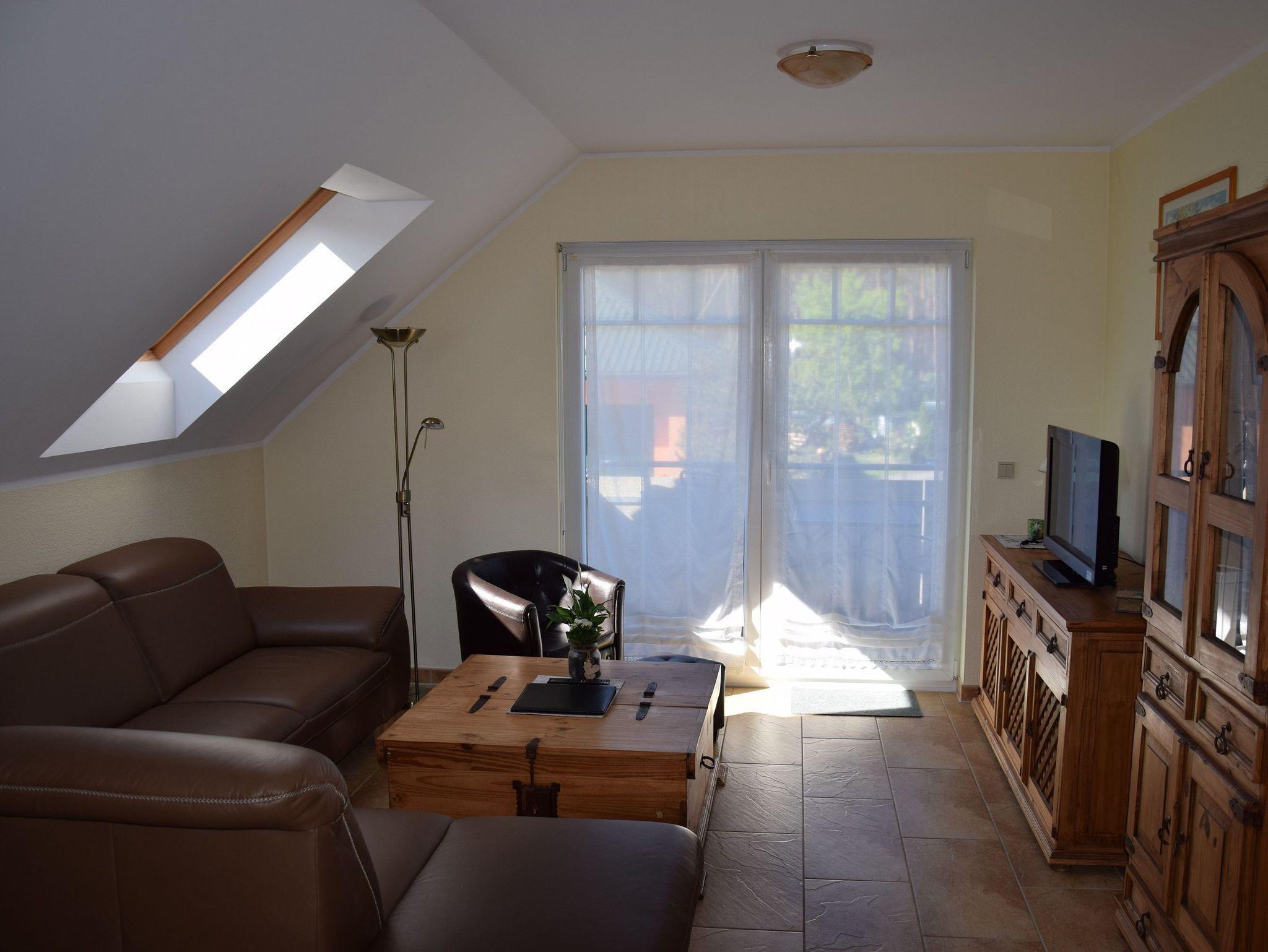 Die Ferienwohnung verfügt über einen komfortablen Wohn-Ess-Bereich, Küche, Schlafzimmer, Bad, TV und Radio. Die Küche bietet jeglichen Komfort, zum Beispiel Elektroherd mit Kochfeld, Mikrowelle, Kaffeemaschine, Kühlschrank und Geschirrspüler. Die Aussicht kann man auf dem Balkon genießen.