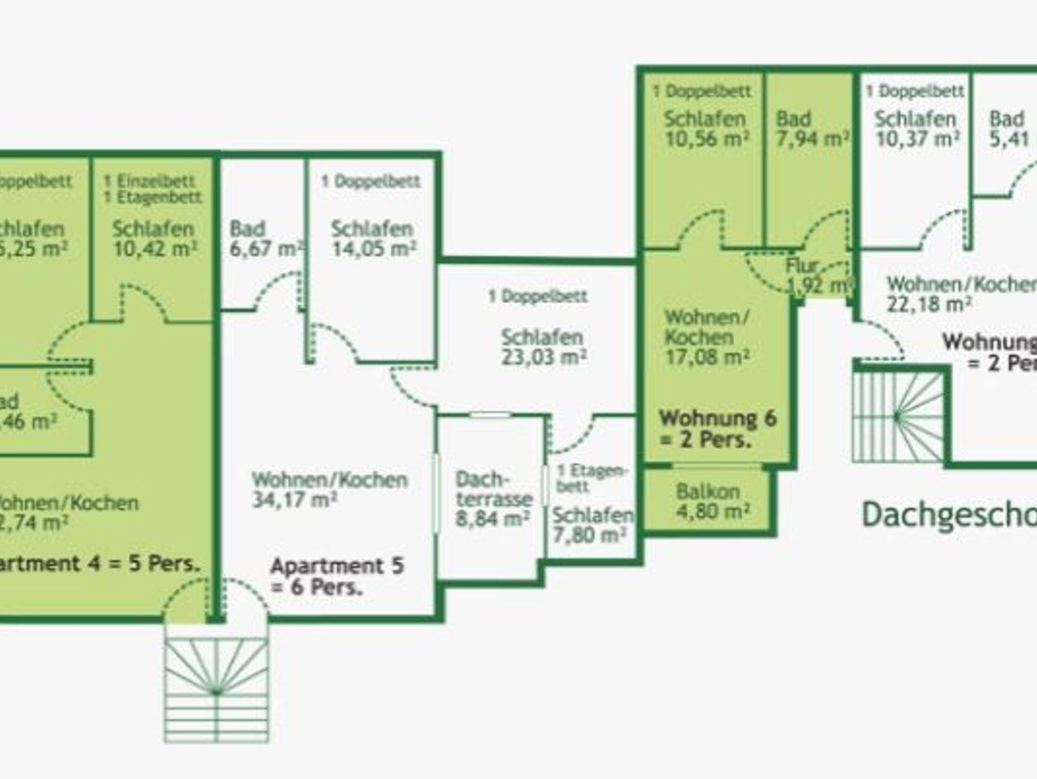 Für 15,00 € pro Person und Nacht ist eine Aufbettung möglich.