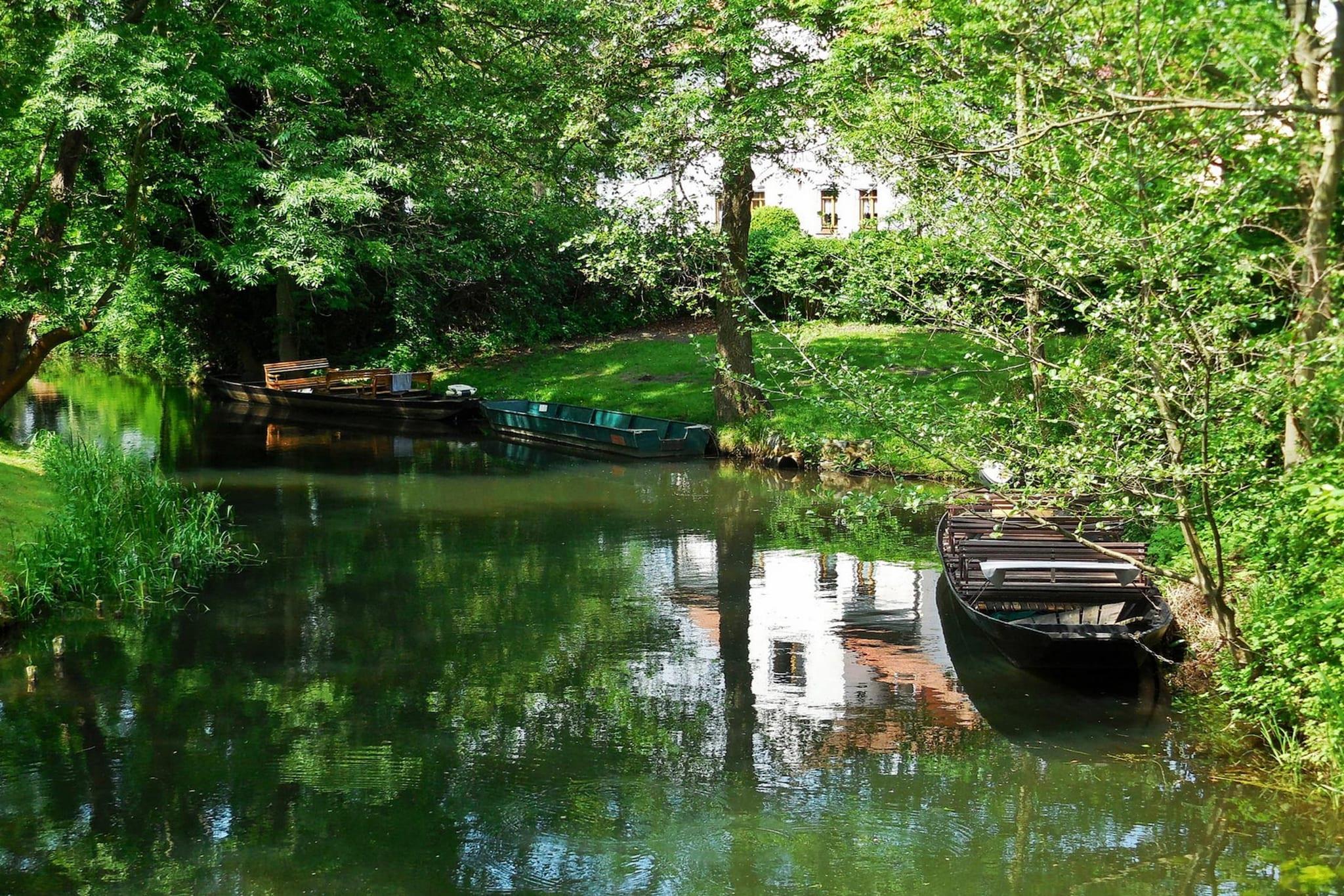 Den tidligere uthuset har blitt kjærlig renovert og huser nå tre ferieleiligheter. Det ligger i vakre omgivelser rett ved elven Berste, en sideelv til Spree. Eierne driver en liten kiosk ved elvebredden sesongmessig og har sin egen båtbrygge. Du kan spontant leie en robåt eller kano (mot et gebyr) for å utforske den fortryllende vannlabyrinten i Spreewald. Høydepunkter inkludert: Forbruksbaserte energikostnader, sengetøy, håndklær og sluttrengjøring. Aktiviteter i nærheten: Lübben står for kulturell nytelse og avslapning i et unikt naturlandskap. Masseturisme er et fremmed konsept, ettersom tiden går litt saktere her: Det omfattende Spree-elvesystemet er ideelt for å utforske Lübben med båt eller padlebåt. En båttur tar deg for eksempel fra slottsøya gjennom de idylliske bekkene i sentrum og gjennom fantastiske naturreservater – slik at du virkelig mister tidsforståelsen og bare kan nyte opplevelsen. Familier med små barn besøker slottsøya med vannlekeplassen: Om sommeren kan yngre gjester kjøle seg ned under fossen eller seile som pirater på en ekte treflåte. Det er et flott sted å bygge sandslott og plaske rundt i vassdraget med små demninger og balansesykler. For eldre søsken finnes det gravemaskiner med spader.