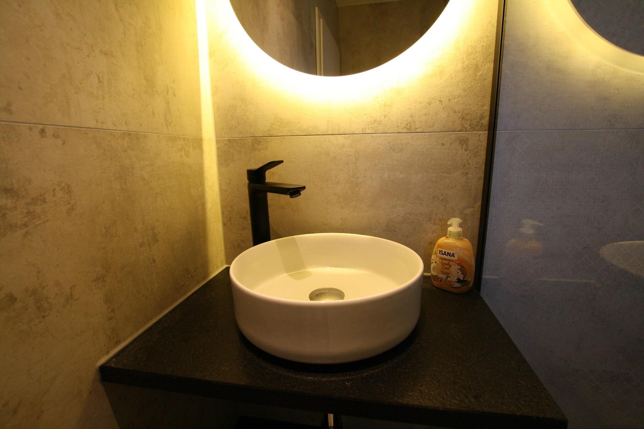 Første etasje: (åpent kjøkken(spisebord, komfyr med kokeplater(komfyr med 4 kokeplater, keramisk), vannkoker, brødrister, kjøkkenvifte, kaffetrakter, stekovn, mikrobølgeovn, oppvaskmaskin, kjøleskap med fryser), Stue/soverom(1 persons sovesofa, dobbeltseng, TV(satellitt), radio, CD-spiller), bad(dusj, toalett, Hårtørker)) grill, oppvarming(gass), terrasse, hagemøbler, parkering