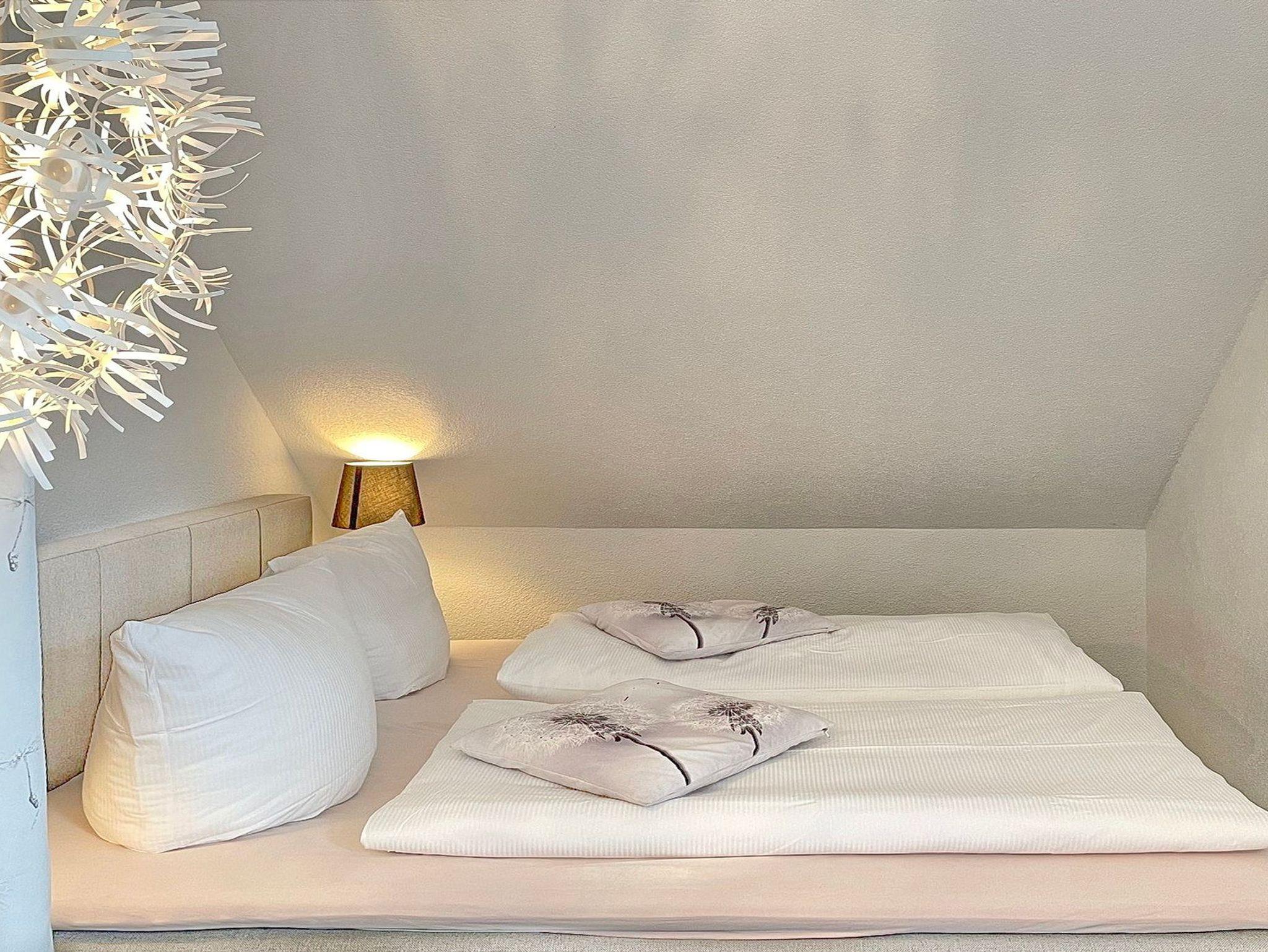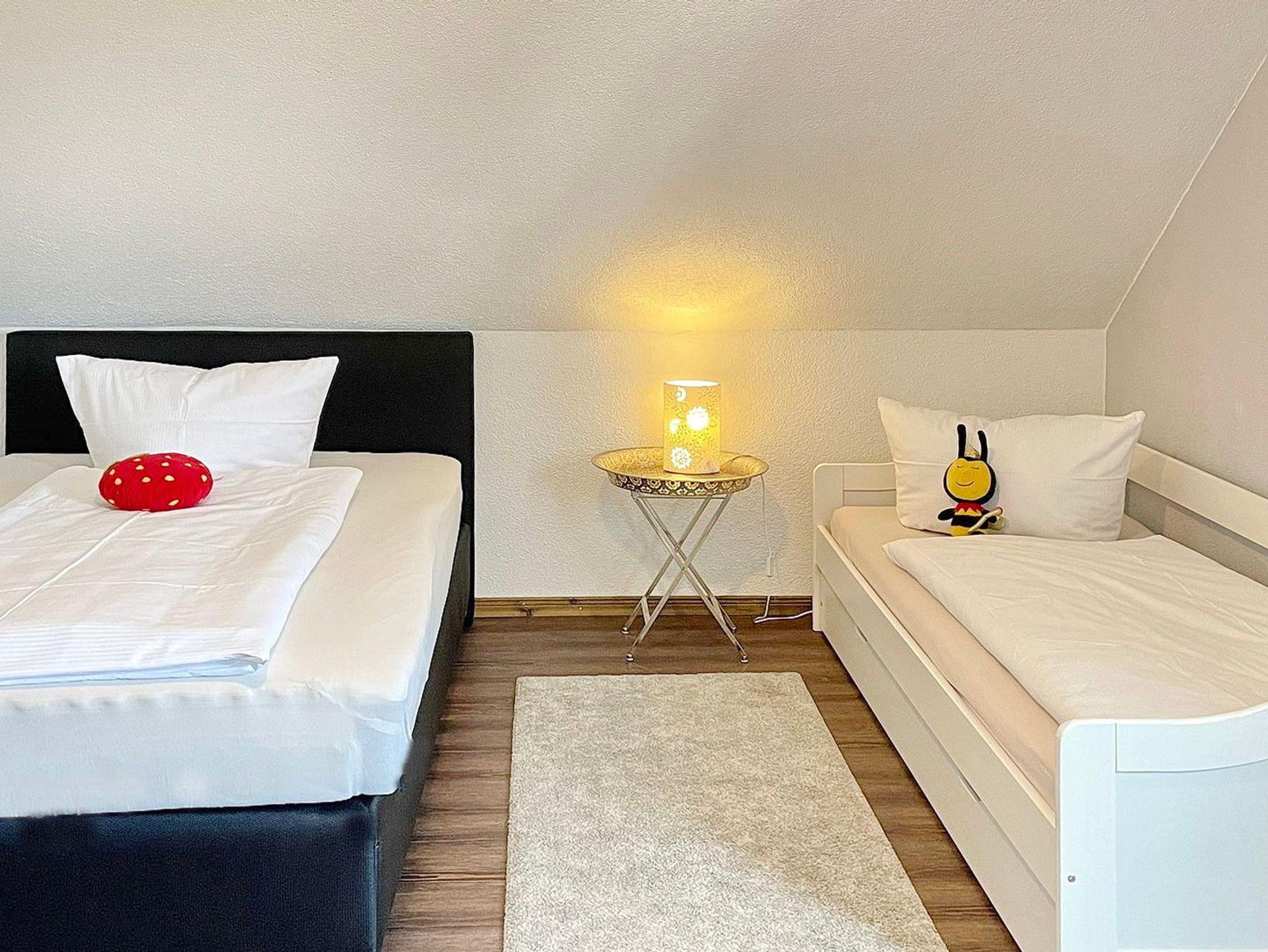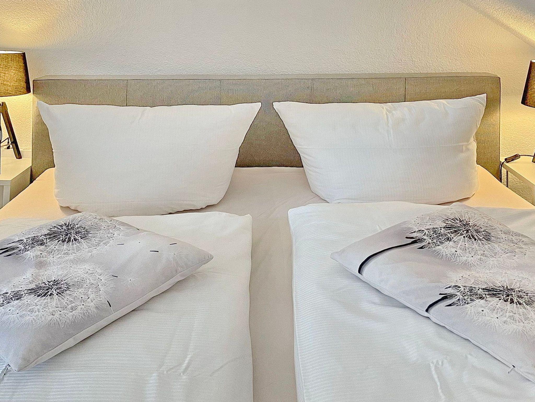 Die Ferienwohnung Pusteblume verfügt über 2 helle gemütliche Zimmer und ein Bad mit ebenerdiger Dusche und einem Wickelplatz. Sie bietet bequem Platz für 4 Personen. Für zusätzliche Personen gibt es ein Doppelschlafsofa. Im ersten Zimmer finden Sie einen gemütlichen Wohnbereich mit Flachbild-Sat-TV. Der große Esstisch lädt für ausgiebige Mahlzeiten ein. Ein Vorhang verbirgt den Blick auf das 1. Doppelbett. Das zweite Zimmer bietet 3 Schlafplätze. Ein kleines französiches Doppelbett und ein Einzelbett. Hier wäre Platz für ein zusätzliches Reisekinderbett. Eine gut ausgestattete Küchenzeile mit Mikrowelle, Kühlschrank, Wasserkocher und Kaffeemaschine runden das Angebot ab. kostenfreies WLAN steht Ihnen im ganzen Haus zur Verfügung.