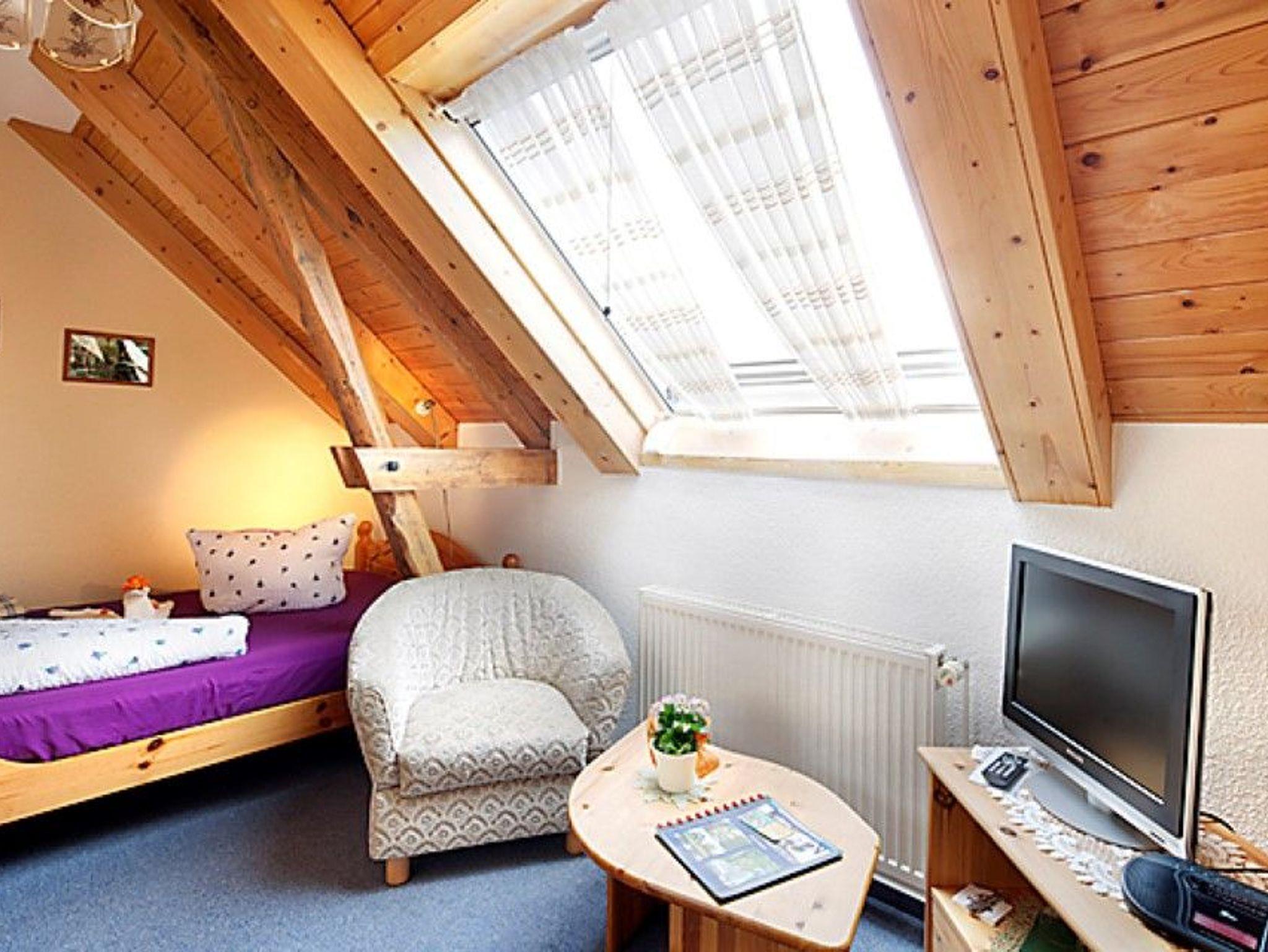 Bei Bedarf kann in der oberen Etage ein zusätzliches Zimmer (15 m²), mit einem französischem Bett (140x200 cm), eigenem Sanitärbereich und TV dazu gebucht werden.