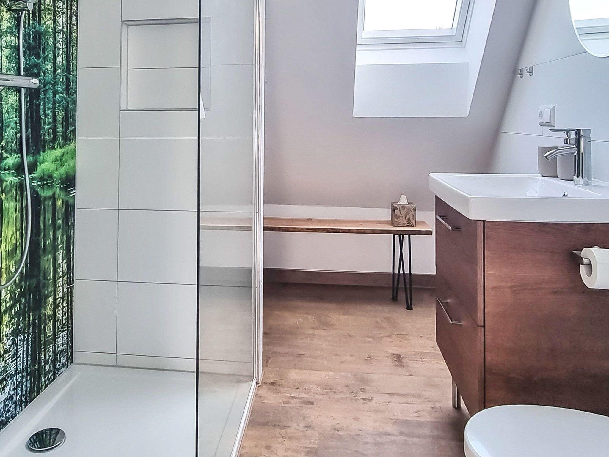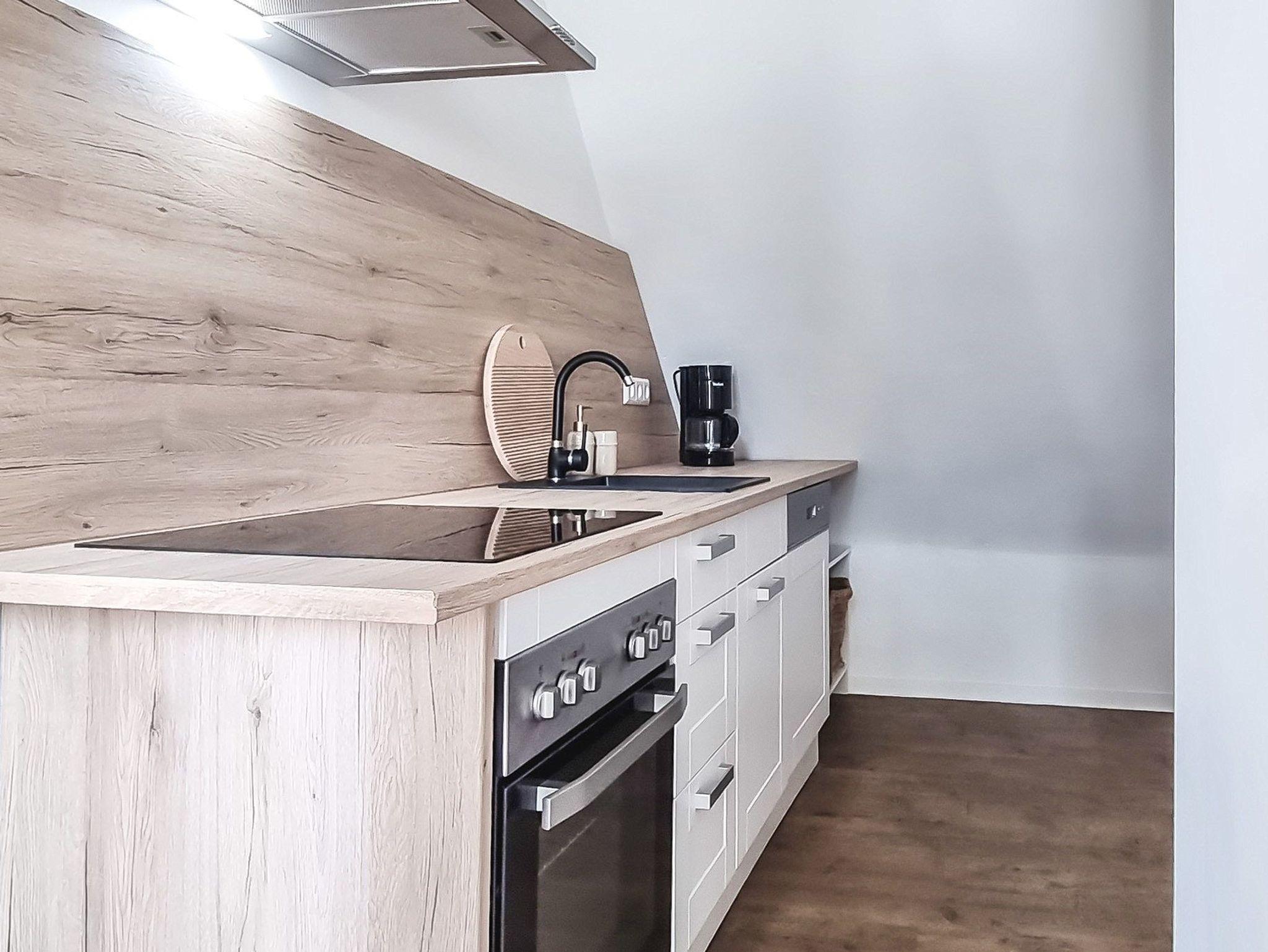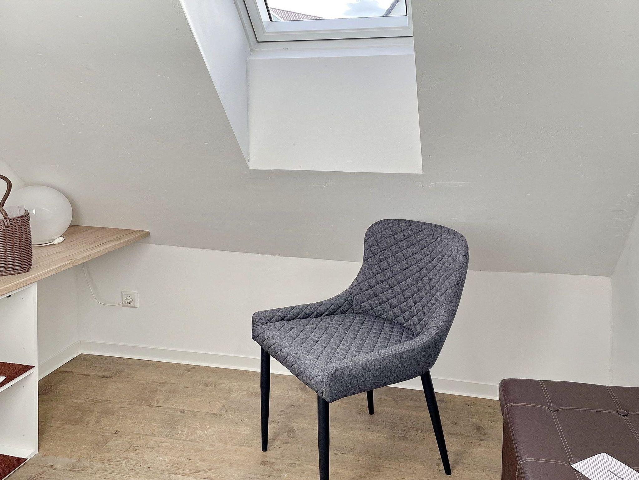 Über die Holztreppe gelangen Sie zum Eingang der Wohnung. Das erste Zimmer bietet Ihnen eine voll ausgestatte Küchenzeile, sowie genug Ablagemöglichkeiten im Flurbereich. Sie werden sich im geräumigen Wohnzimmer sehr wohl fühlen. Es ist mit einer gemütlichen Couch, einem Esstisch mit 2 Stühlen und einem Flachbild-TV ausgestattet. Das Badezimmer ist modern saniert, mit einer ebenerdigen Dusche und einem Dachfenster.