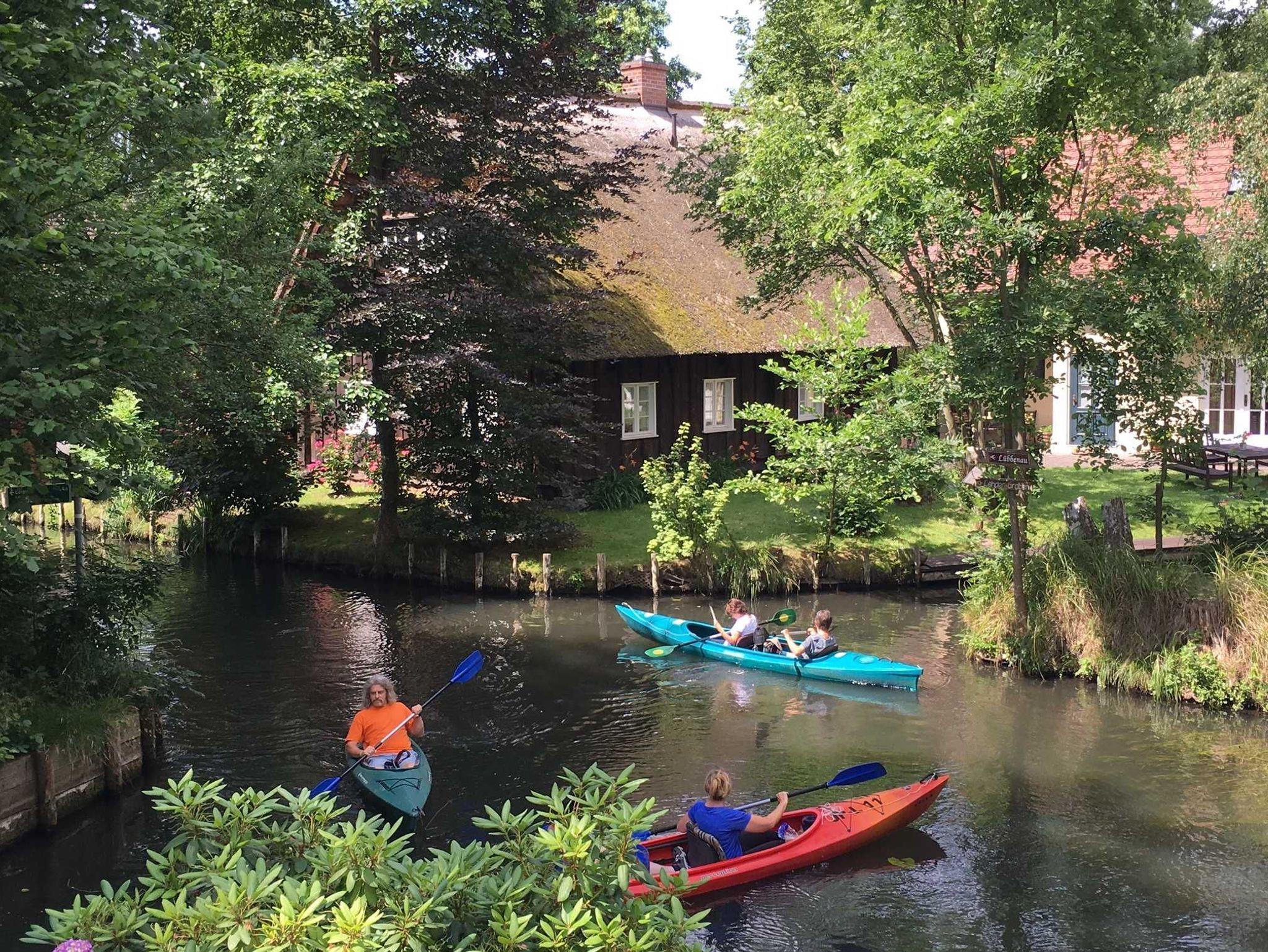 Das Spreewaldhaus, ehemaliges Bauernhaus, wurde mit viel Liebe zum Detail zu einem romantischen und exklusiven Ferienhaus restauriert. Es liegt im hinteren Bereich des Gartens und man hat einen Blick auf die Spree. Die separate Einbauküche ist ausgestattet mit einer Kühl- und Gefrierkombination, Spülmaschine, Herd mit Cerankochfeld und Backofen, Mikrowelle, Kaffeemaschine, Wasserkocher, Toaster, Radio mit CD und einer kleinen Sitzecke. Das Wohnzimmer ist mit gemütlichen Sitzmöbeln und einem Satelliten-Fernseher ausgestattet. Das Schlafzimmer verfügt über ein Doppelbett (180x200) und einem Einzelbett. Das Badezimmer im ländlichen Stil ist ausgestattet mit einer Eckbadewanne, einem Waschbecken, einer Toilette, einem Handtuchtrockner und einem Föhn.
