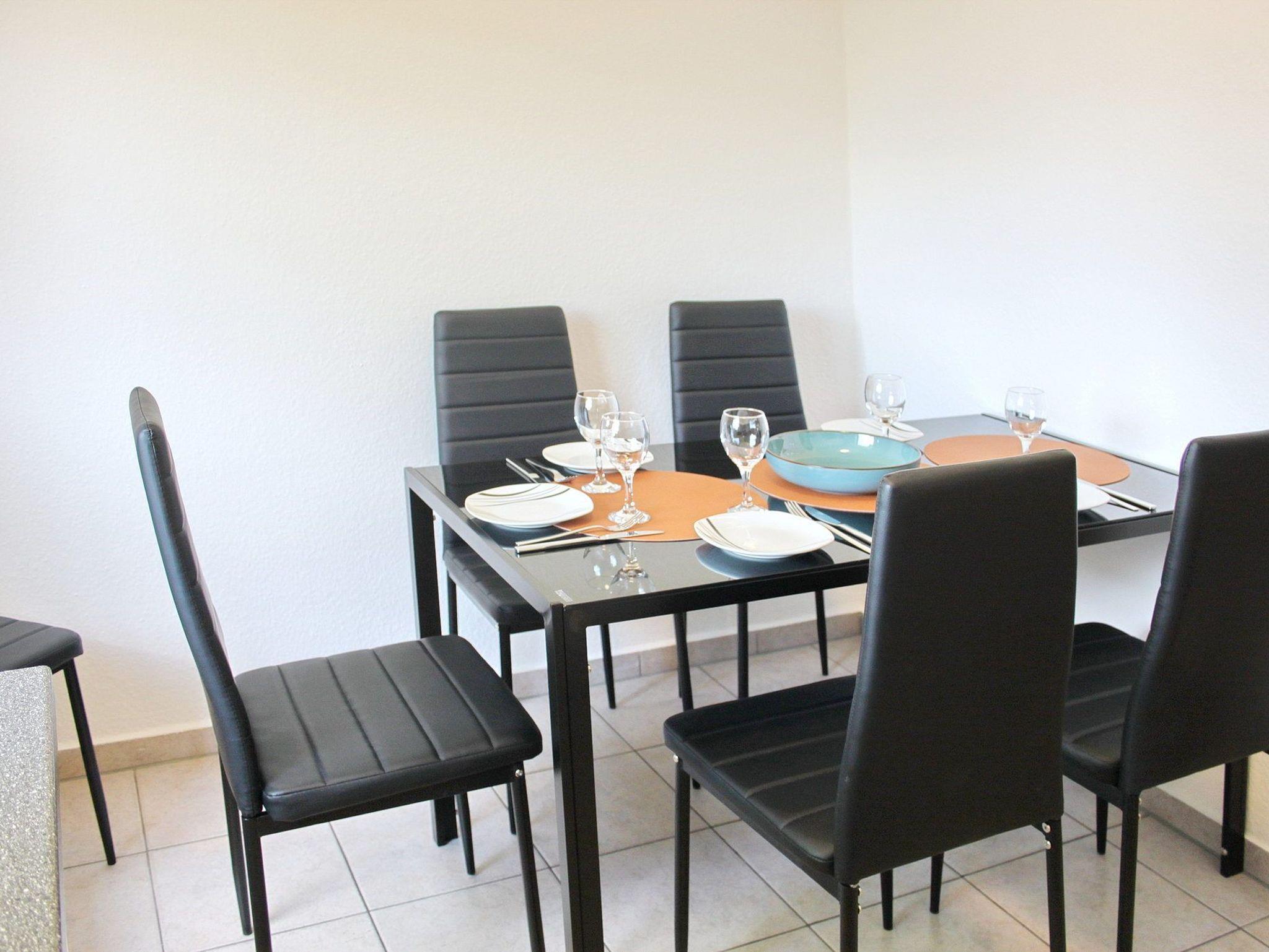 Sie kommen mit einer großen Familie oder mit Freunden, dann sind Sie hier genau richtig. Sie haben genug Platz, ein Esszimmer mit großem Tisch und kochen in einer voll ausgestatten Küche. Das große Sofa für die gemütlichen Stunden und die zwei sehr großen Badezimmer runden die Annehmlichkeiten ab.