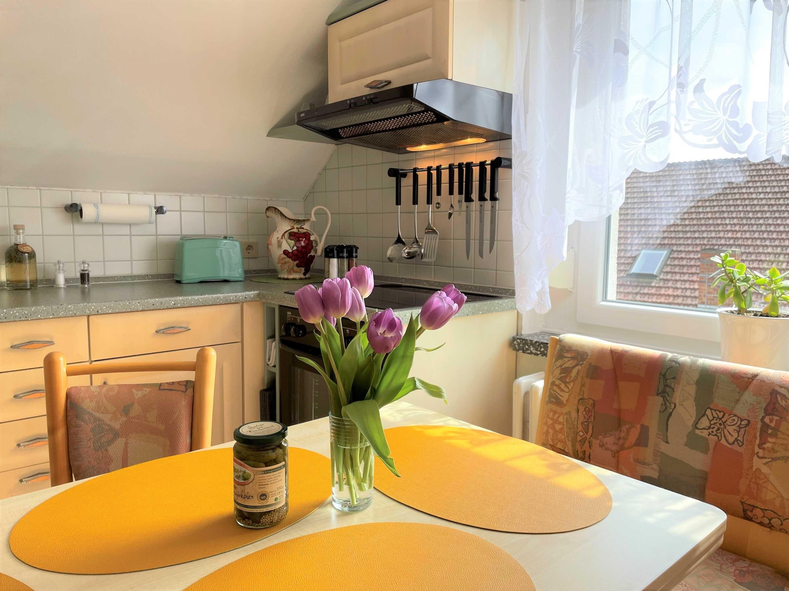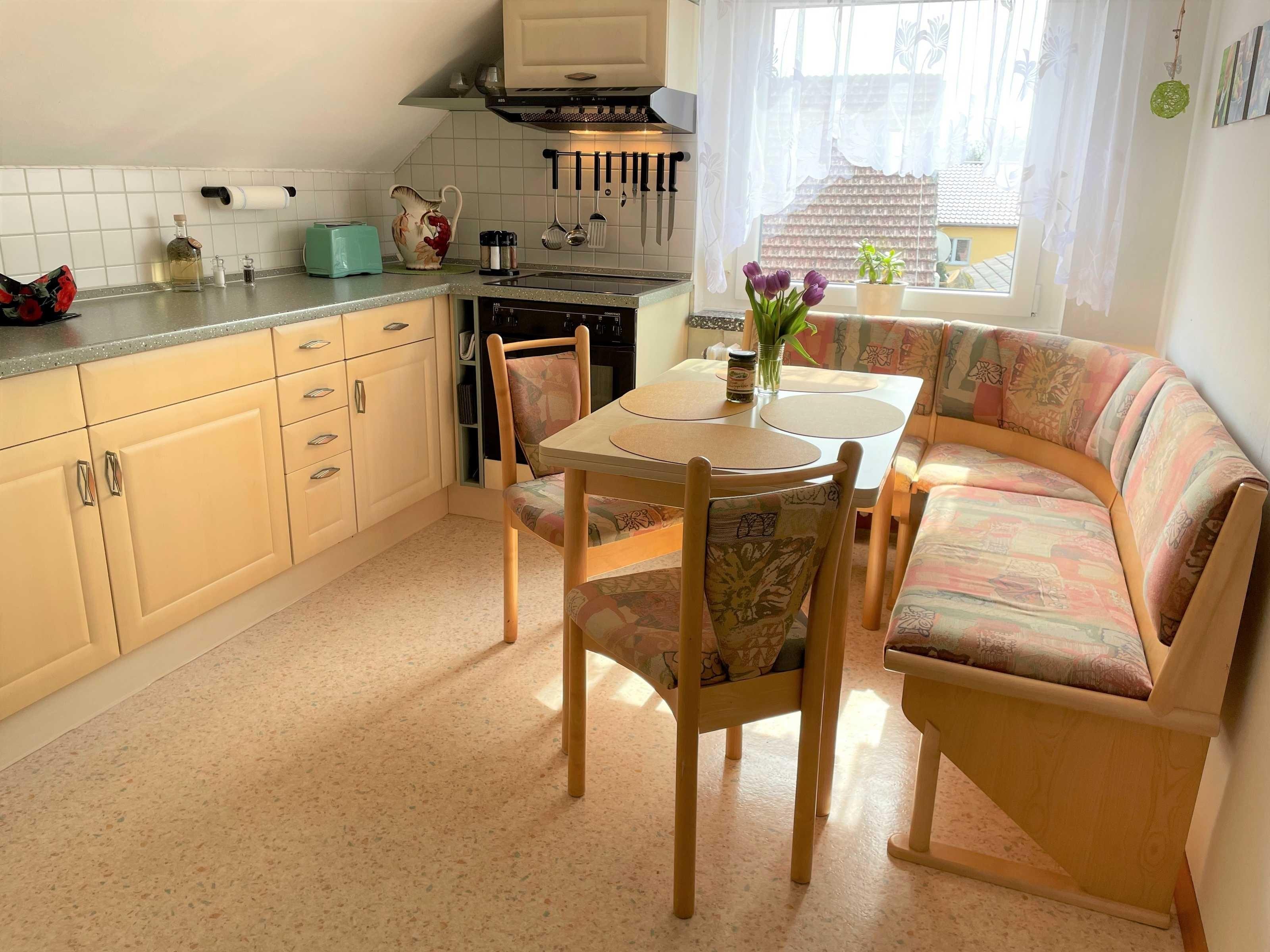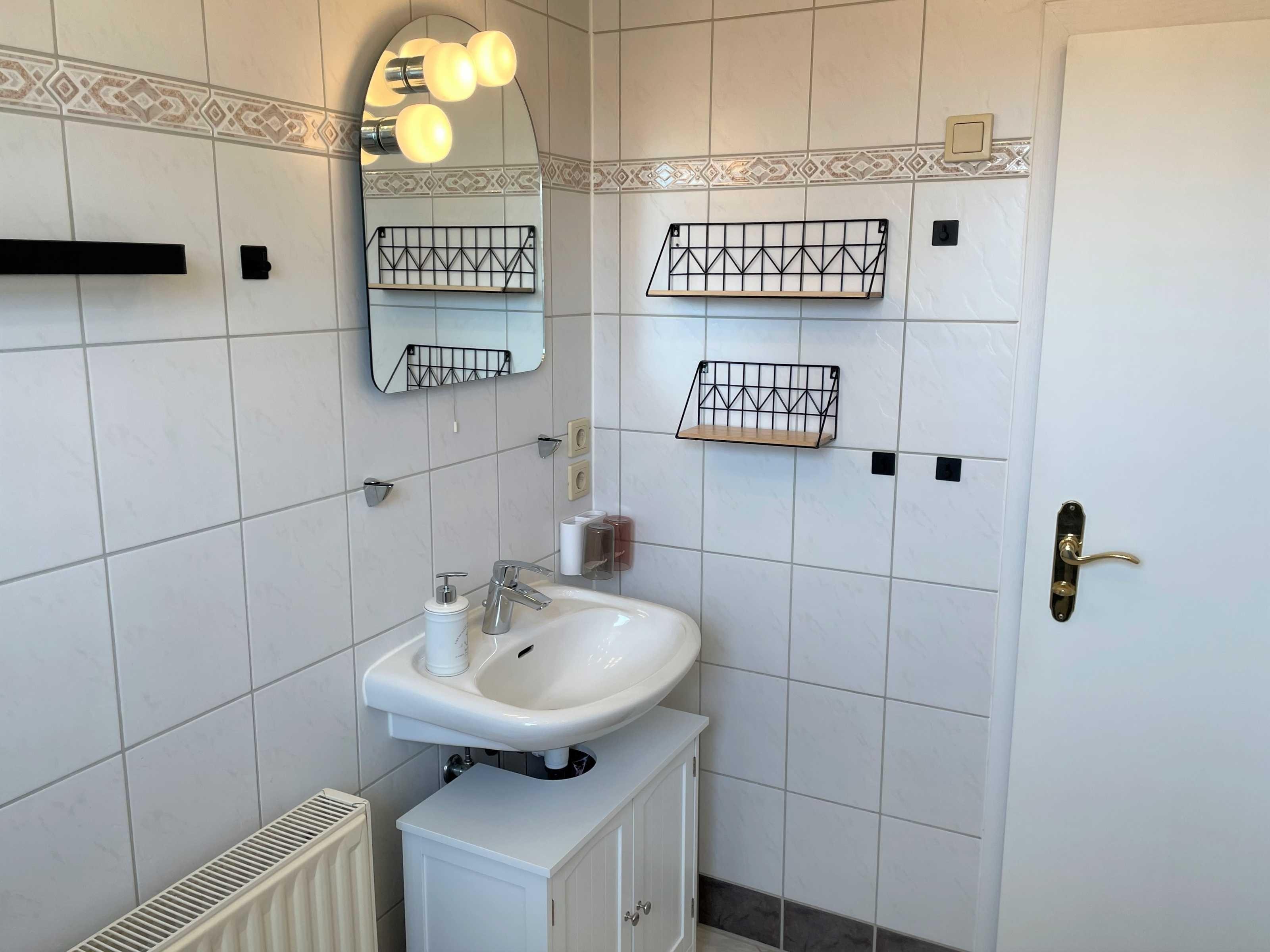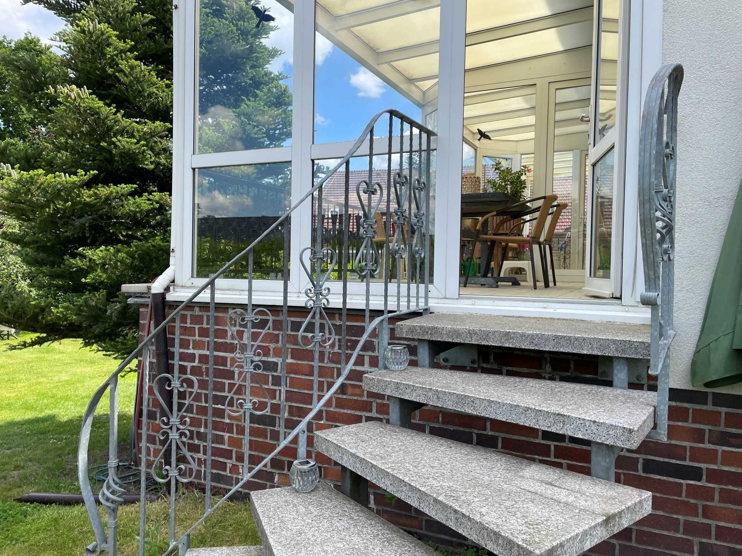 Über den Seiteneingang Veranda gelangen Sie zum Hauseingang. Sie gehen rechts die Treppe hoch zu Ihrer Ferienwohnung. Sie befindet sich im Obergeschoss. Der kleine Flur ist der Zugang zu allen Räumen. Somit ist jeder Wohnbereich separat. Im großzügigen Wohn- und Schlafzimmer haben Sie viel Platz und Ruhe. Jeder findet ein Plätzchen zum Ausruhen auf dem Sofa und können Fernsehen auf dem Flachbild-TV. Im Schlafbereich befindet sich ein Doppelbett (1,80 m x 2,00 m ). Im Kinderzimmer dürfen sich die kleinen Mitreisenden sich so richtig wohl fühlen. Das Zimmer bietet viel Platz, mit Spielsachen, Büchern, einer Couch, Flachbild-TV und zahlreiche Kinderbücher. Die Küche ist vollkommen ausgestattet mit allen Utensilien und Geräten, die Sie zum Kochen und Essen zubereiten brauchen. In der Sitzecke können Sie alle Mahlzeiten einnehmen. Das Bad bietet Ihnen eine Badewanne, Dusche und WC.